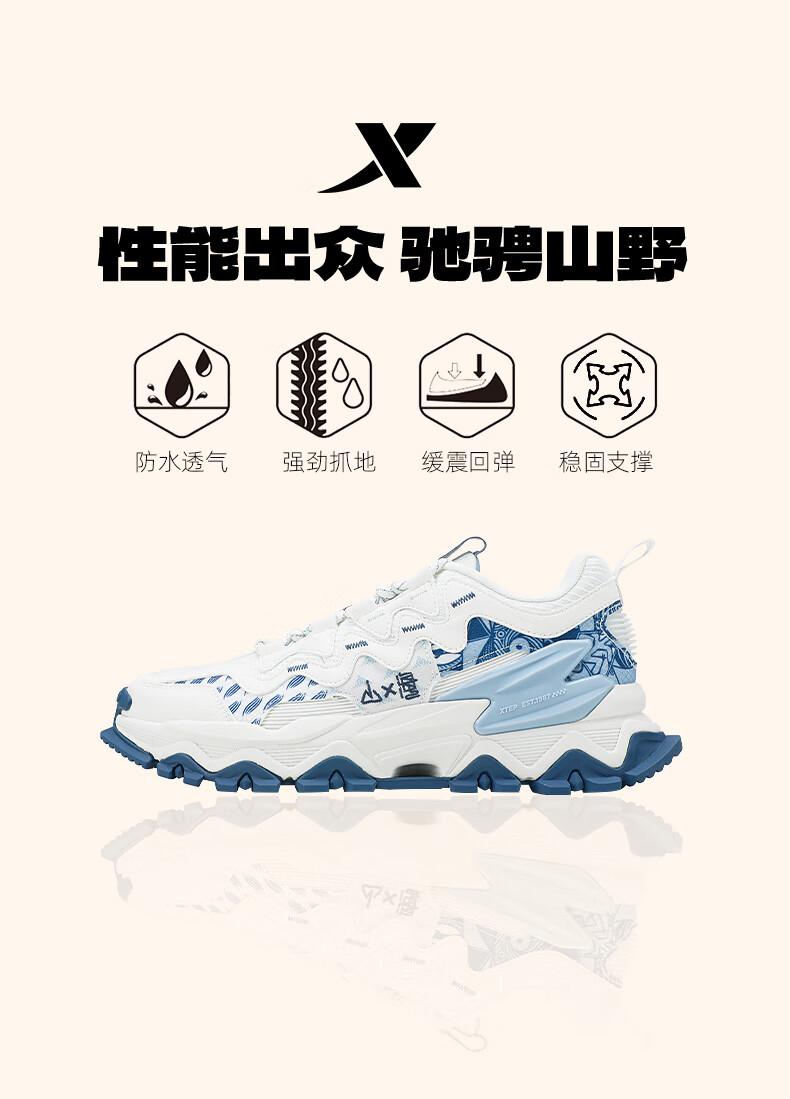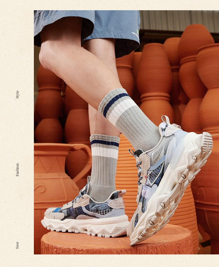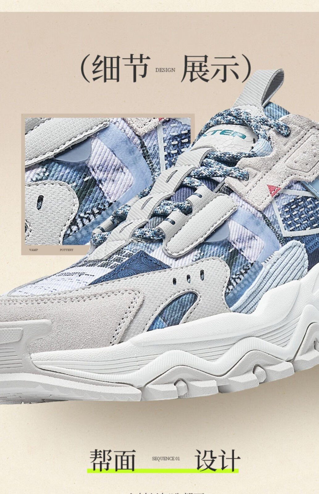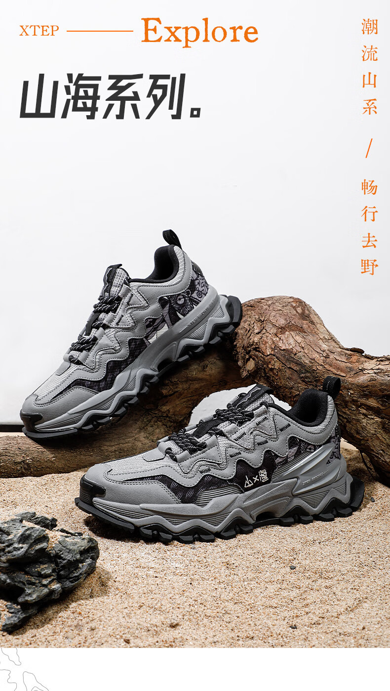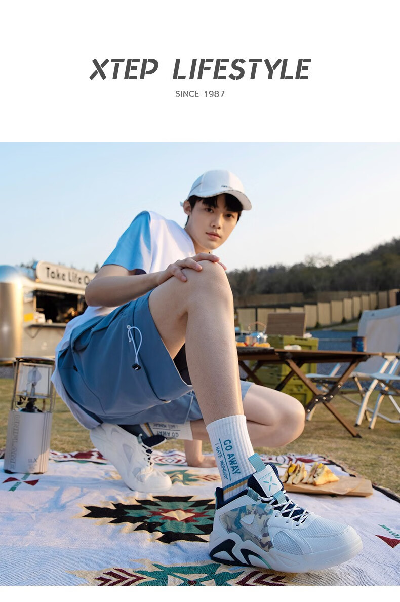 Xtep Men's Shoes, Men's National Fashion Casual Shoes, Men's Fashionable, Versatile Thick-soled Shock-absorbing Mesh Breathable Sports Shoes for Men, Bailan-Fengxing Series Recommended 42