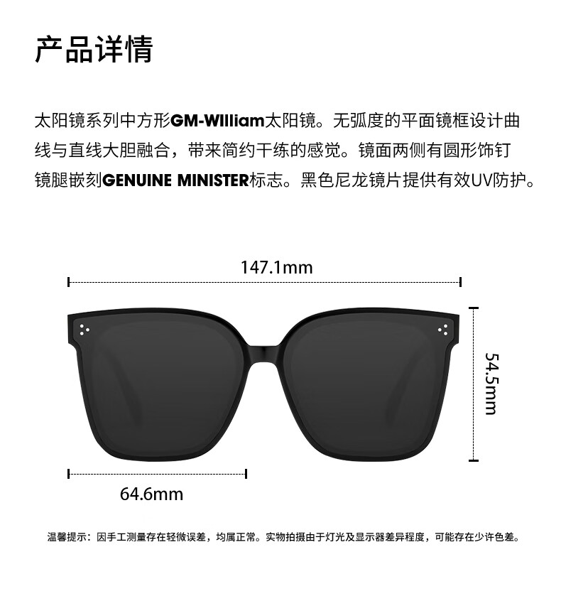 GENUINE MINISTERGM墨镜男女同款太阳镜大脸圆脸显瘦明星情人节送礼送老公送女友 GM-William