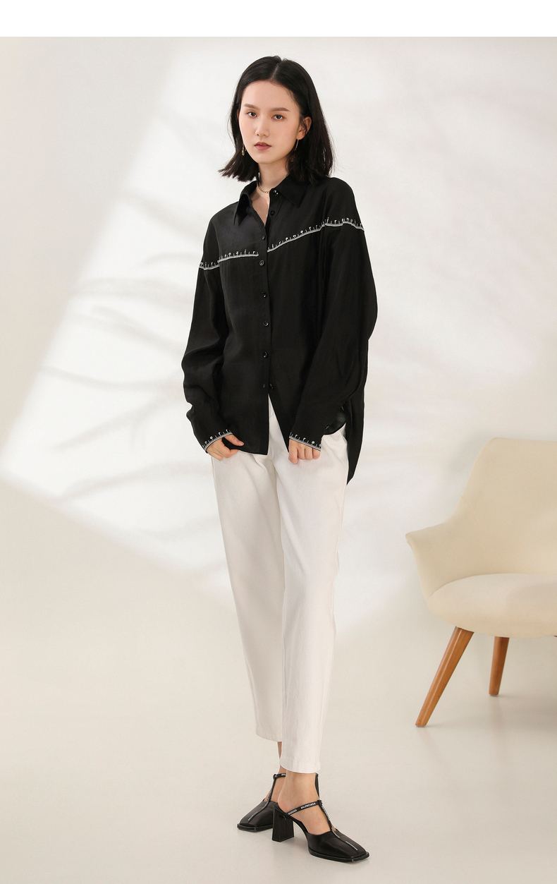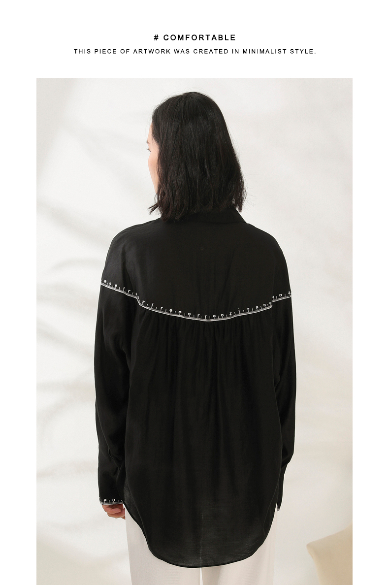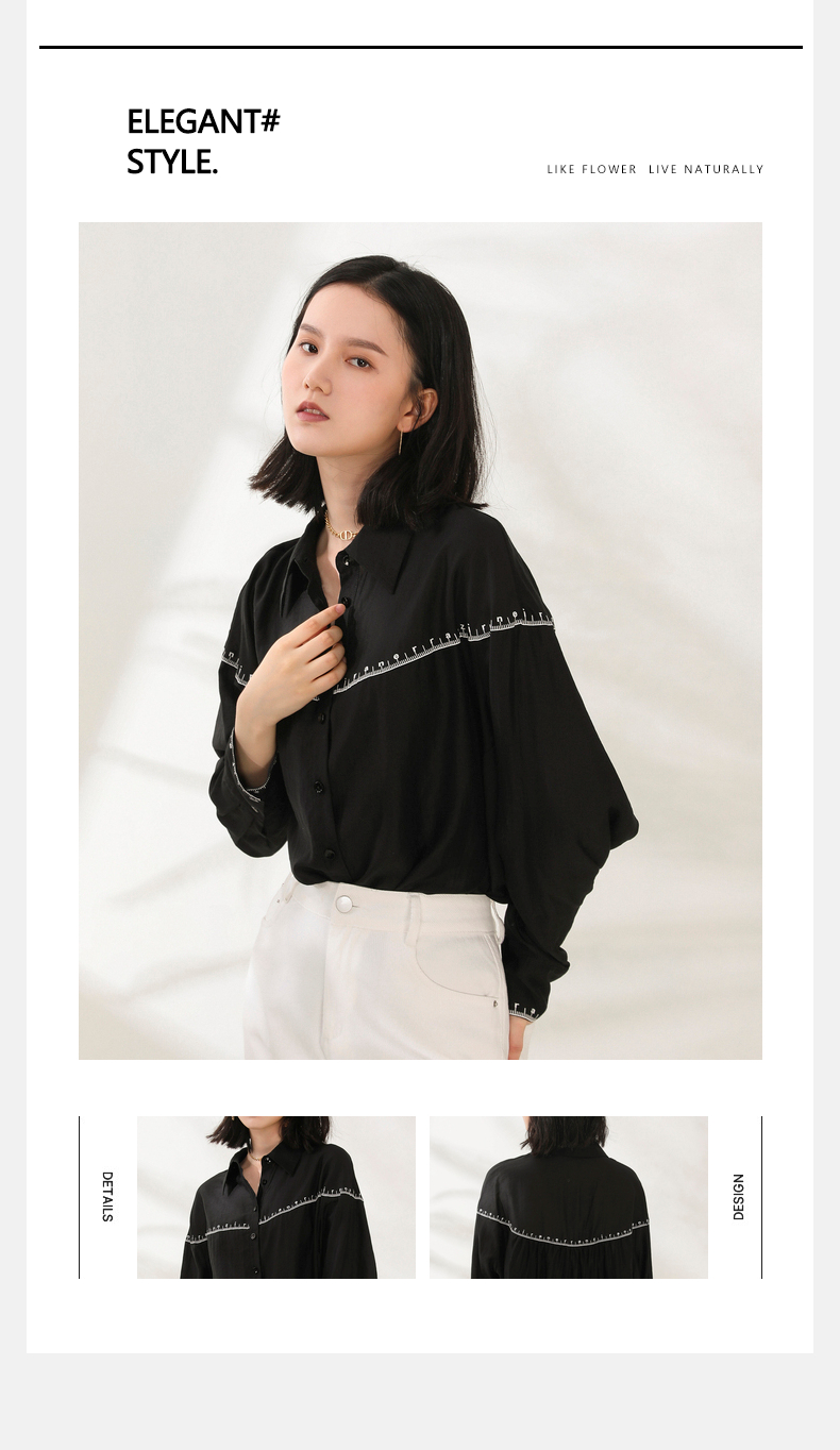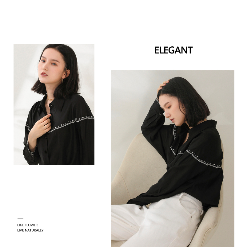 YIFINI chemise Tencel ample mince sexy chemise noire et blanche pour femme haut à manches longues printemps nouveau 2107C902 noir 0L
