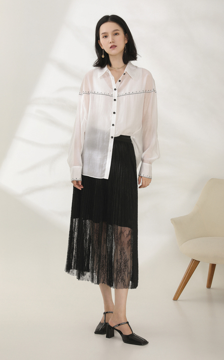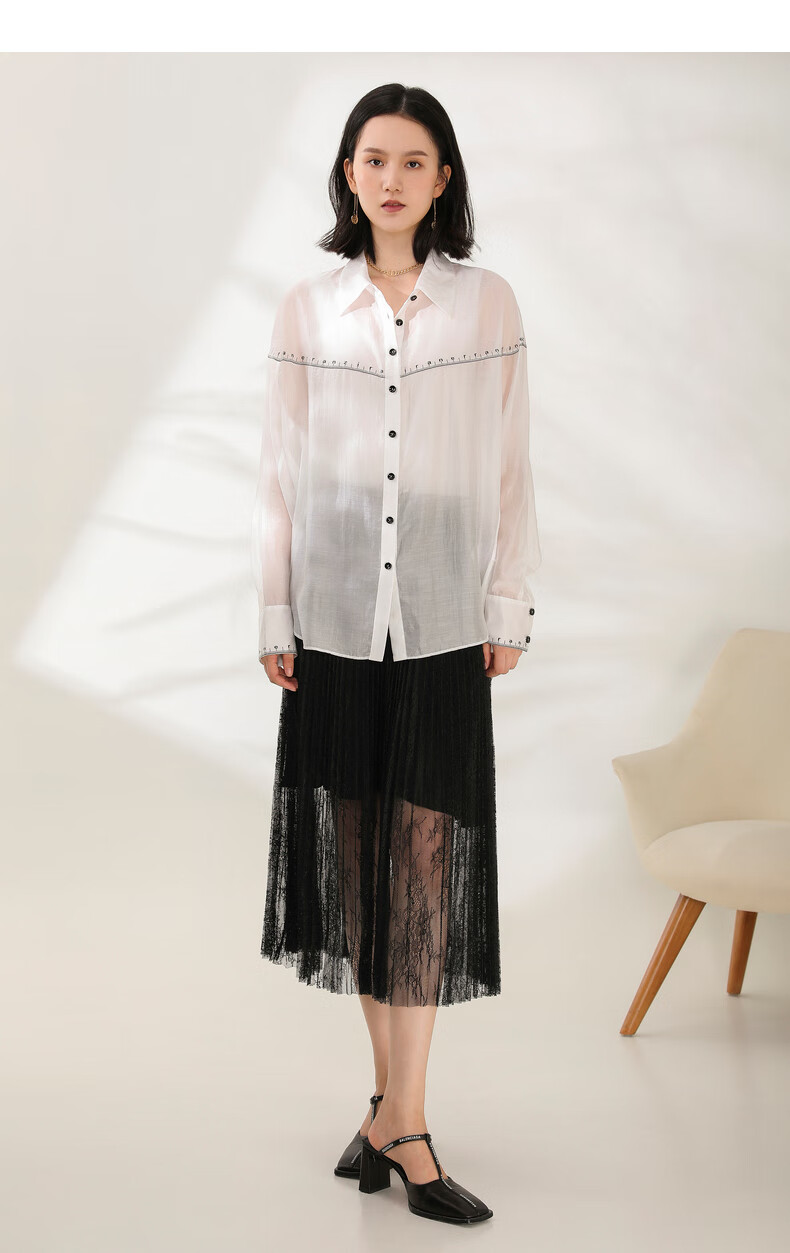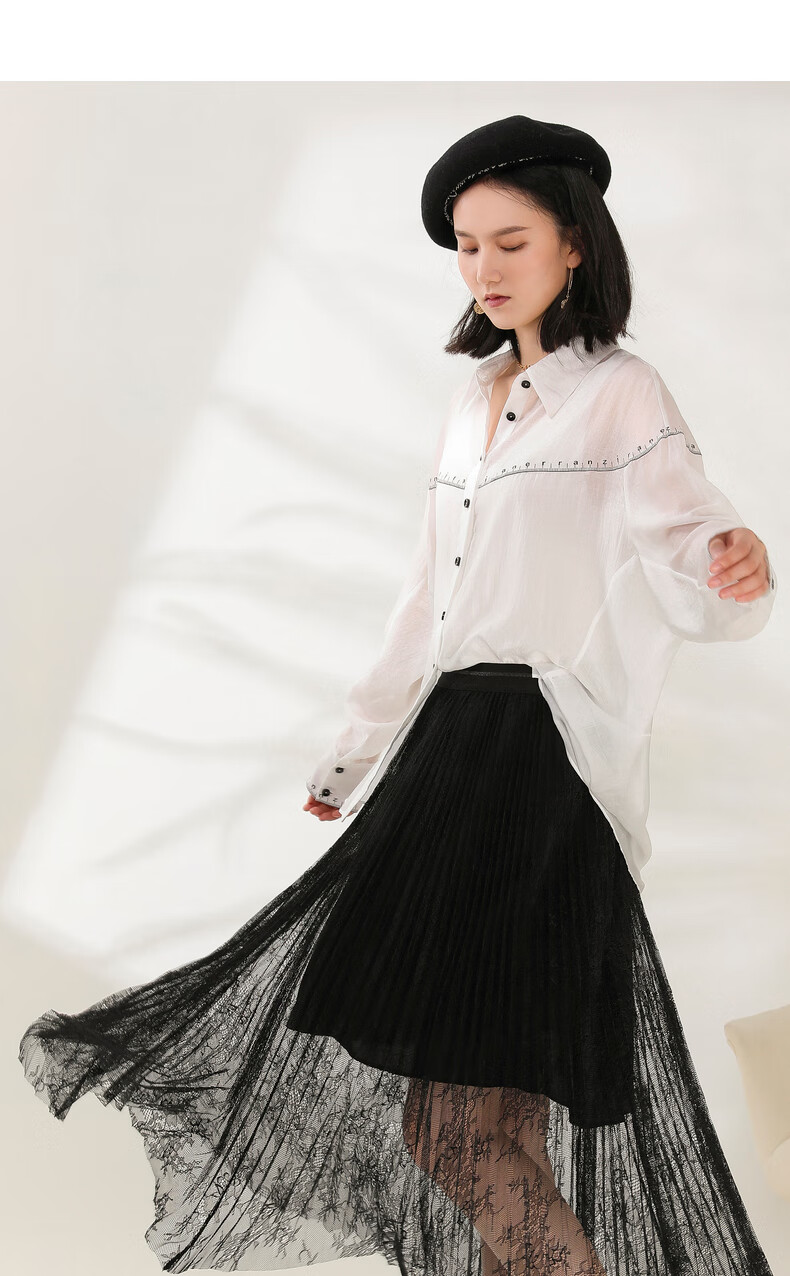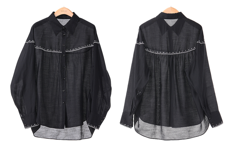 YIFINI chemise Tencel ample mince sexy chemise noire et blanche pour femme haut à manches longues printemps nouveau 2107C902 noir 0L