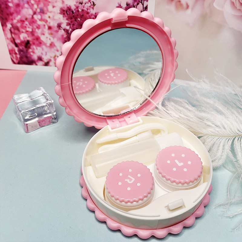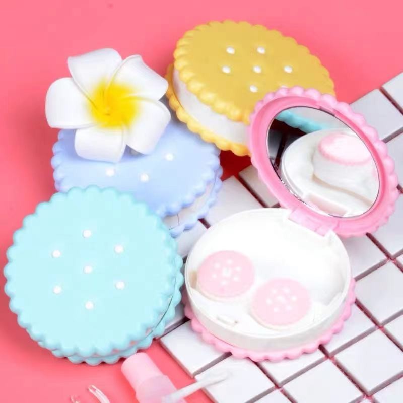 Miaomou contact lens box biscuit candy color ins contact lens box cute Korean version girl heart companion box double box csyy biscuit box-Azure Blue