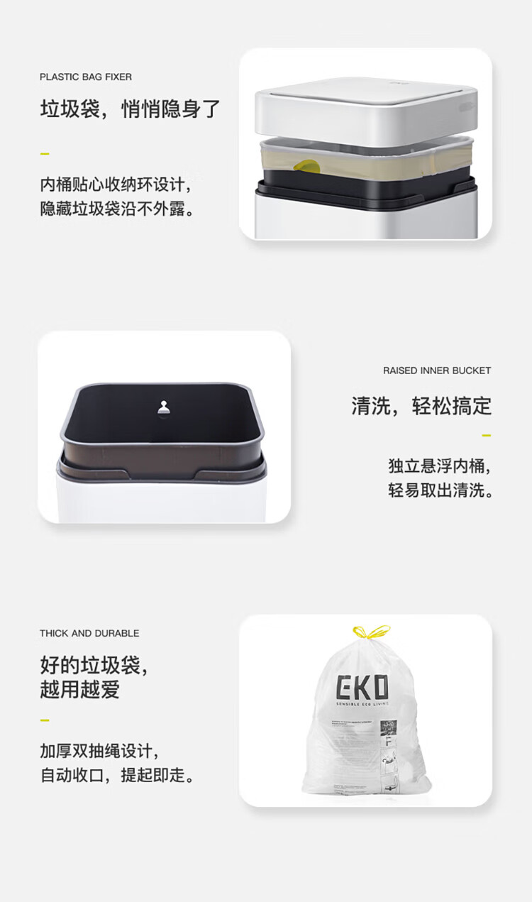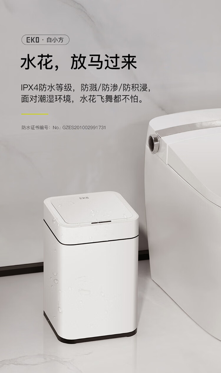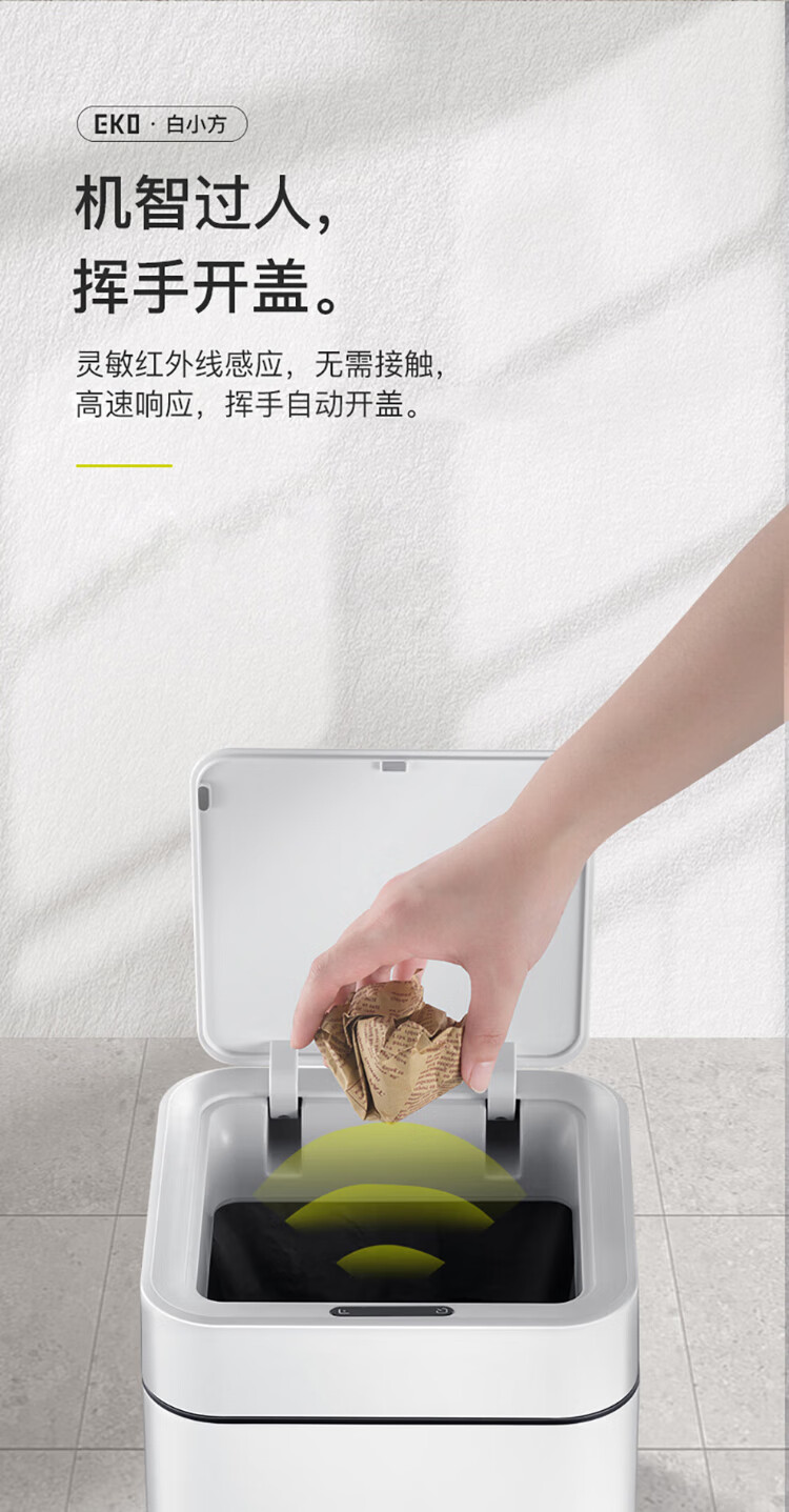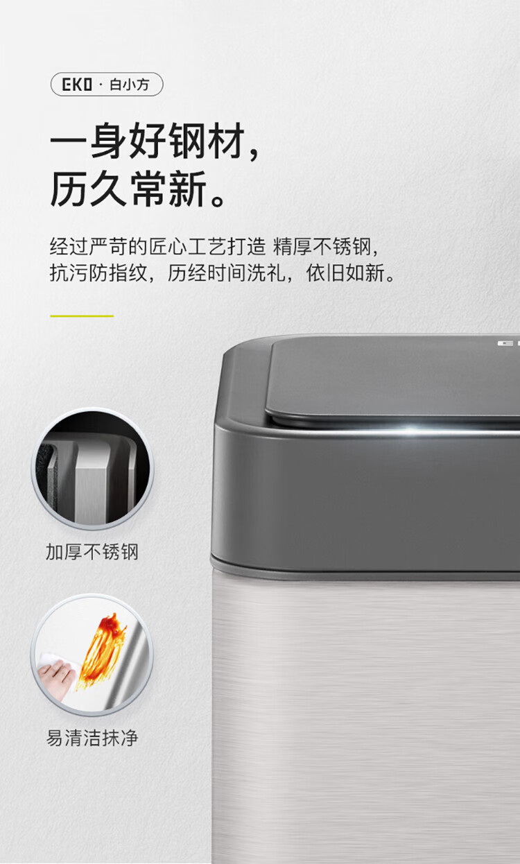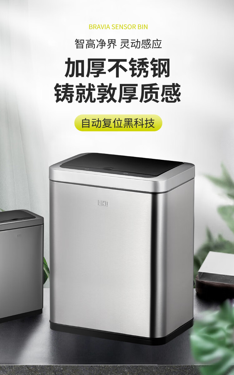 EKO张若昀推荐 智能垃圾桶自动感应夹缝大号 客厅卫生间厨房 9208-10L灰钢【锂电池款】