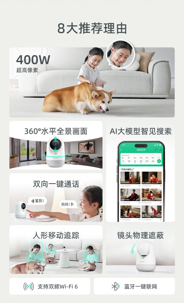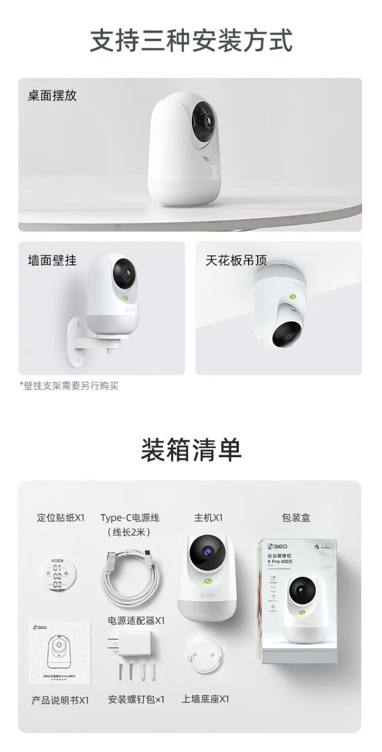 360摄像头云台9PRO 400万/7MAX 家用监控 智能摄像机7P 双频WiFi6手机远程查看 微光全彩夜视双向通话 【400万】标配+128G+4米延长线+读卡器