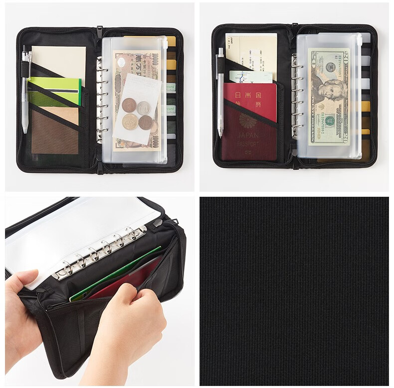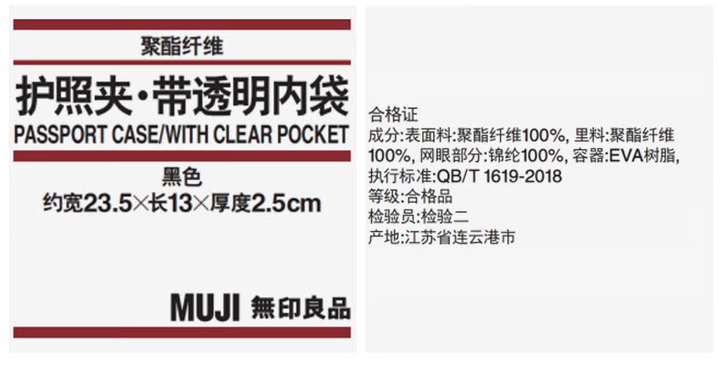 无印良品(MUJI) 聚酯纤维 护照夹 带透明内袋驾驶证行驶证件护照本卡包 ZF0S114 黑色 约宽23.5×长13×厚度2.5cm