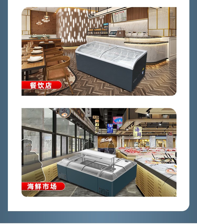 AUCMA Freezer Island Cabinet Commercial Supermarket Combination Frozen Display Cabinet Curved Glass Door Ice Cream Display Cabinet Freezer Large Capacity Commercial Quick Frozen Dumpling Ice Cream Quick Freezer 753 Liters | Length 2.0 Meters | Straight Cabinet 2008P