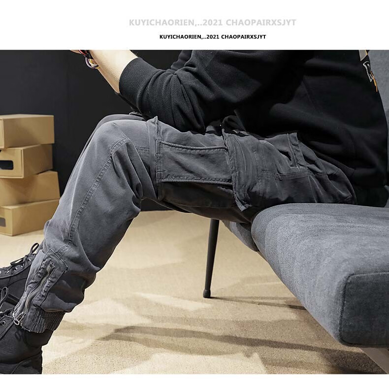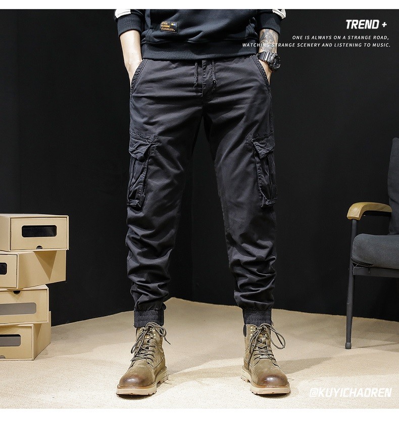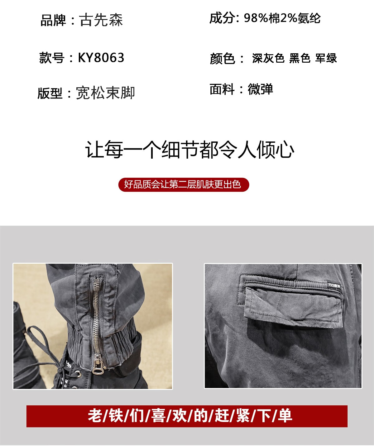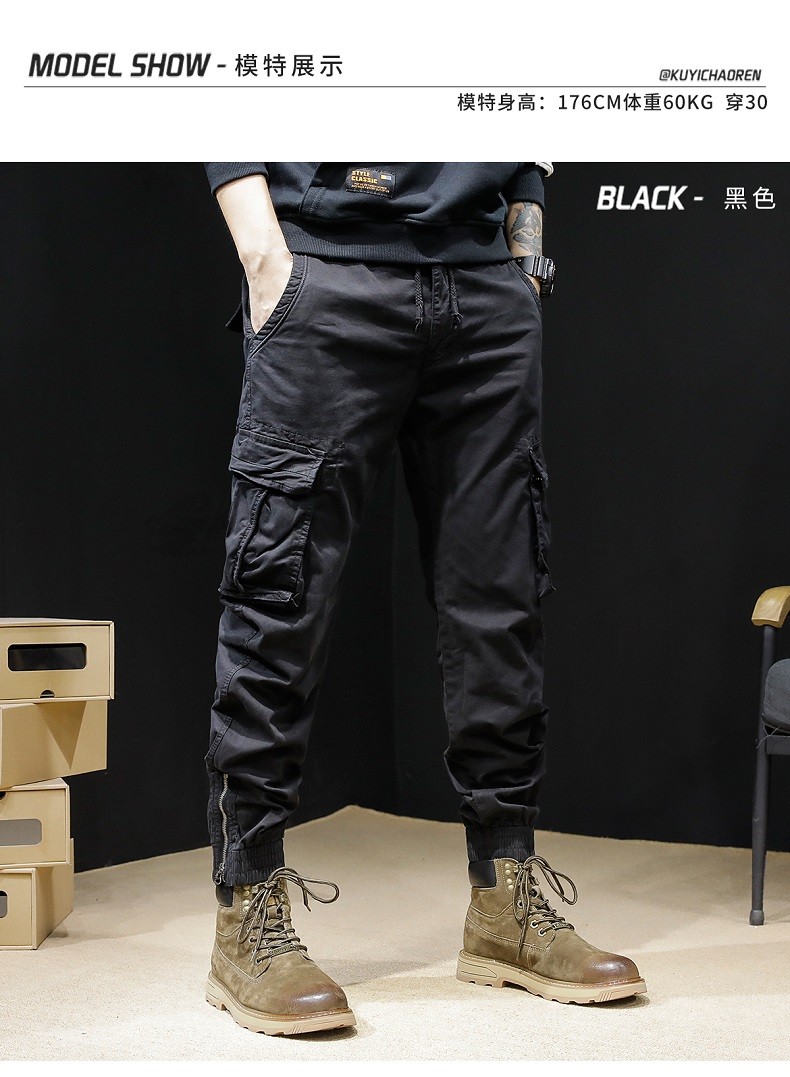 古先森美式复古工装裤男款宽松休闲裤男秋冬款哈伦裤潮牌束脚裤男长裤子 黑色 31 【125-135斤】
