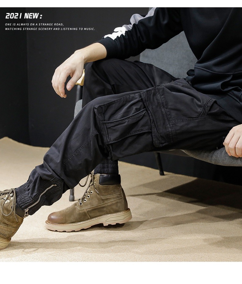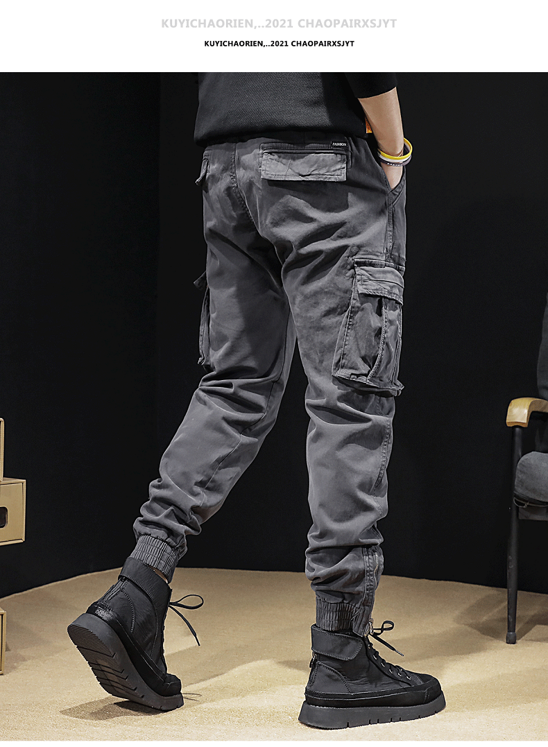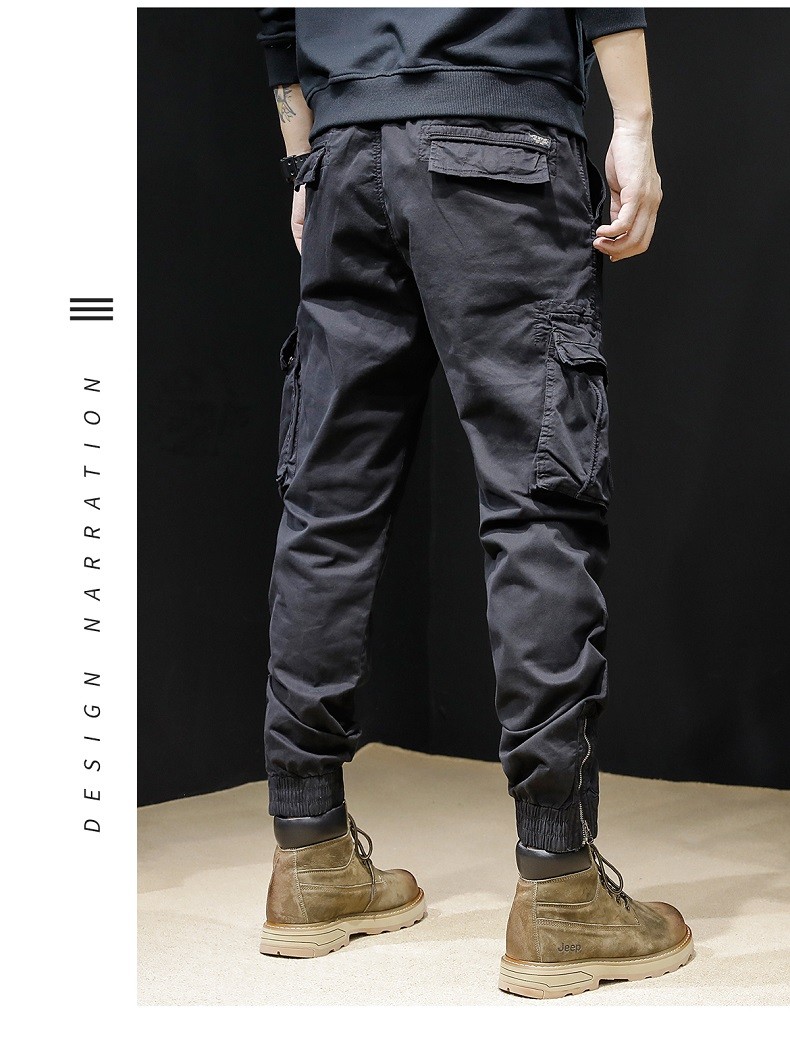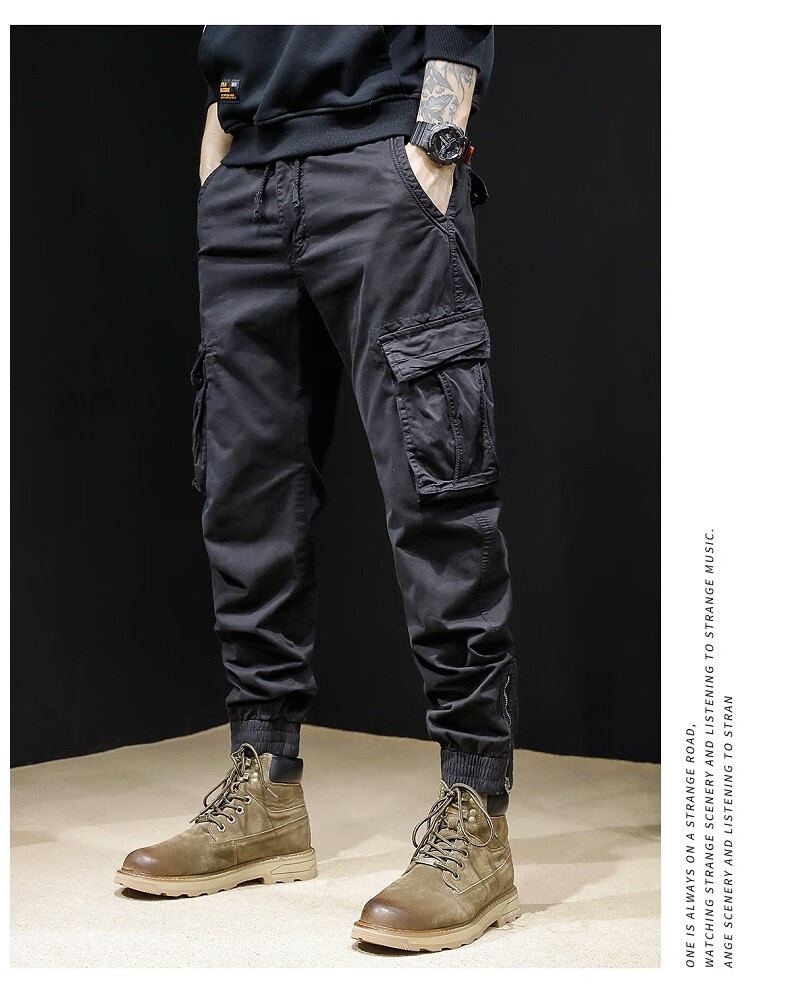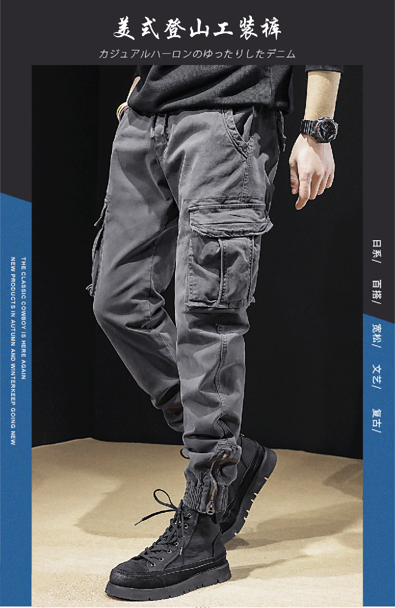 古先森美式复古工装裤男款宽松休闲裤男秋冬款哈伦裤潮牌束脚裤男长裤子 黑色 31 【125-135斤】