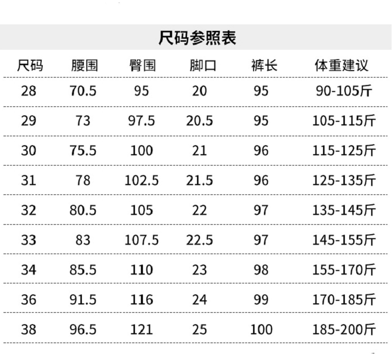 USA(inch) 28-30 30-32 32-34 34-38 38-42