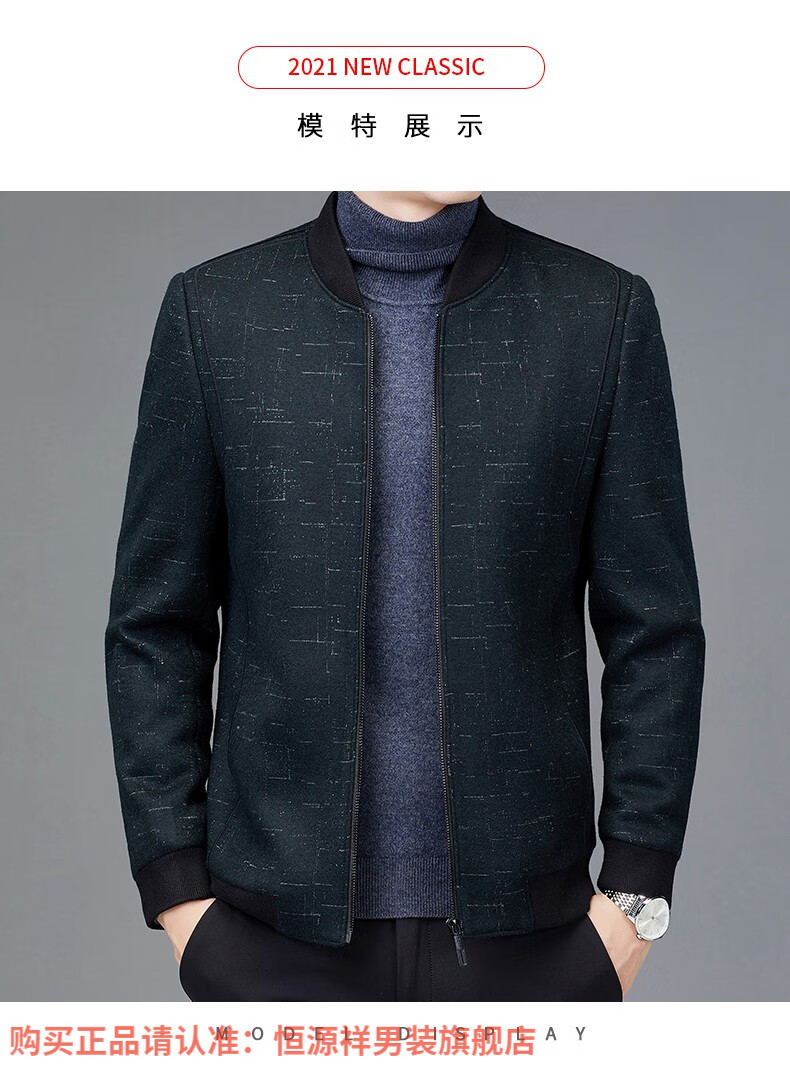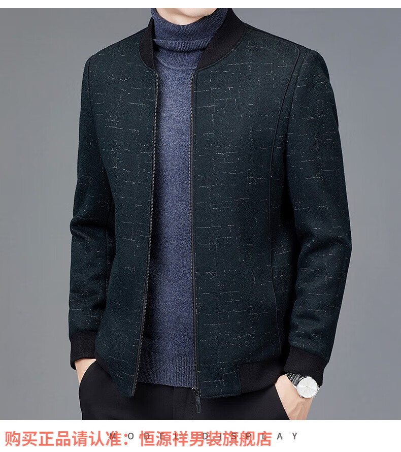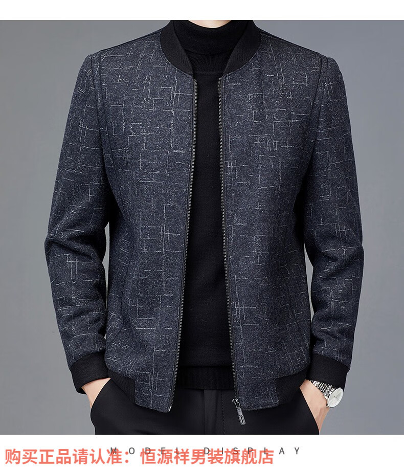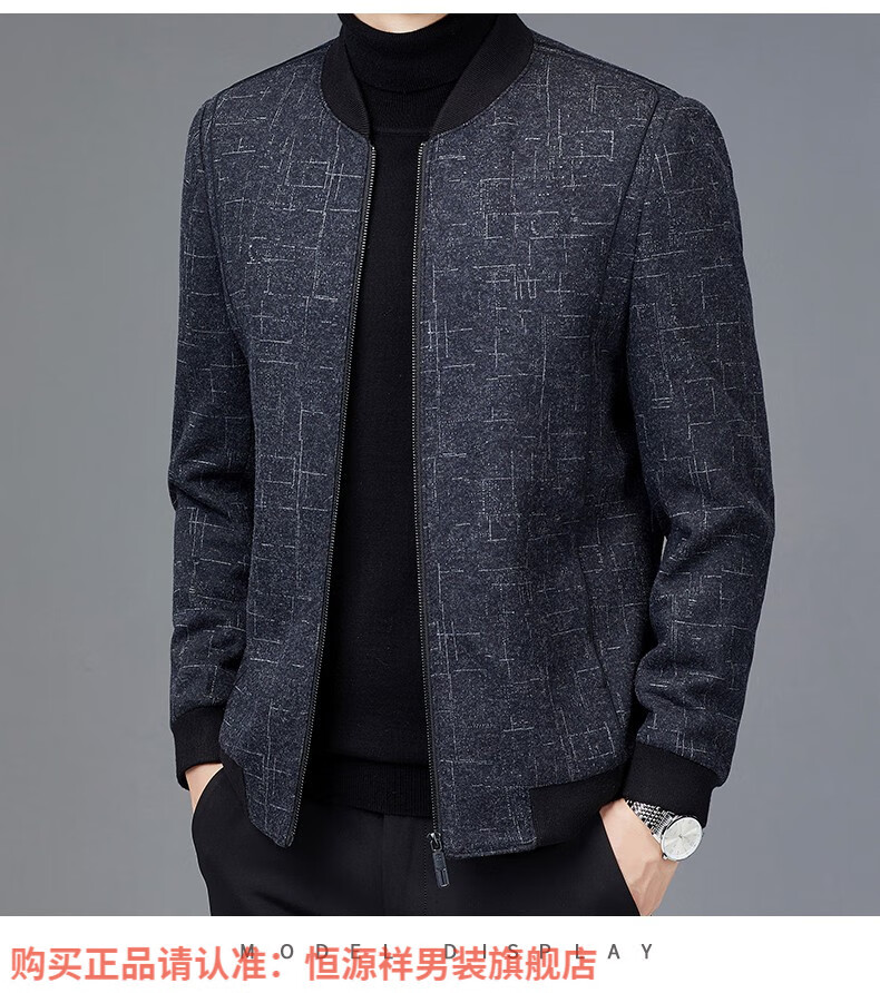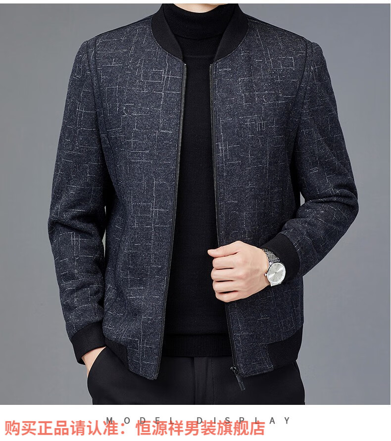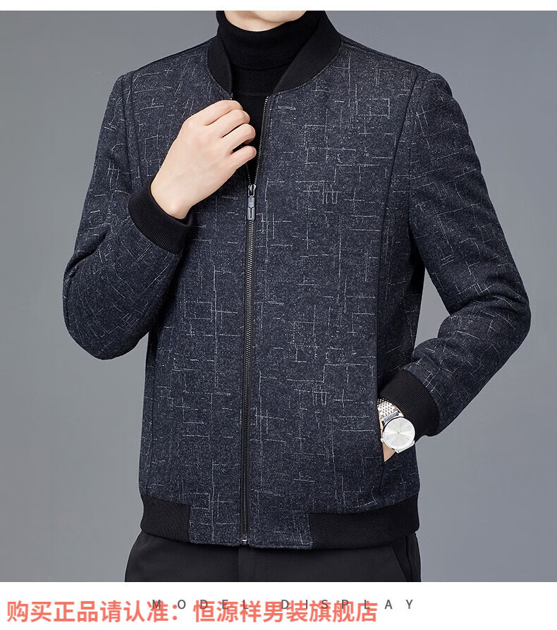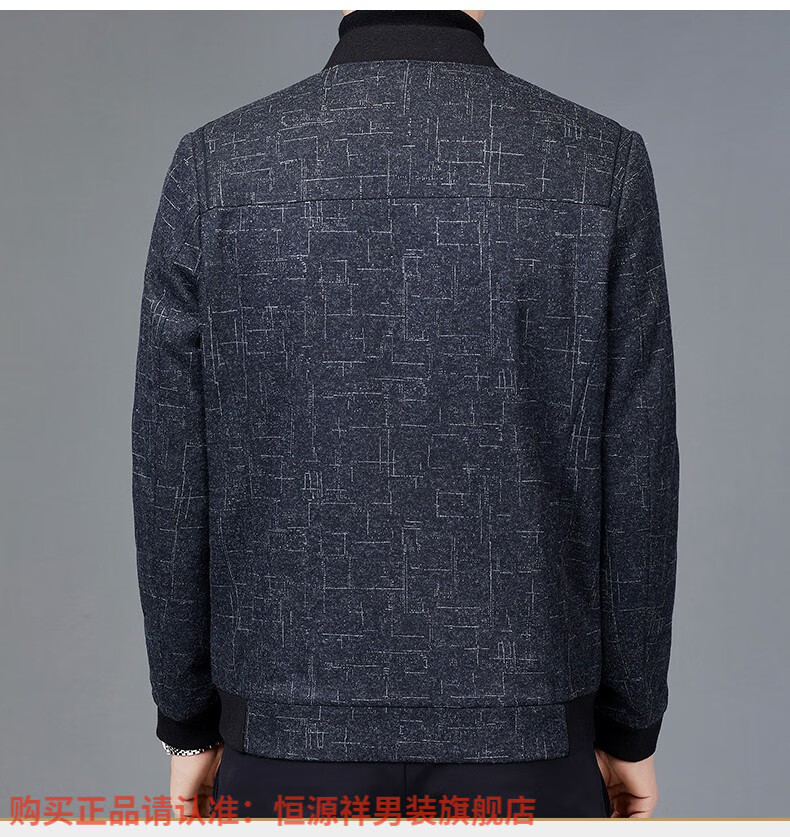 Hengyuanxiang Chaqueta de Lana de Otoño para Hombre Cuello de Béisbol Chaqueta Informal Corta de Lana de Otoño e Invierno Ropa para Hombres de Mediana Edad y Ancianos Azul Marino 2XL 185