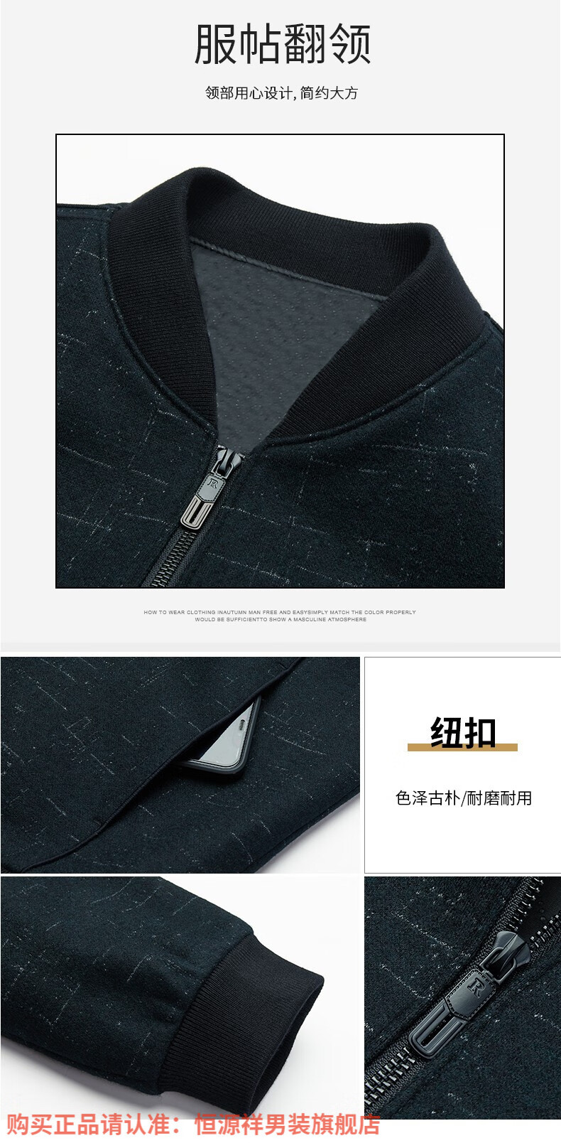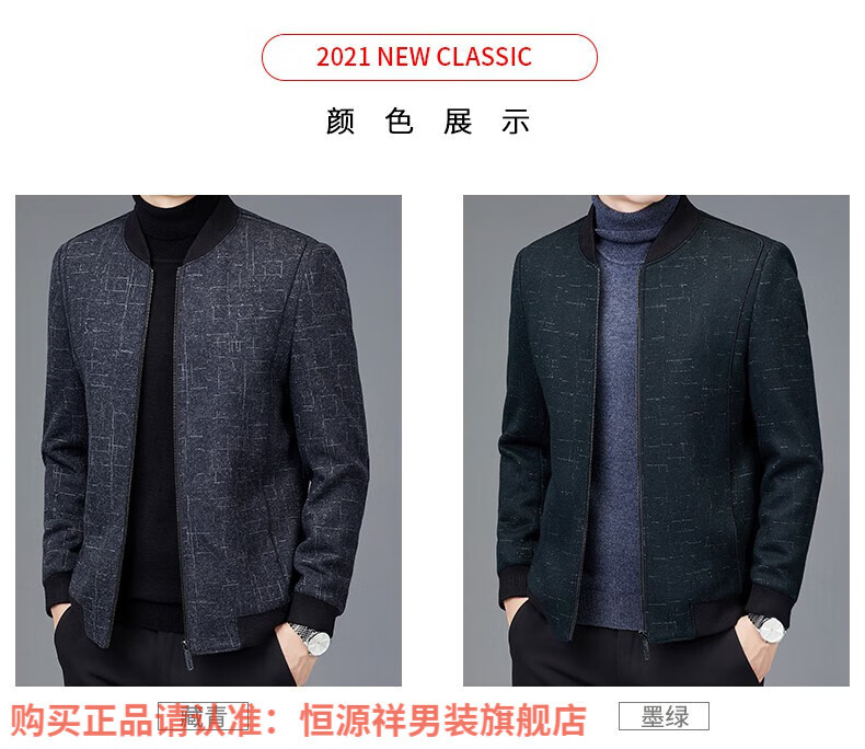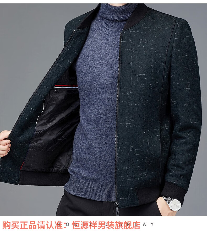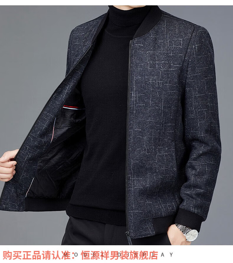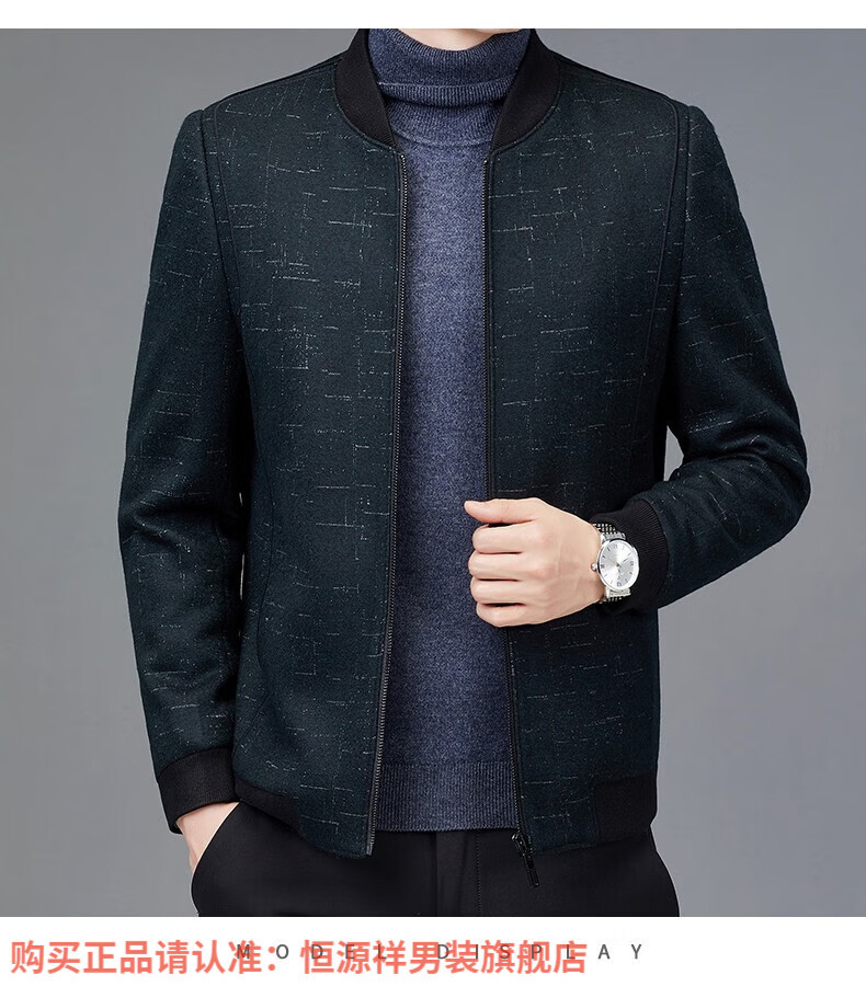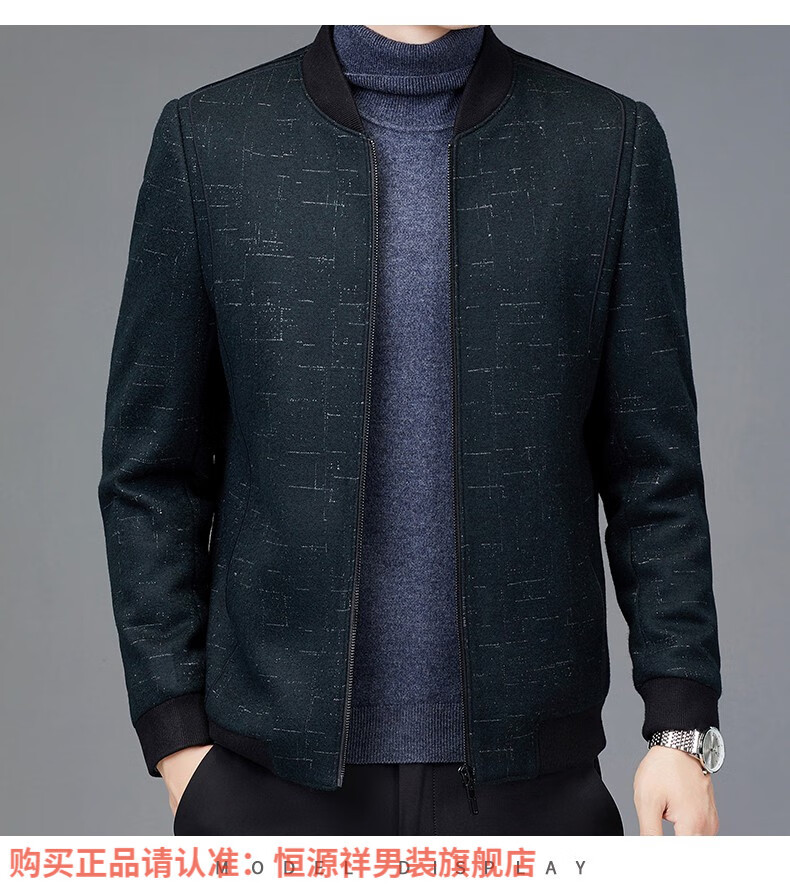Hengyuanxiang Chaqueta de Lana de Otoño para Hombre Cuello de Béisbol Chaqueta Informal Corta de Lana de Otoño e Invierno Ropa para Hombres de Mediana Edad y Ancianos Azul Marino 2XL 185