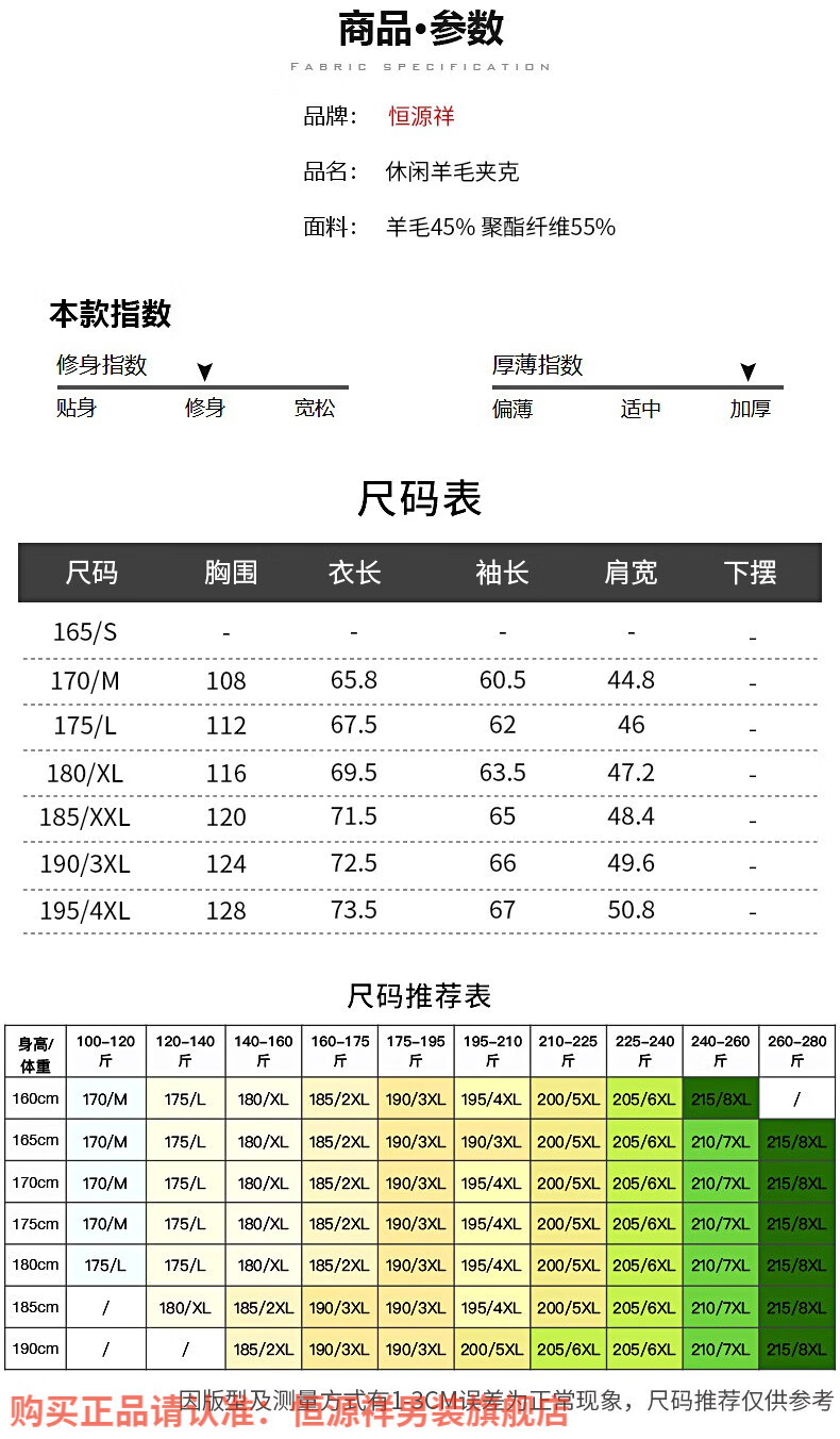 China (cm) 165 / 88-90 170 / 96-98 175 / 108-110 180 / 118-122 185 / 126-130