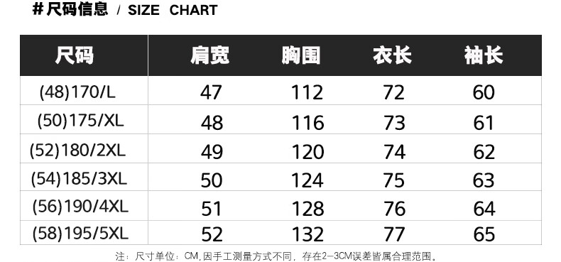 China (cm) 165 / 88-90 170 / 96-98 175 / 108-110 180 / 118-122 185 / 126-130