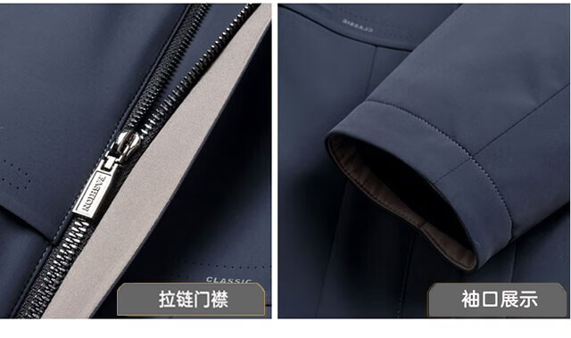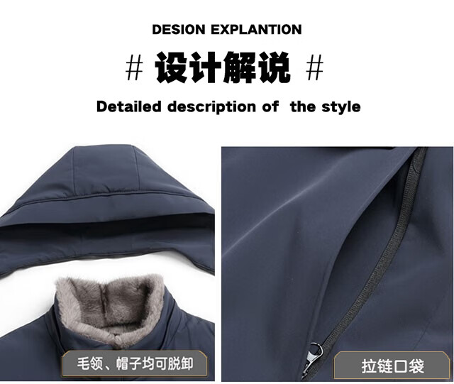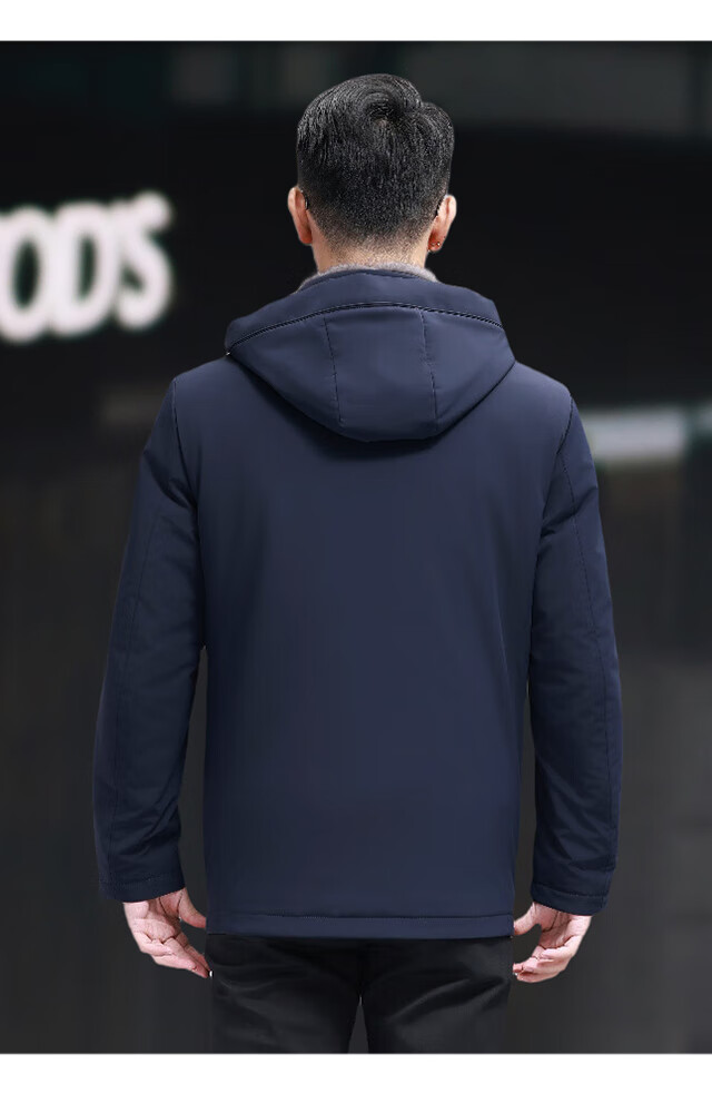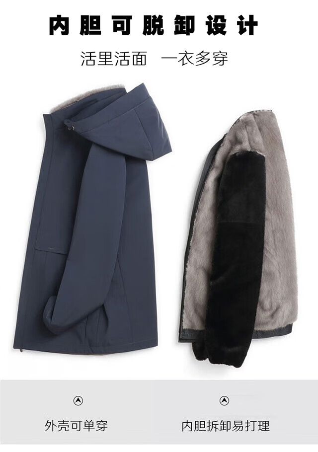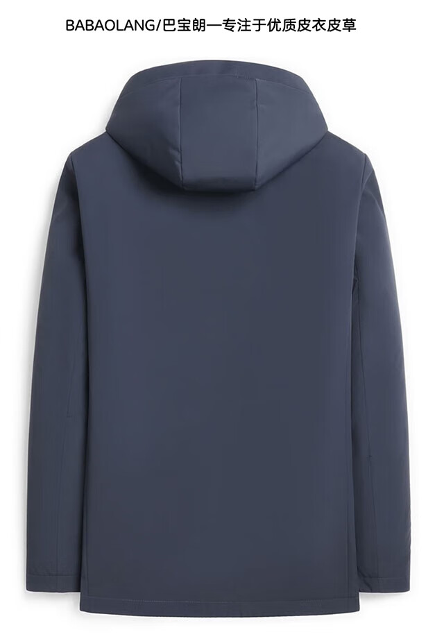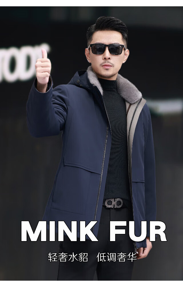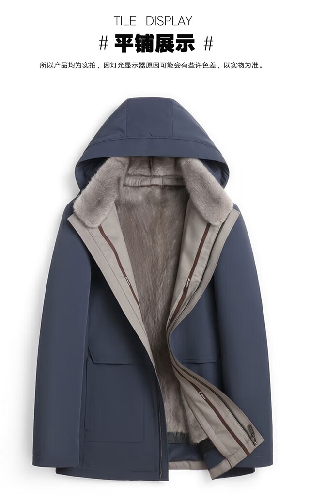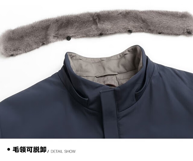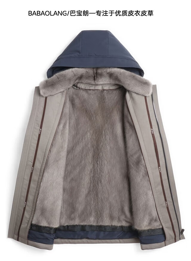 Barberon Men's Mink Fur Coat Mink Liner Mid-Length Hooded Civil Service Bureau Winter Fur Jacket Dark Lake Blue + Iron Gray Whole Mink Liner XL (175) Recommended 125-140 Jin Jin equals 0.5 kg