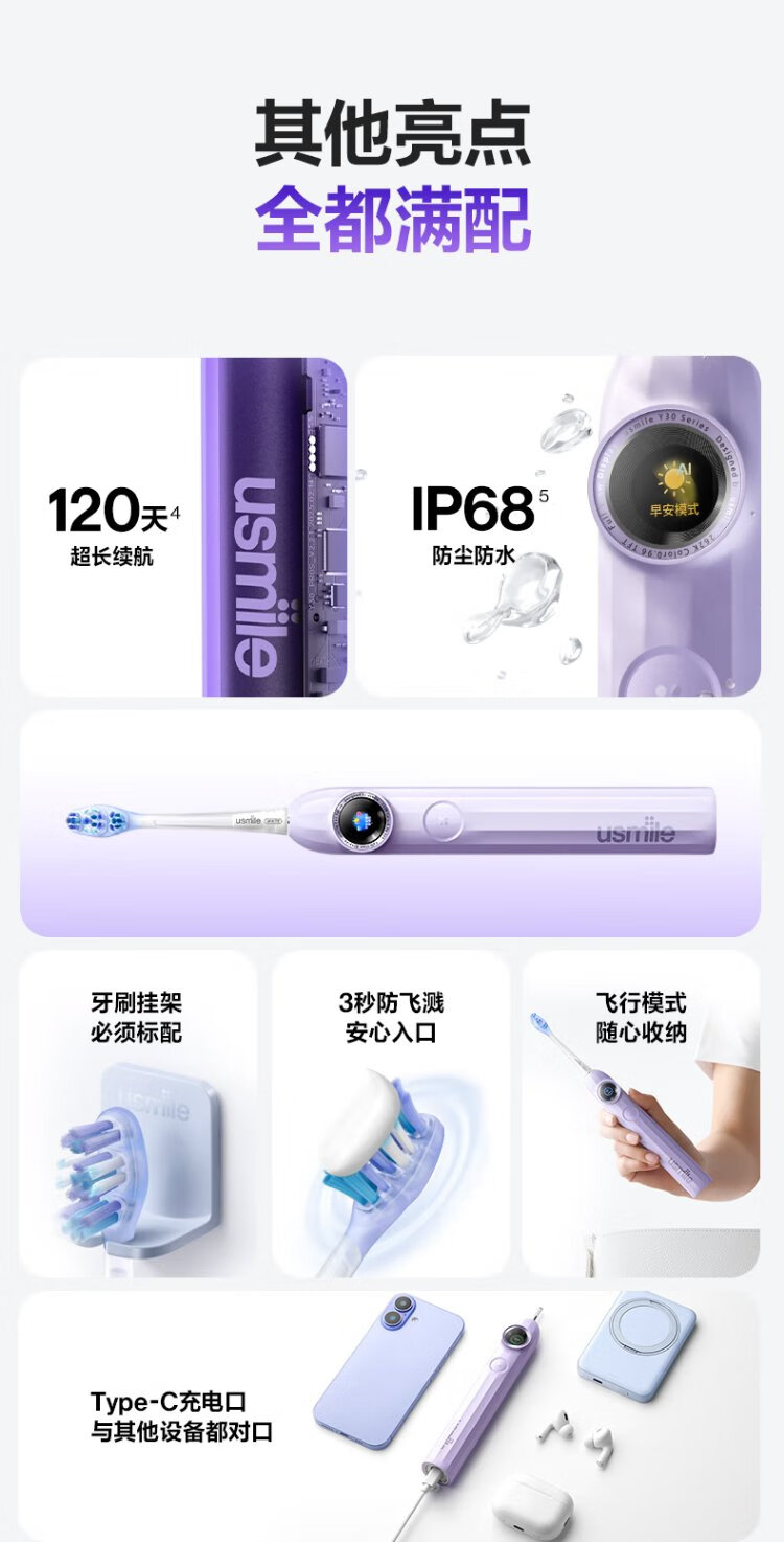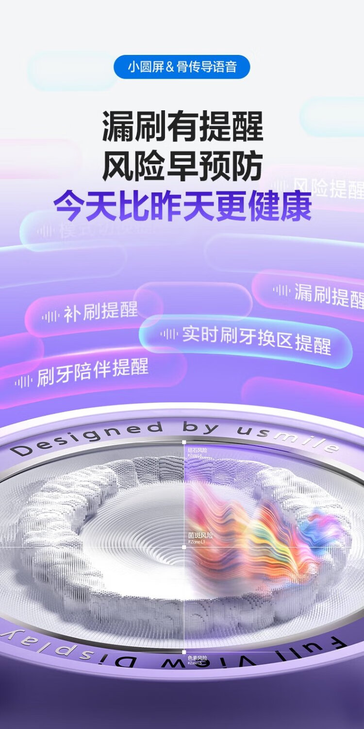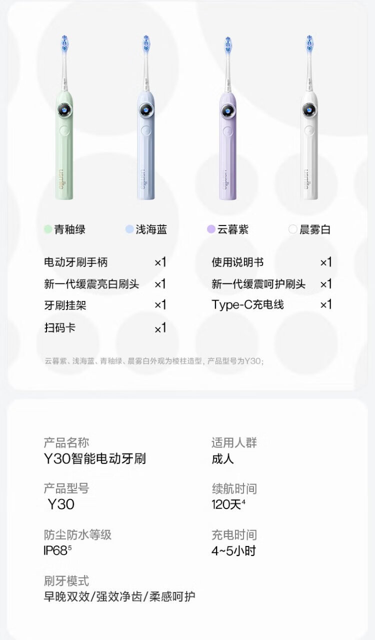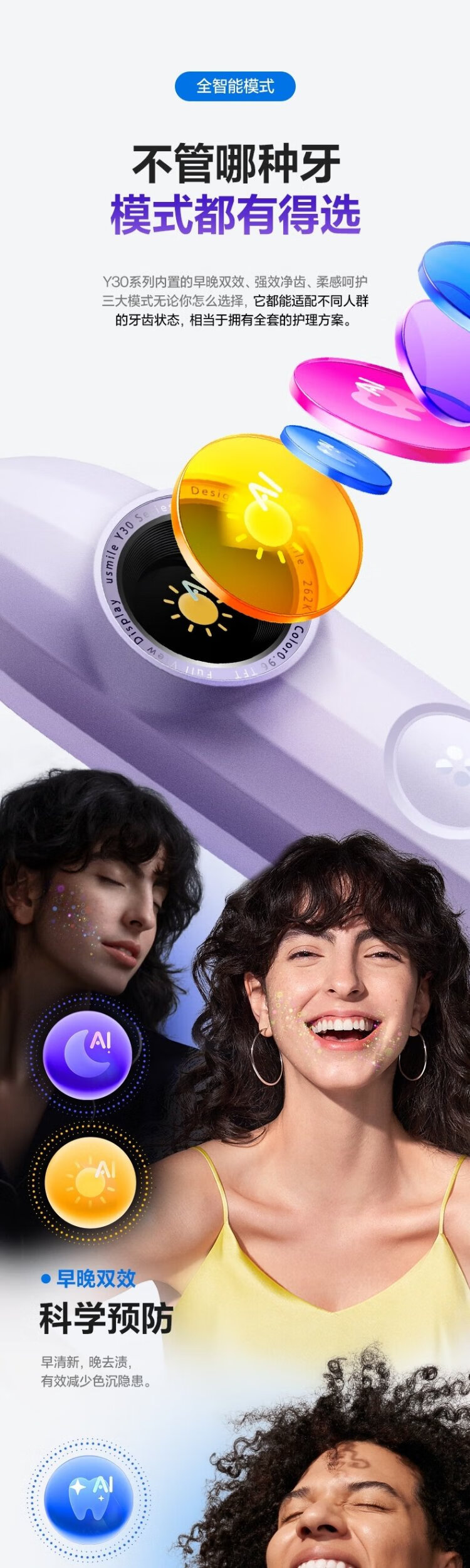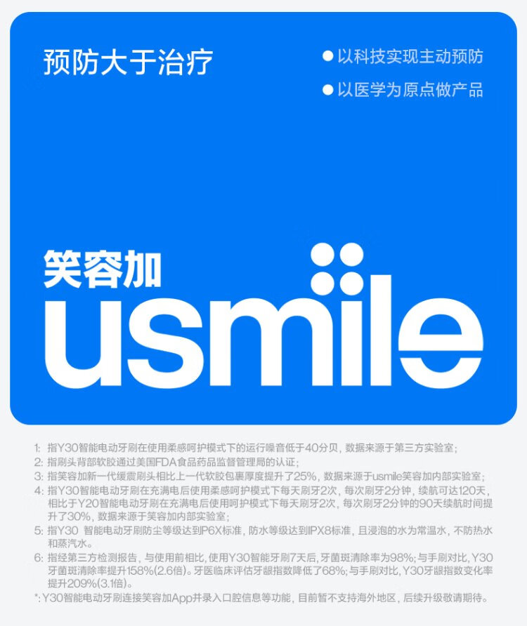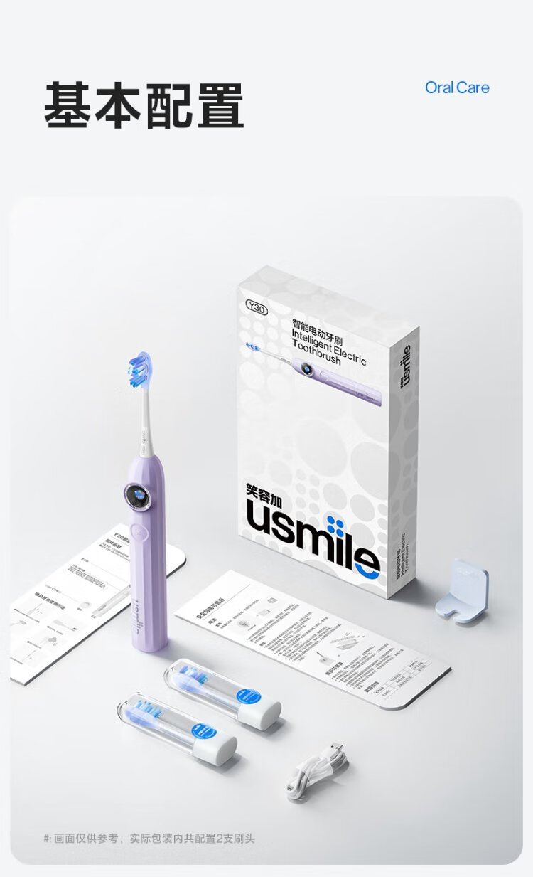 Usmile Smile Plus Electric Toothbrush Y30 Intelligent AI Algorithm Voice Bone Conduction Large Swing Cushioning No Teething Birthday Gift for Adult Male and Female Couples Y30 Light Ocean Blue - 2 brush heads in total