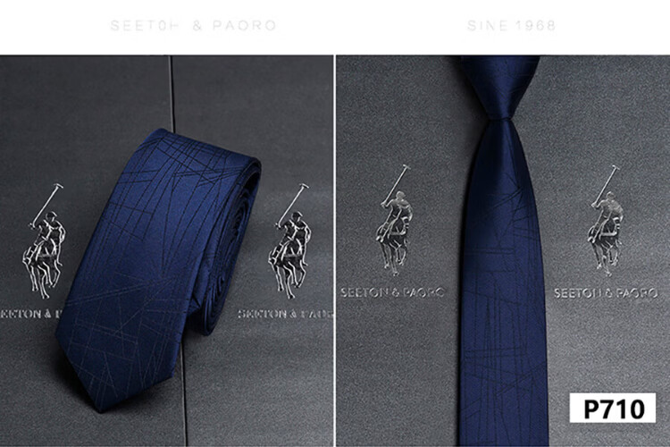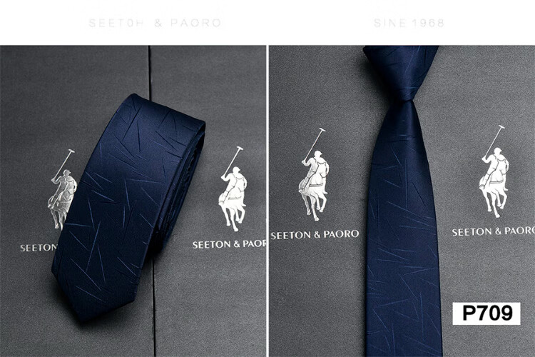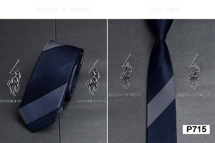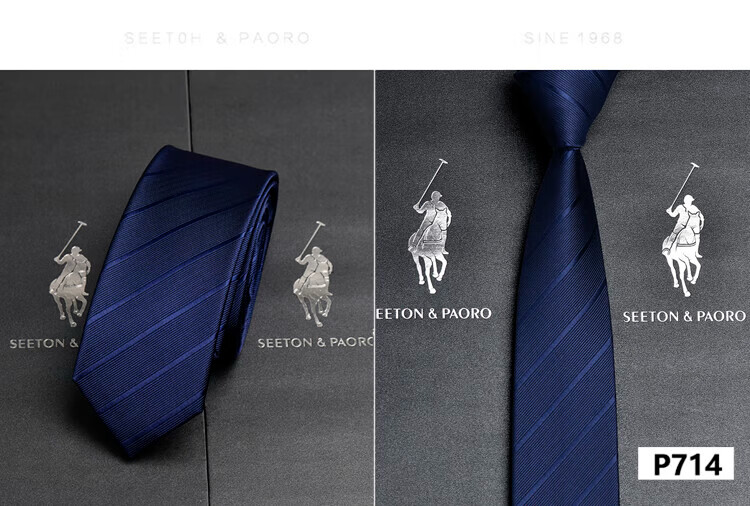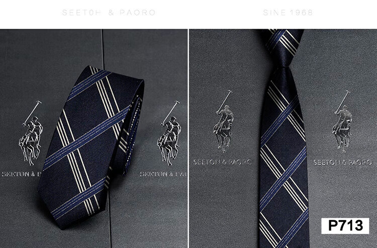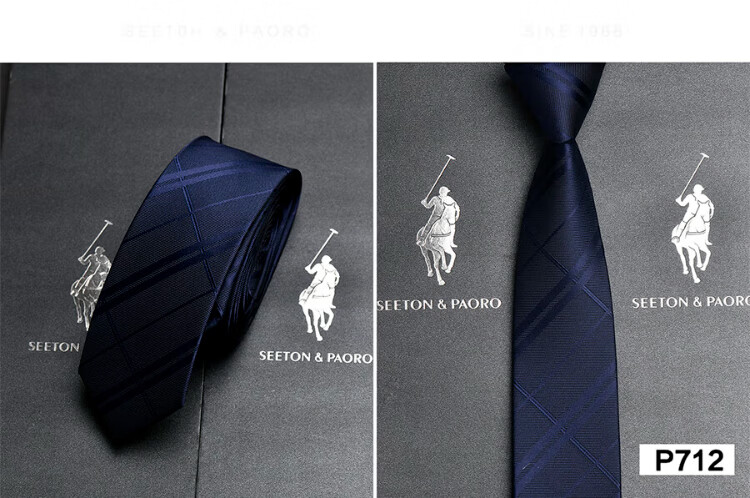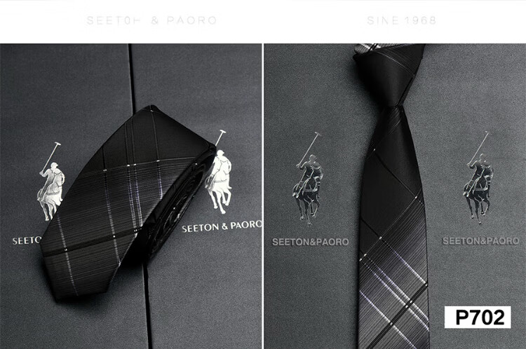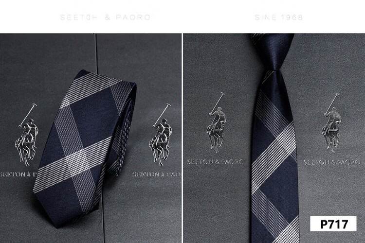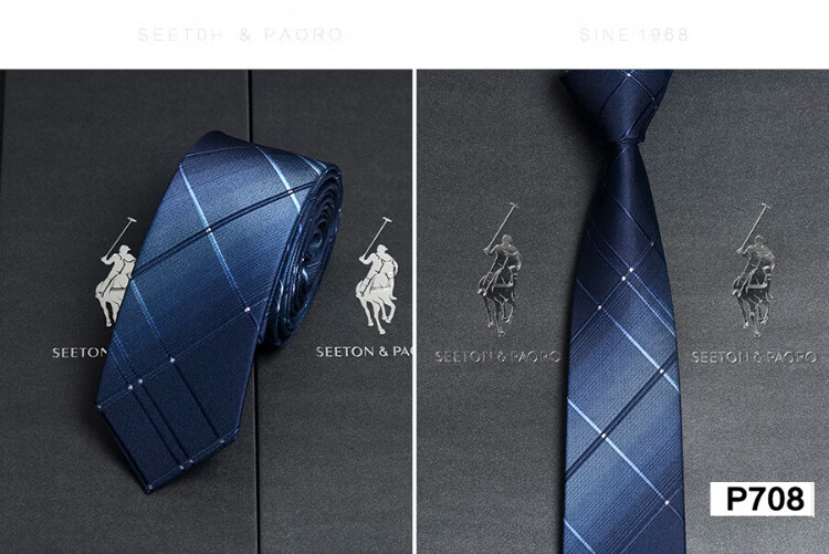 色顿保罗领带男士正装商务黑色条纹真丝休闲手打西服衬衫高端品牌礼盒装 格纹蓝-P719 手打款