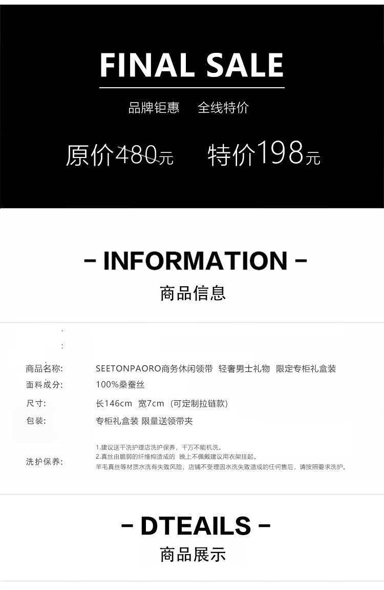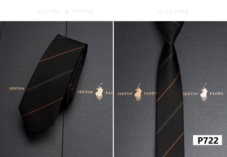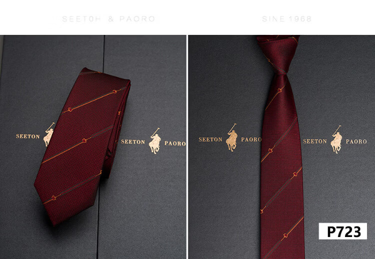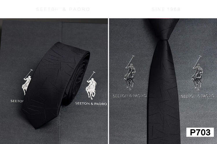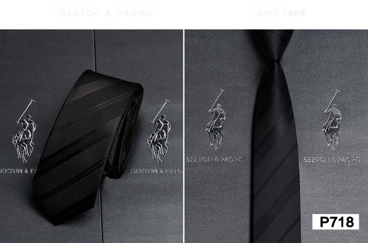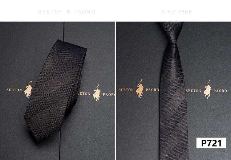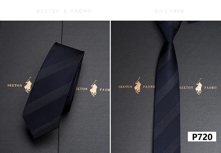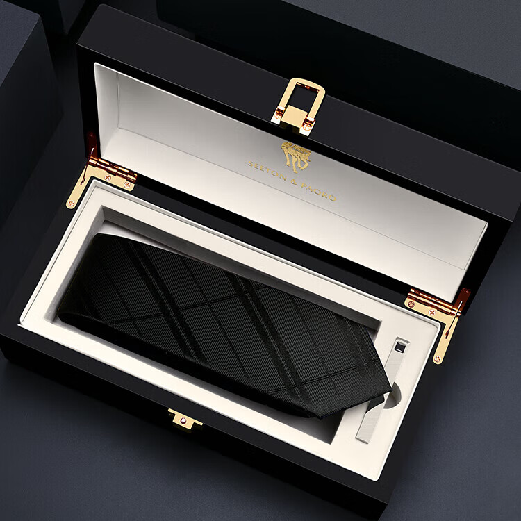 色顿保罗领带男士正装商务黑色条纹真丝休闲手打西服衬衫高端品牌礼盒装 格纹蓝-P719 手打款