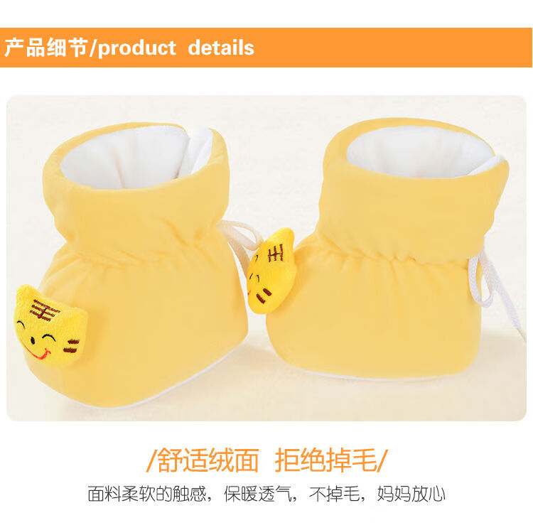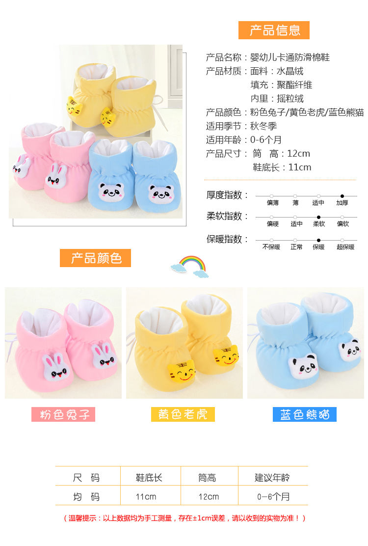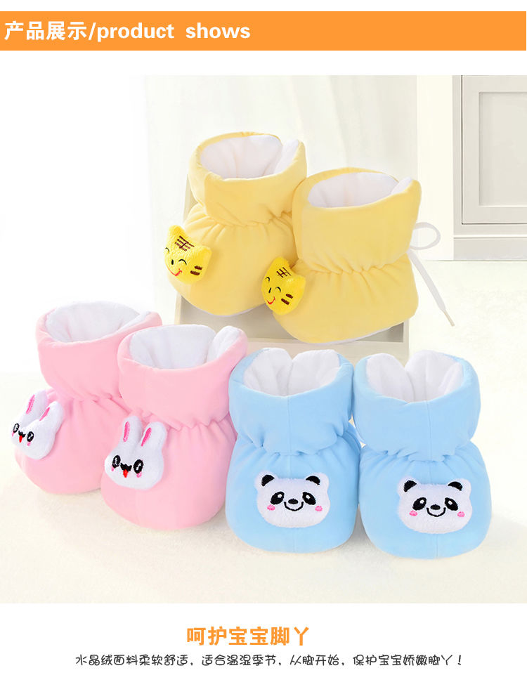 宝思源新生儿小棉鞋0-3-6个月初生儿男女宝宝软底鞋子秋冬季婴儿鞋加绒 粉色0-12个月 均码(脚长长11厘米以内)