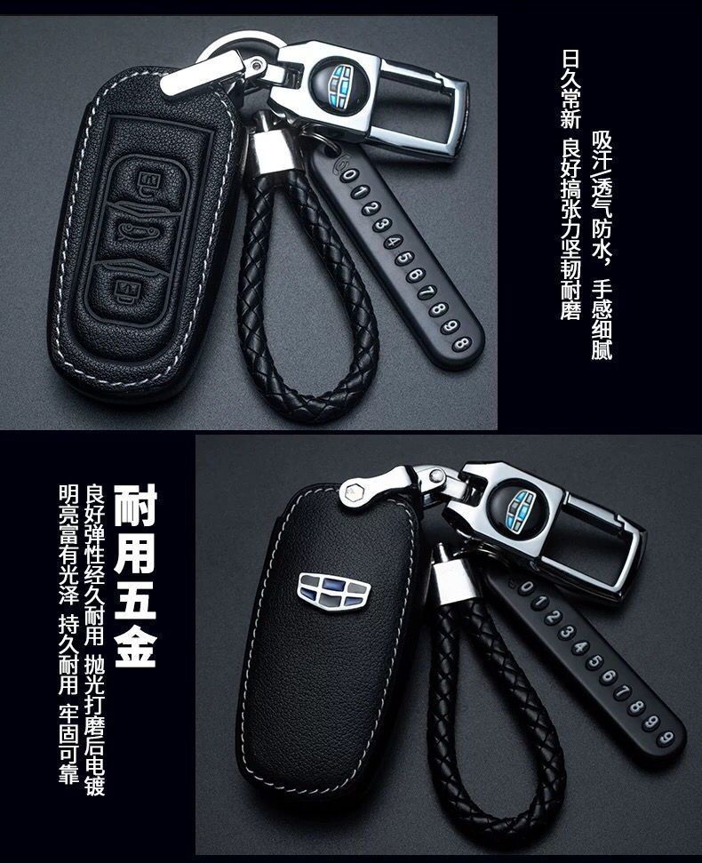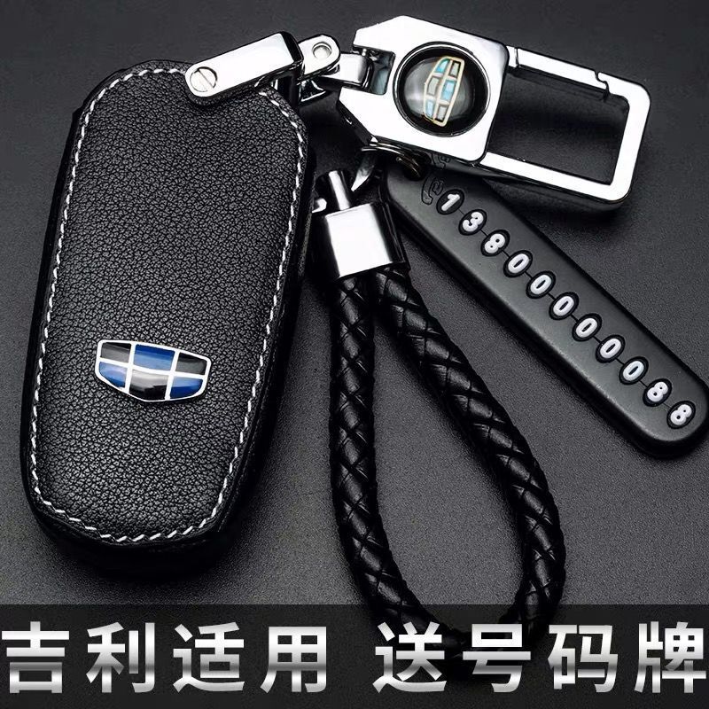 适用于吉利经典老帝豪ec7套 715 718ec7-rv钥匙包 车用遥控器保护壳 A款【金属钥匙扣+号码牌+挂绳】