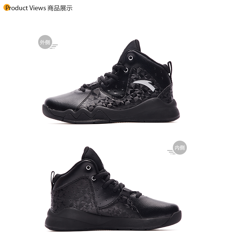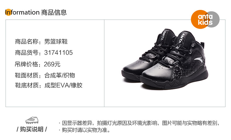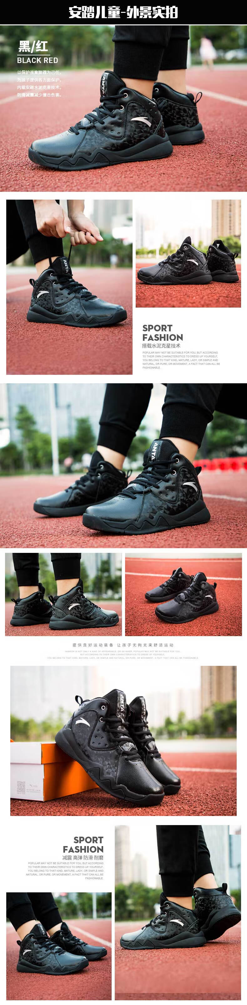 安踏童鞋男童运动鞋秋冬季新款休儿童高帮篮球鞋学生中大童球鞋男 深蓝黑/橙1105 33