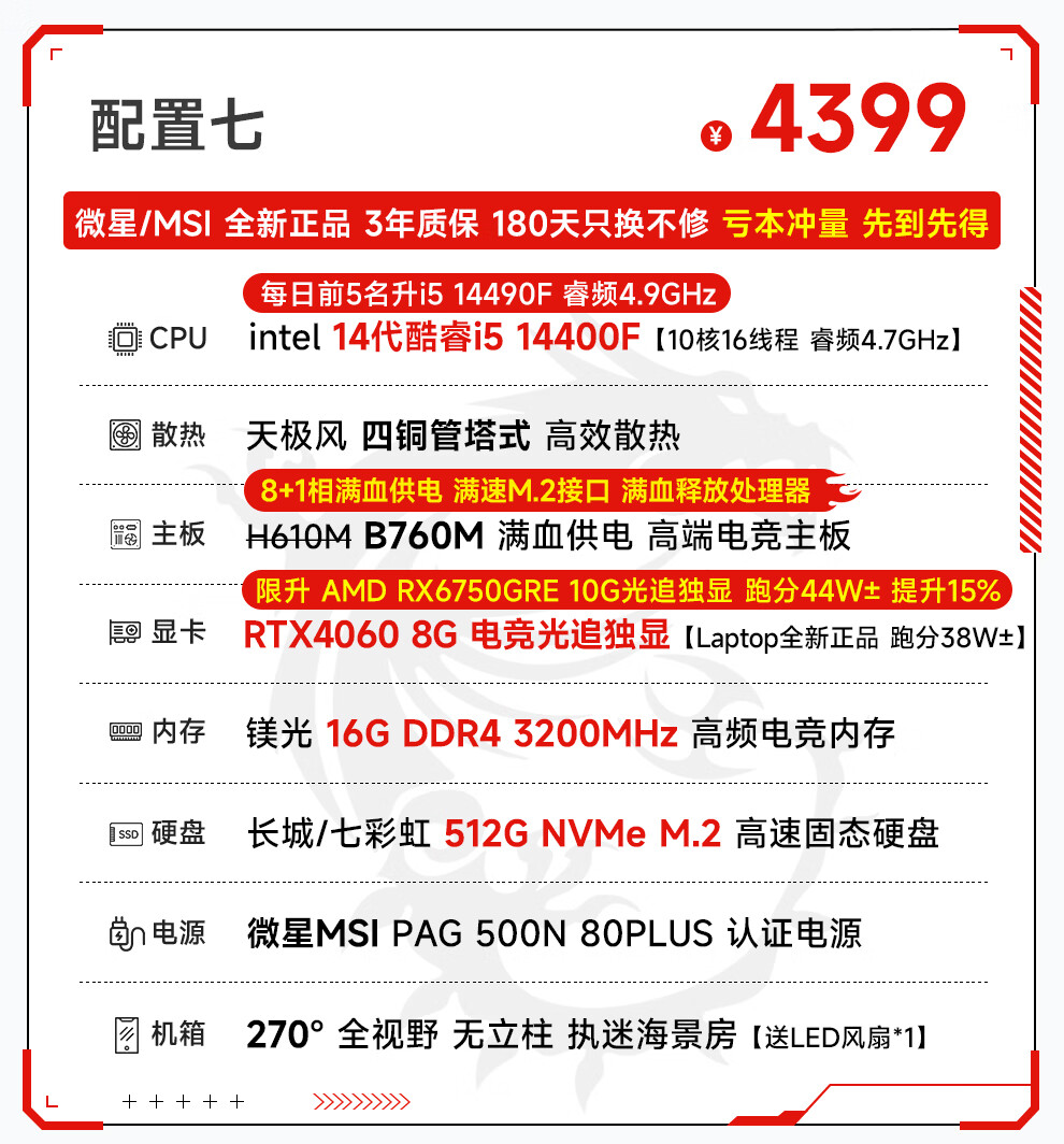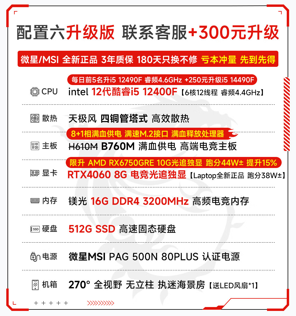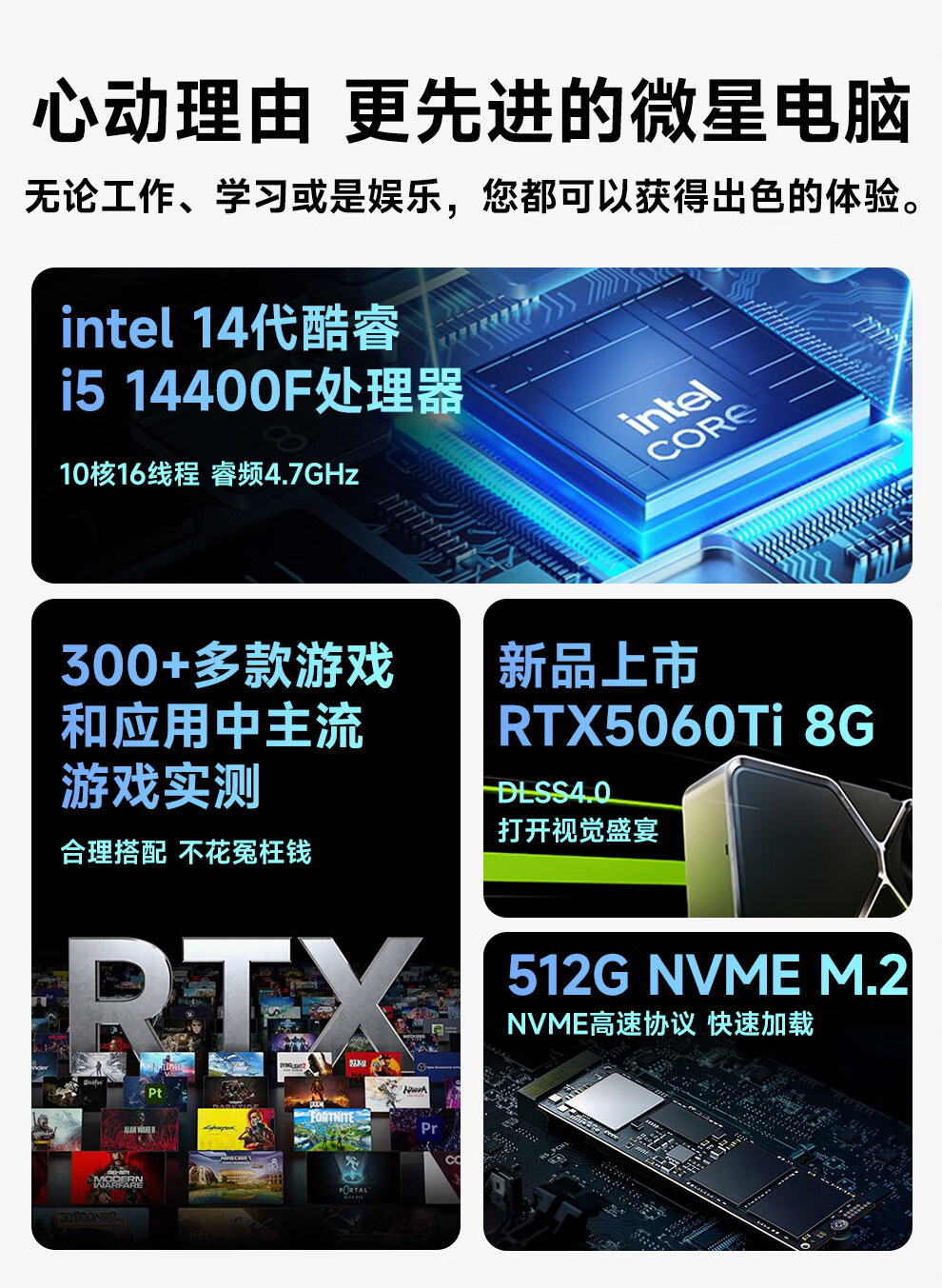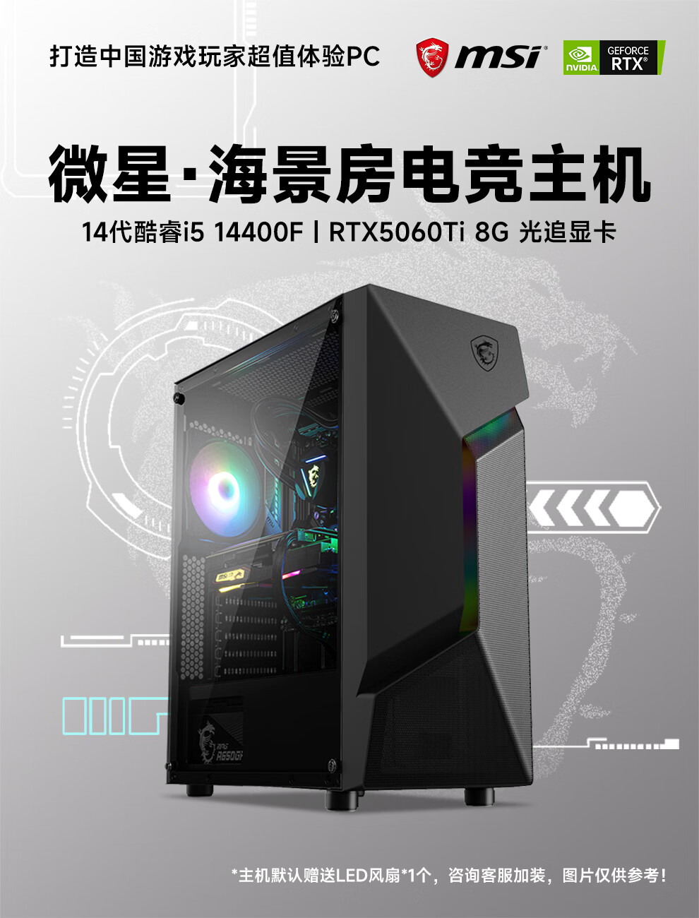 MSI i5 12400F/13400F/RTX3060/4060/5060Ti Black Myth Wukong game console computer desktop assembly computer host DIY complete machine configuration seven i5 14400F丨RTX4060 8G