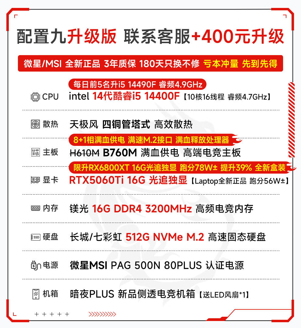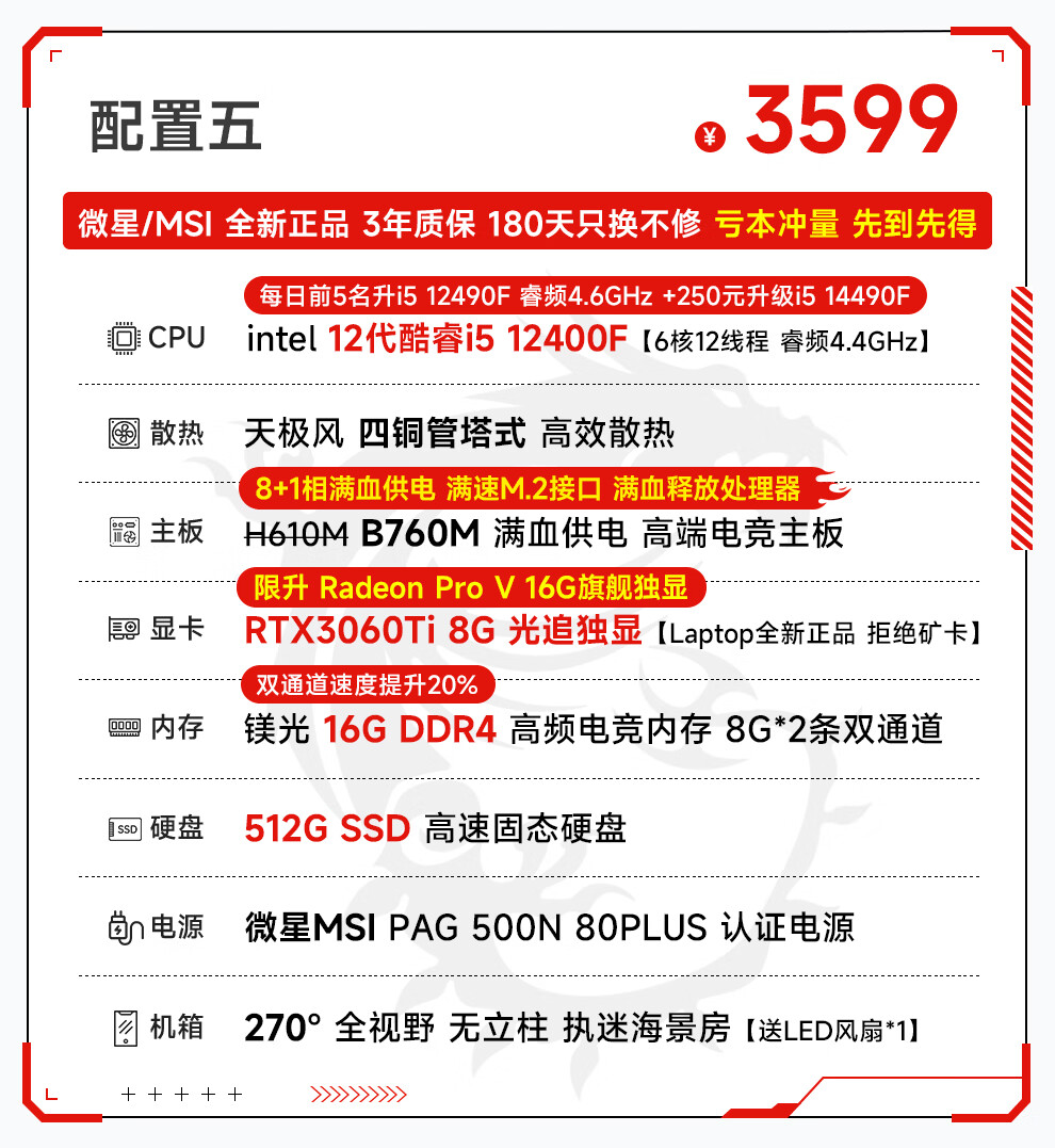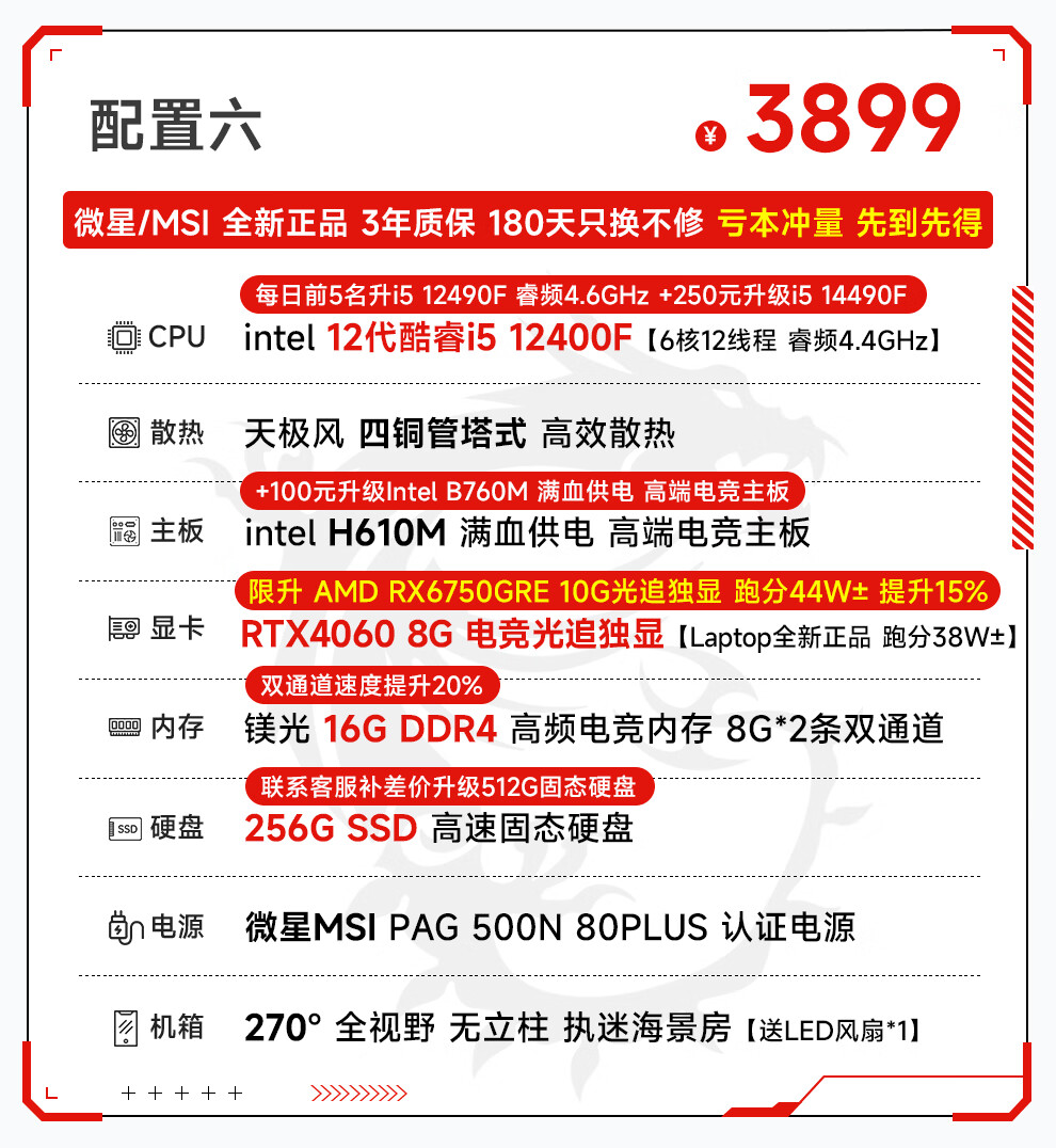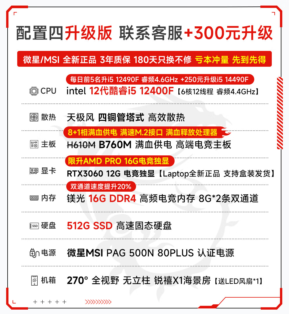 MSI i5 12400F/13400F/RTX3060/4060/5060Ti Black Myth Wukong game console computer desktop assembly computer host DIY complete machine configuration seven i5 14400F丨RTX4060 8G