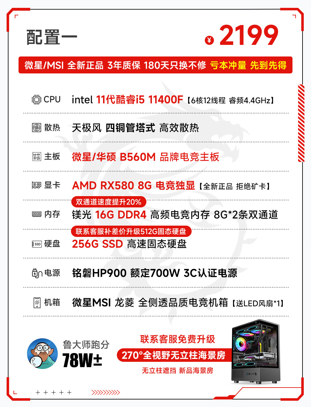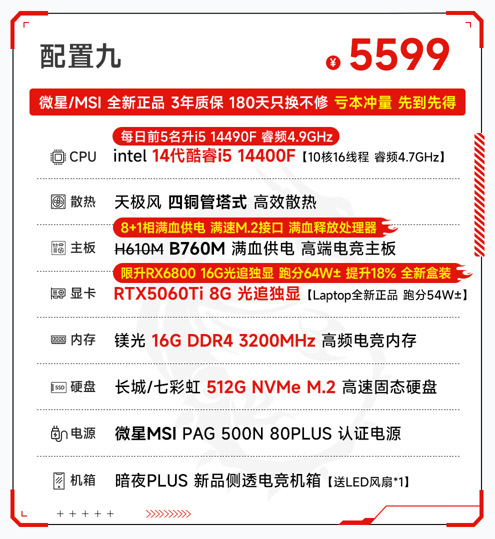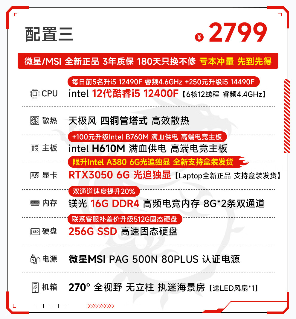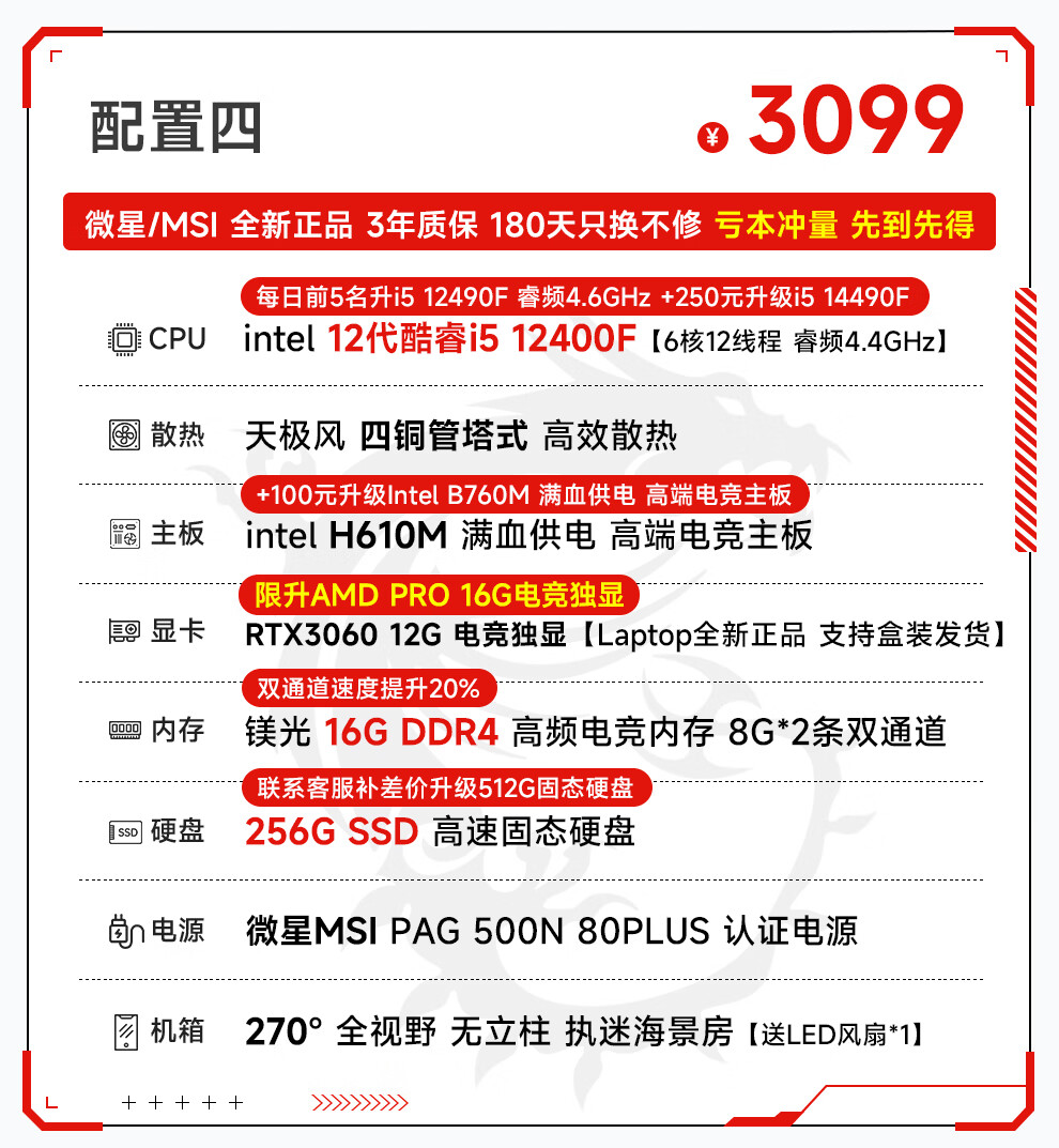 MSI i5 12400F/13400F/RTX3060/4060/5060Ti Black Myth Wukong game console computer desktop assembly computer host DIY complete machine configuration seven i5 14400F丨RTX4060 8G