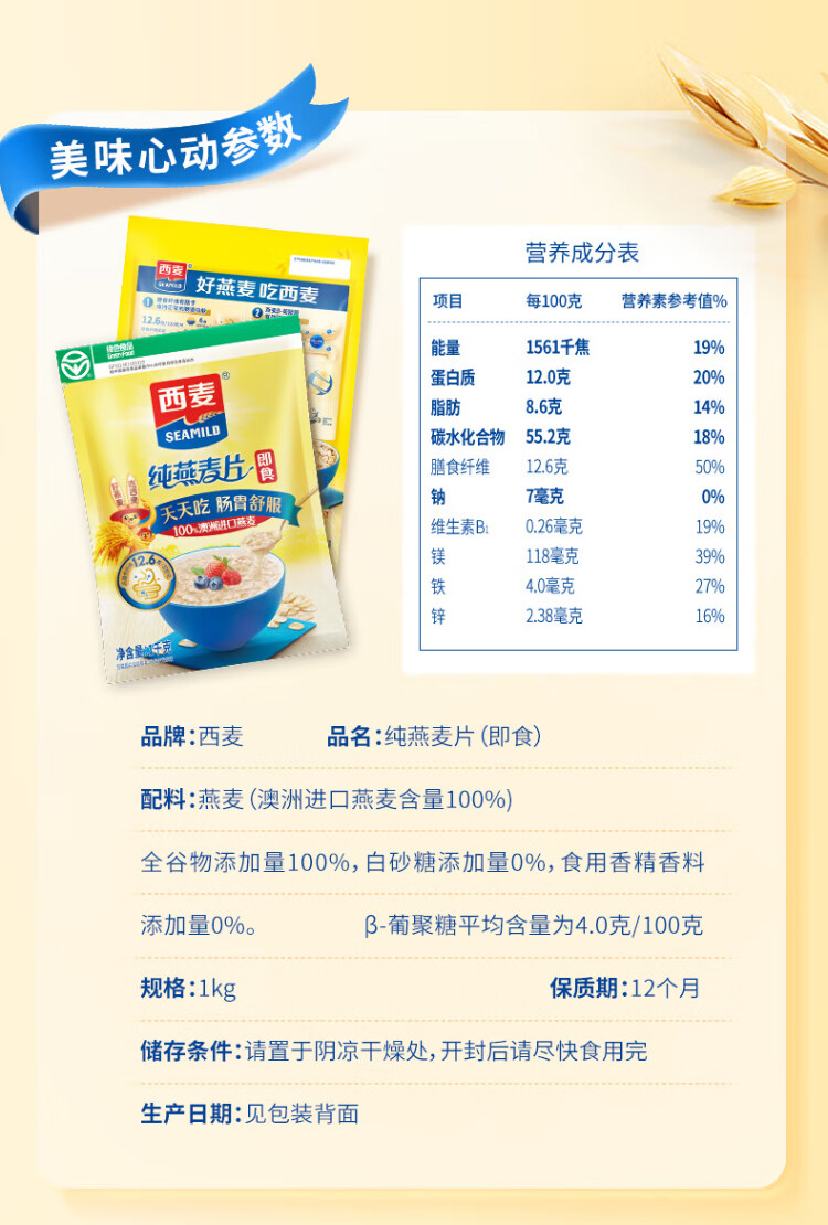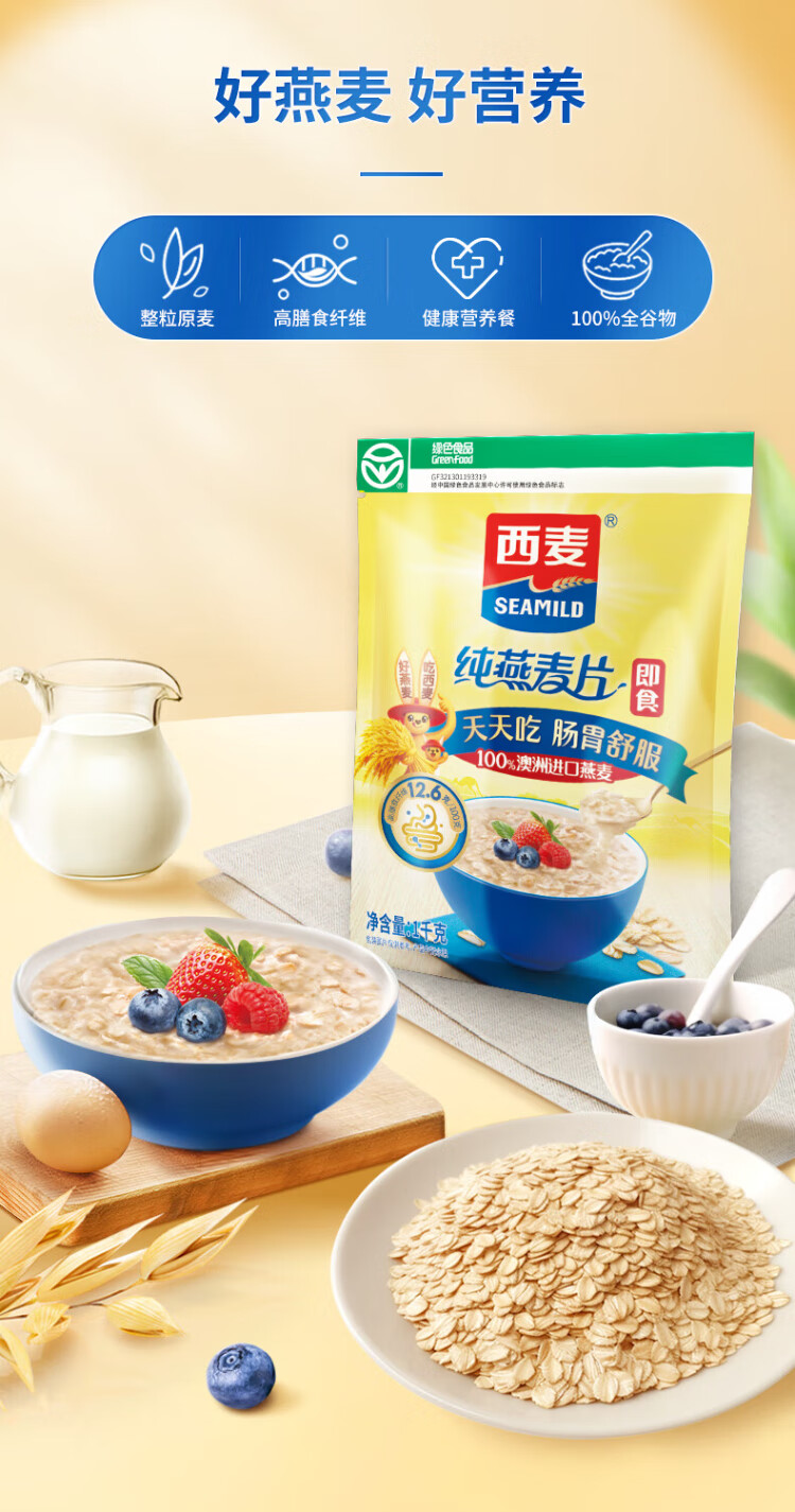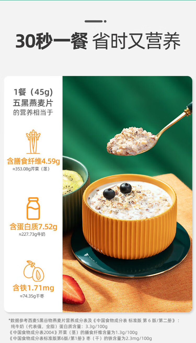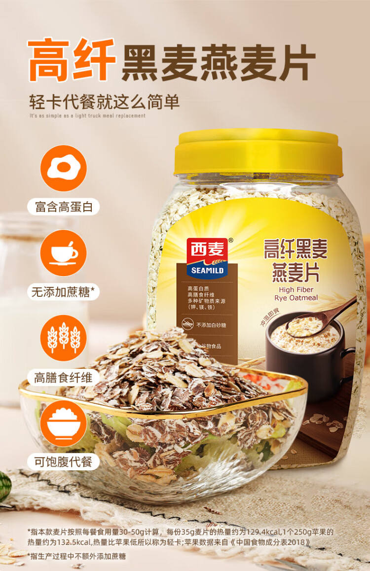 West wheat instant oatmeal, mixed cereals, fitness and health meal replacement, nutritious breakfast brewed food for middle-aged and elderly people, high fiber rye bucket 1105g, free pure wheat