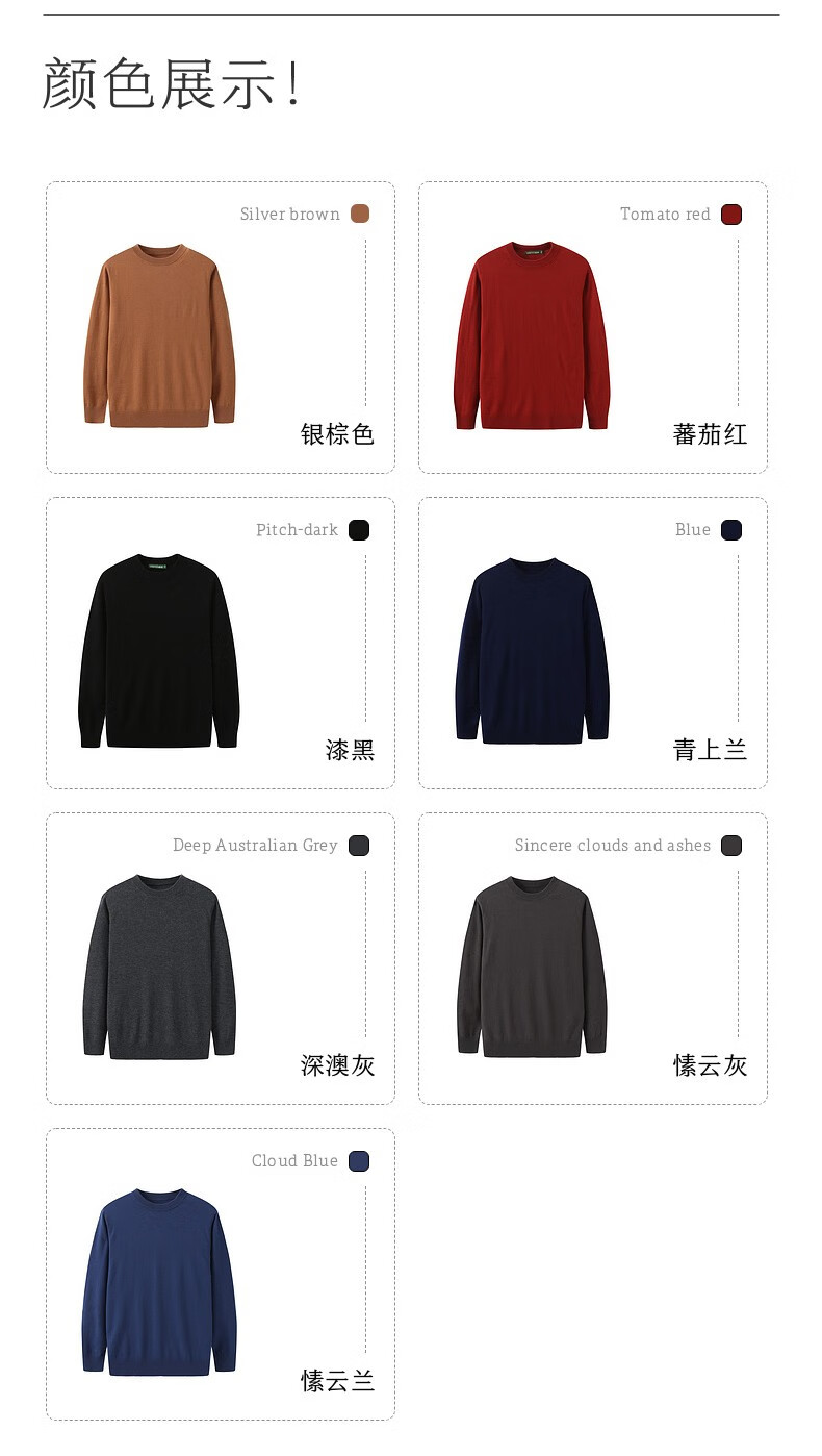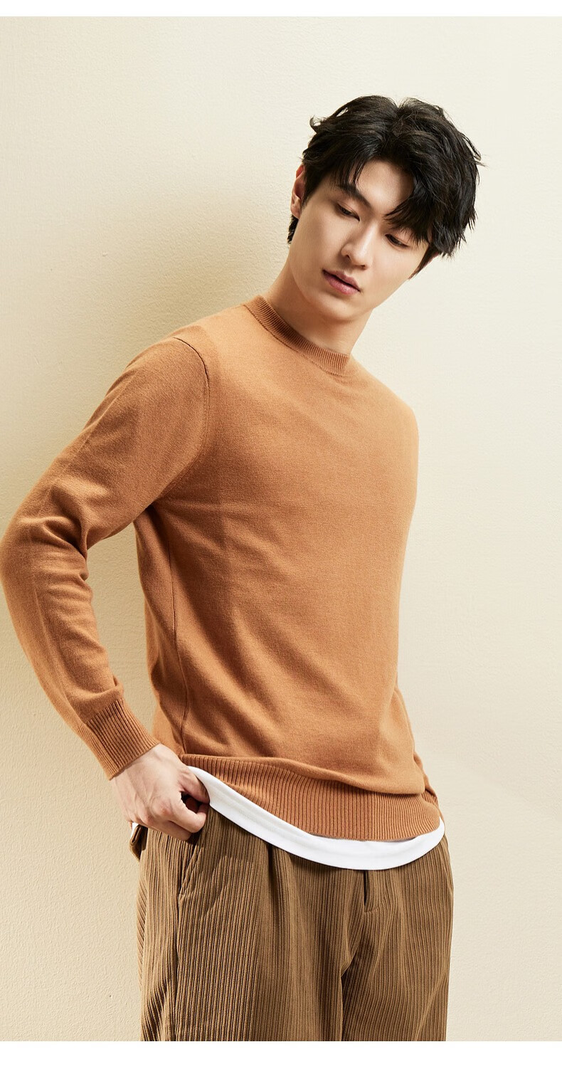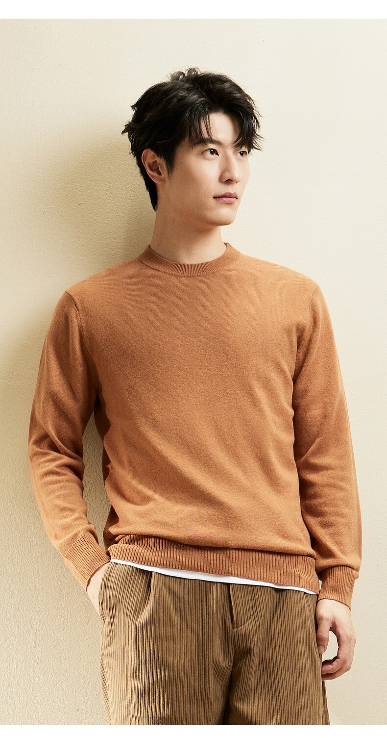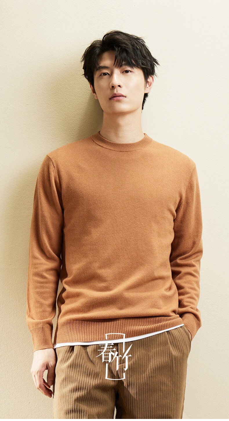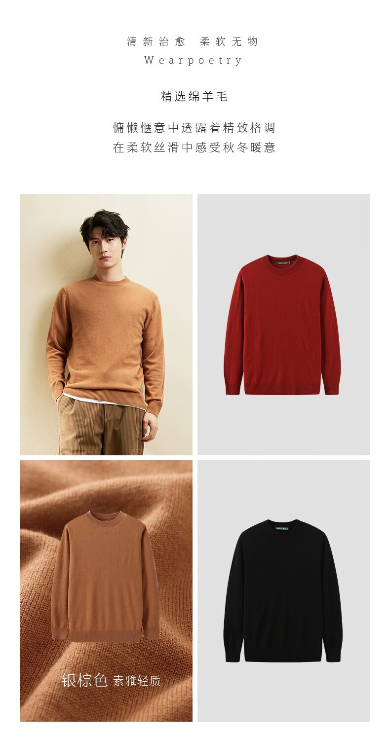 春竹【商场同款】100%纯羊毛毛衣基础百搭针织上衣打底衫套头羊毛衫男 圆-漆黑 XL