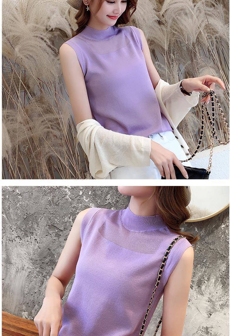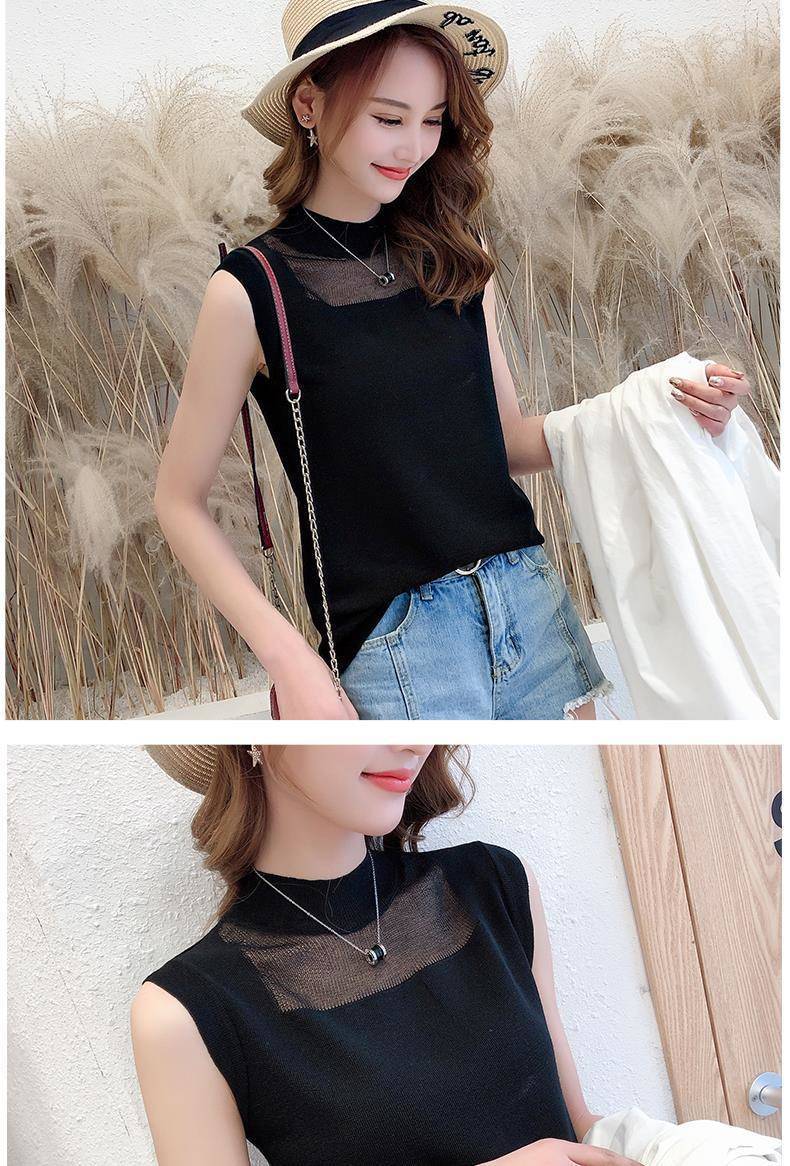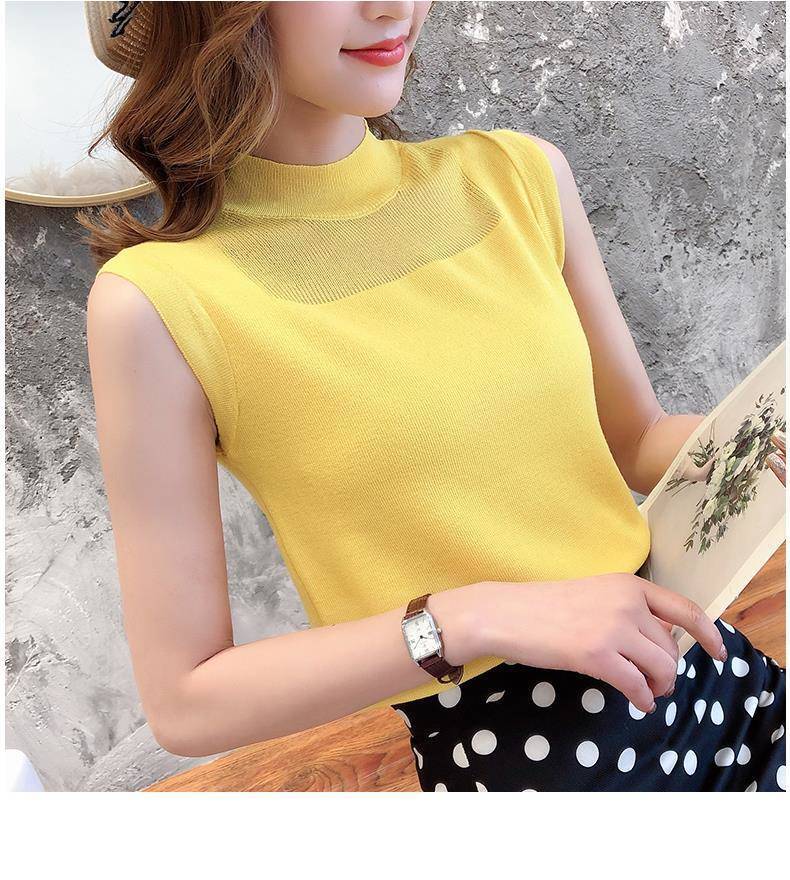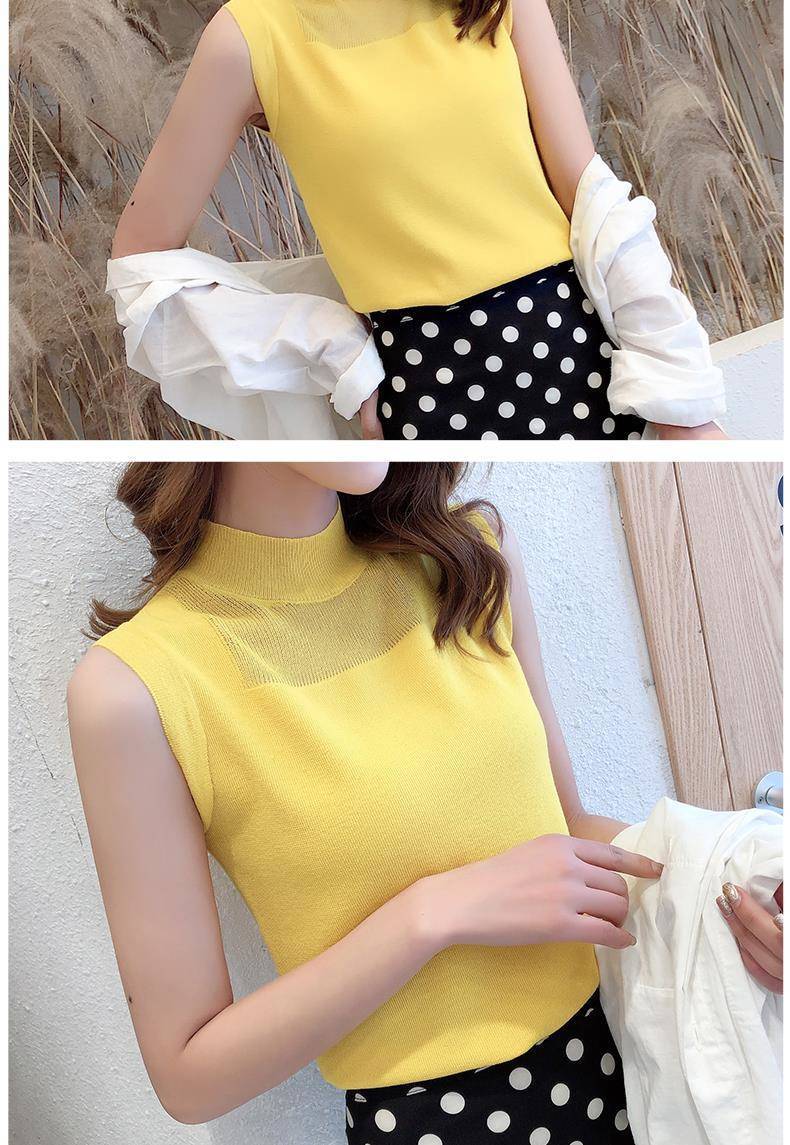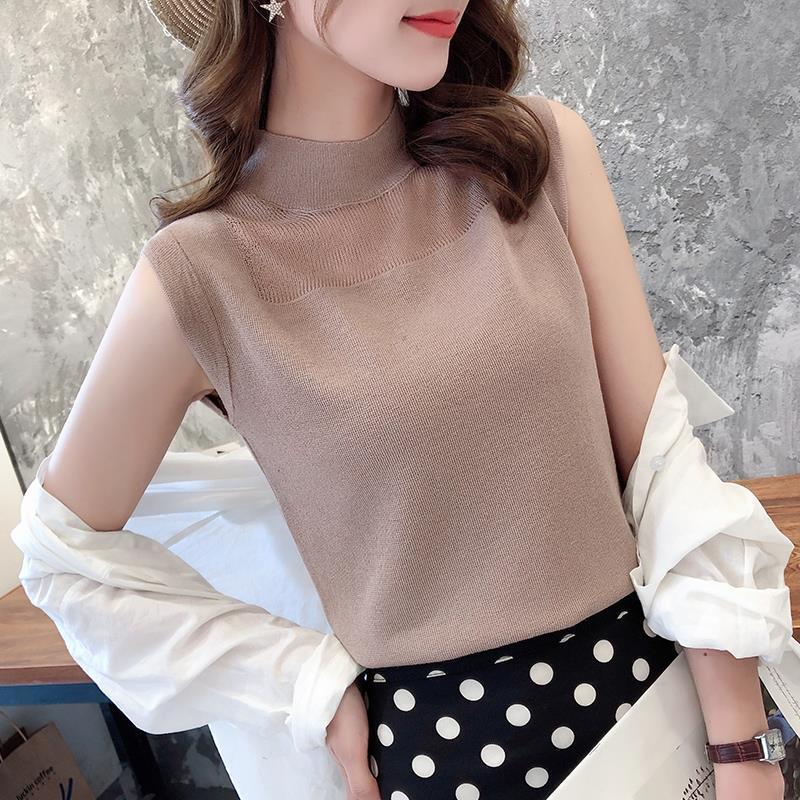 Ji Yafu Chaleco de fondo, suéter hueco superior sin mangas con chaleco de punto de moda, camisa de fondo delgado para mujer, color caqui marrón claro, talla única recomendada 80-128 Jin Jin equivale a 0,5 kg
