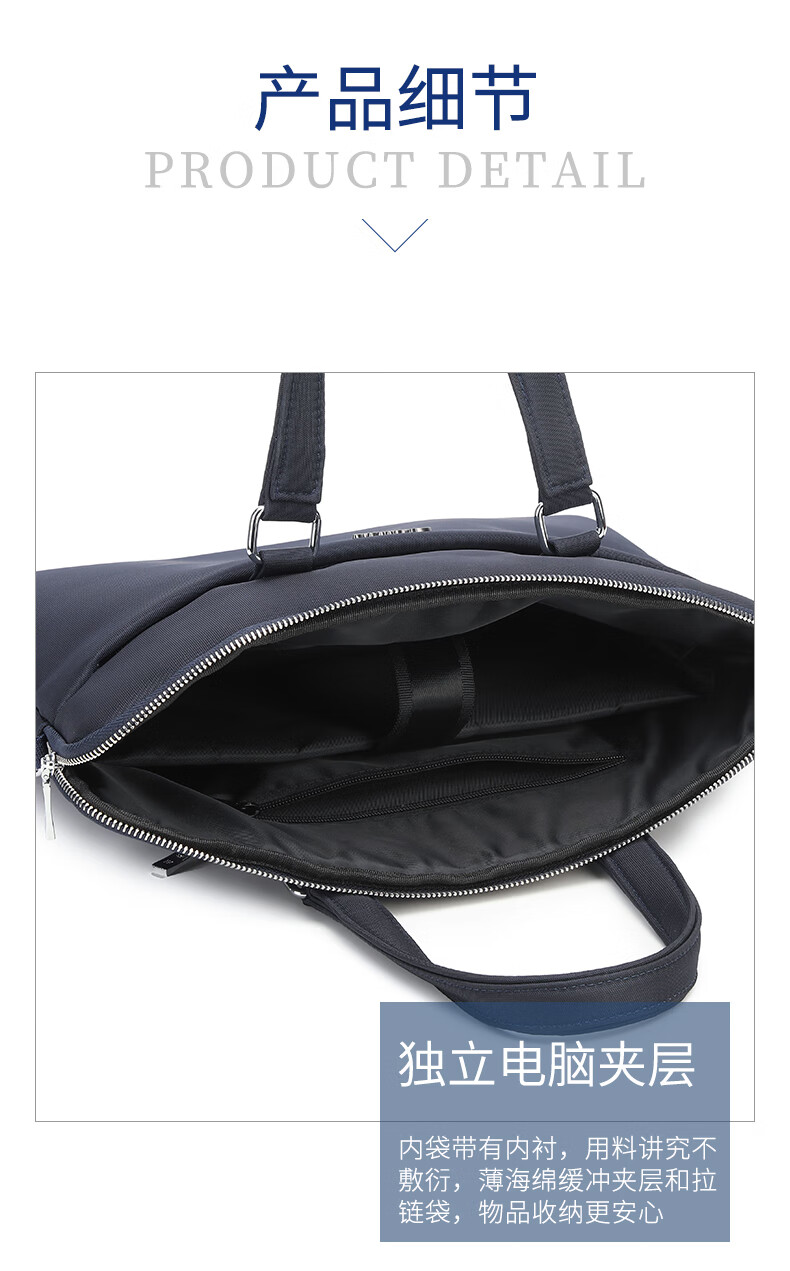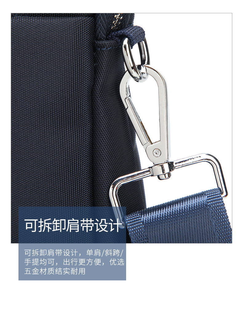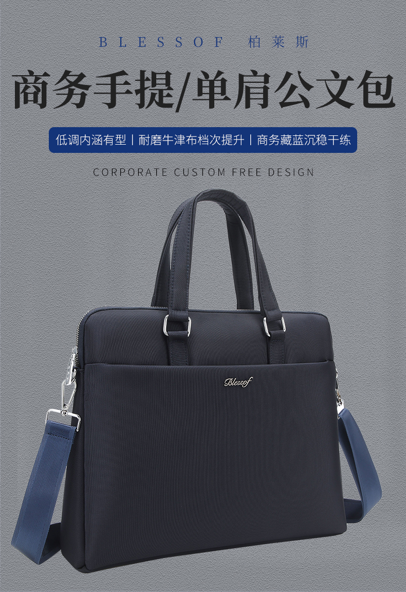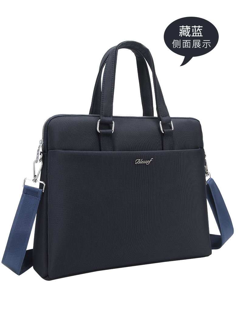 柏莱斯商务手提公文包单肩/斜挎包文件资料收纳男士B4事务包前后有袋单位学术会议包印字耐磨有型9226 藏蓝色丨独立电脑夹层丨可拆卸肩带