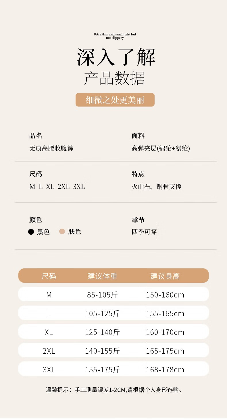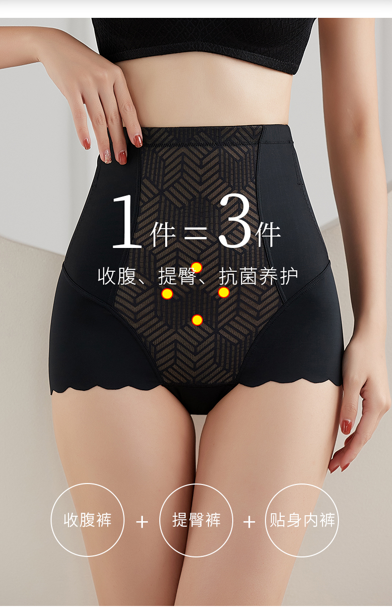 如钻高腰收腹内裤塑身裤舒适透气强力收腹提臀裤束腰内裤女翘臀塑形 肤色 XL 适合110-130斤