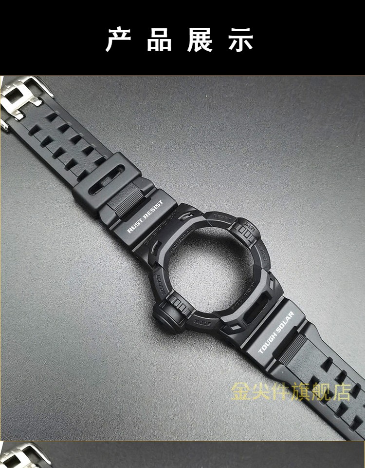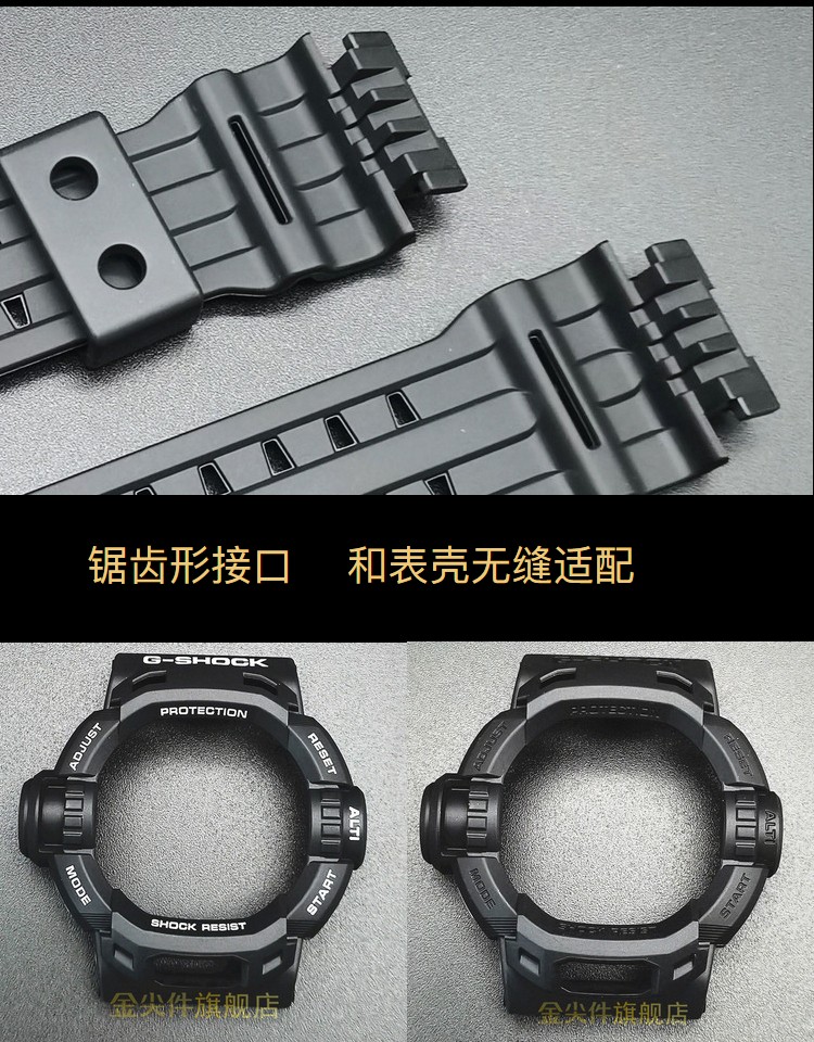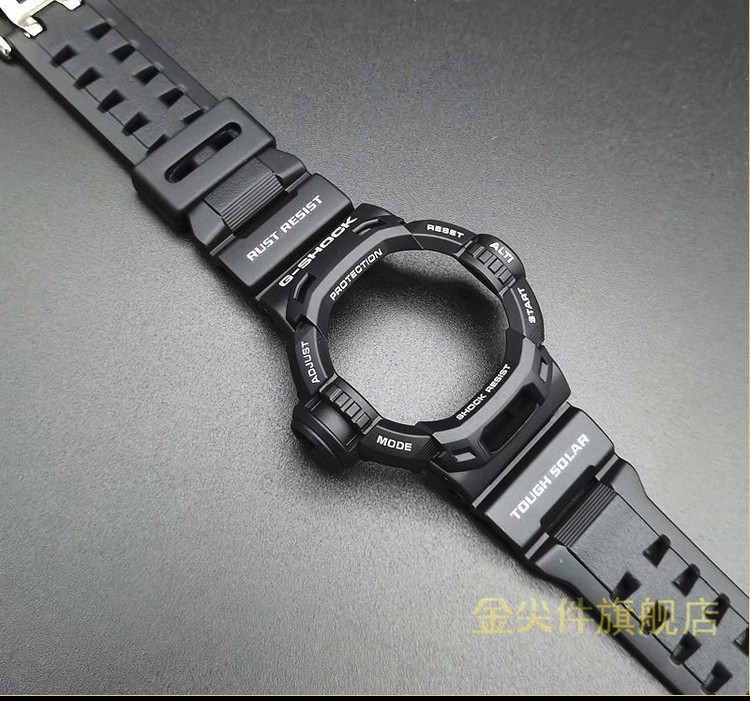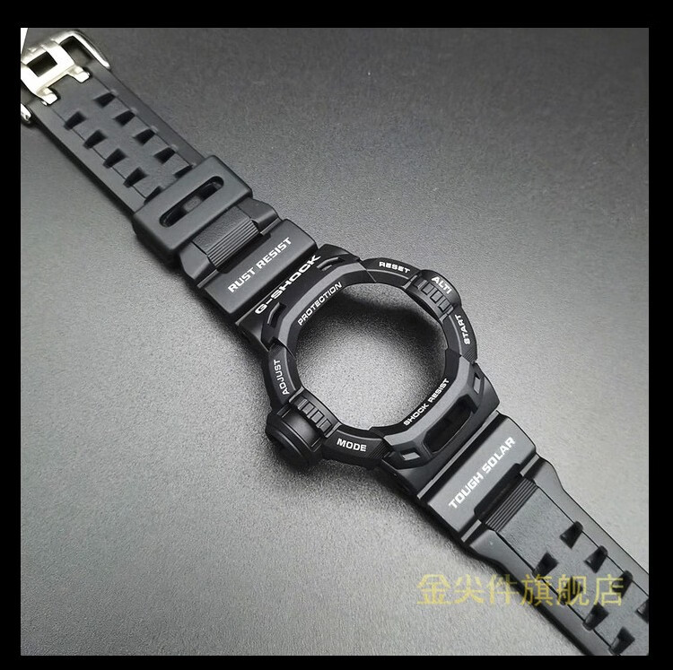 金尖件 适配卡西欧湾人原装表带G-9200 GW-9110/9101/9200/9230/9125 黑色哑面白字一套