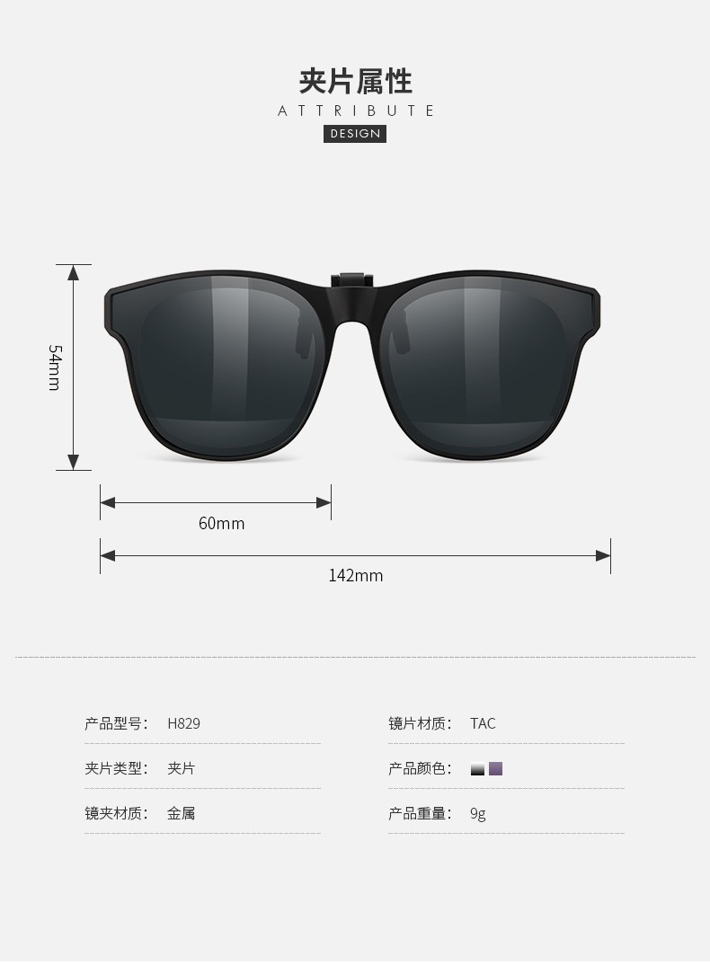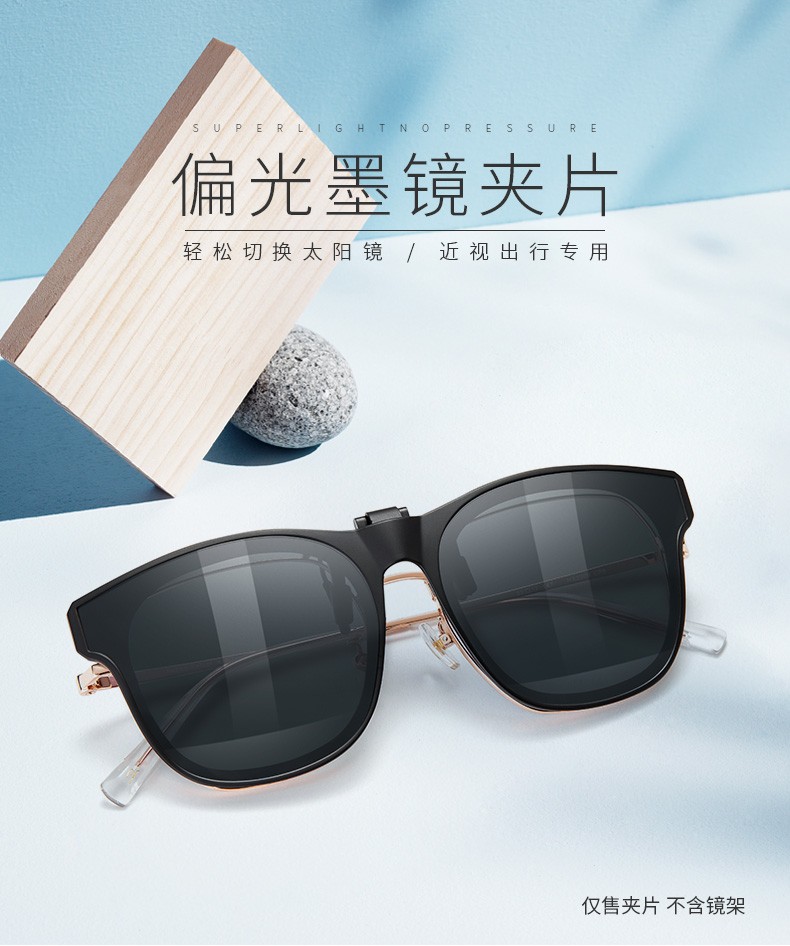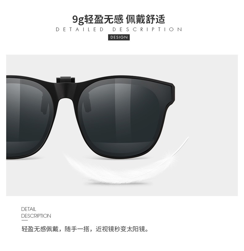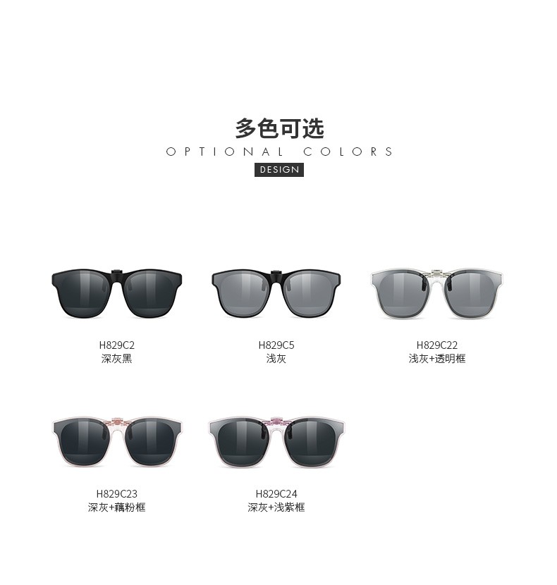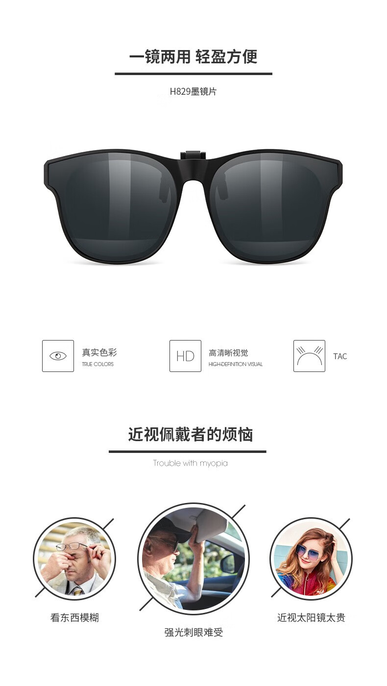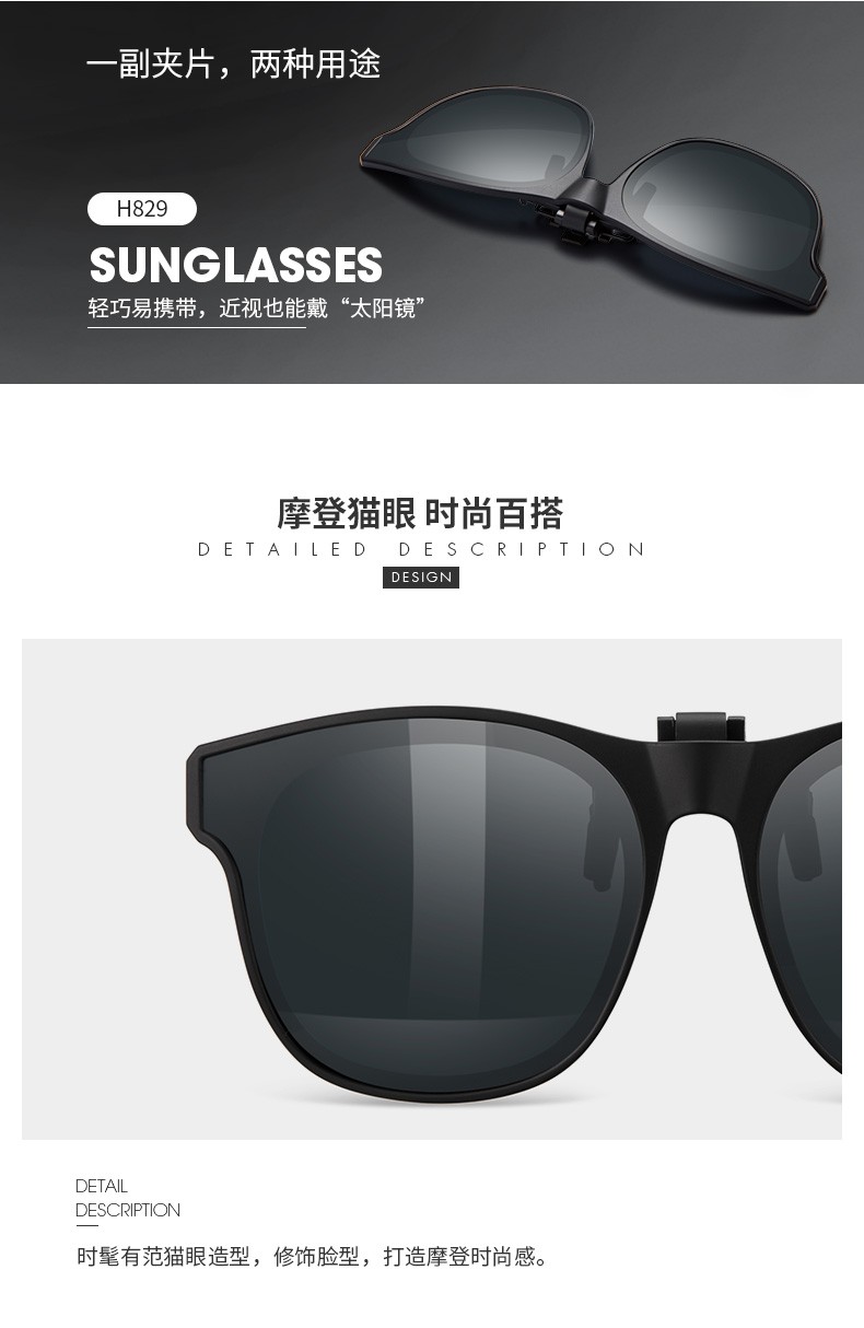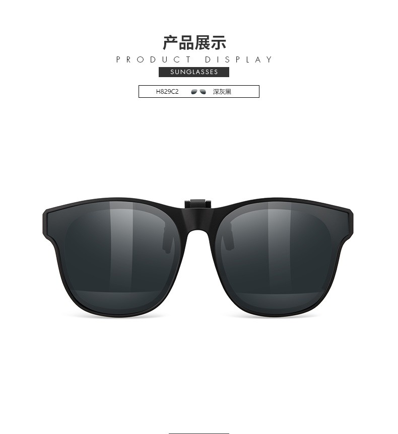 Helen Keller Sonnenbrille Clip-on Herren polarisiert Modetrend Sonnenbrille Hängebrille Clip-on für Damen Autofahren hochklappbar HP829 Dunkelgrau Schwarz