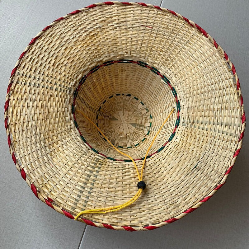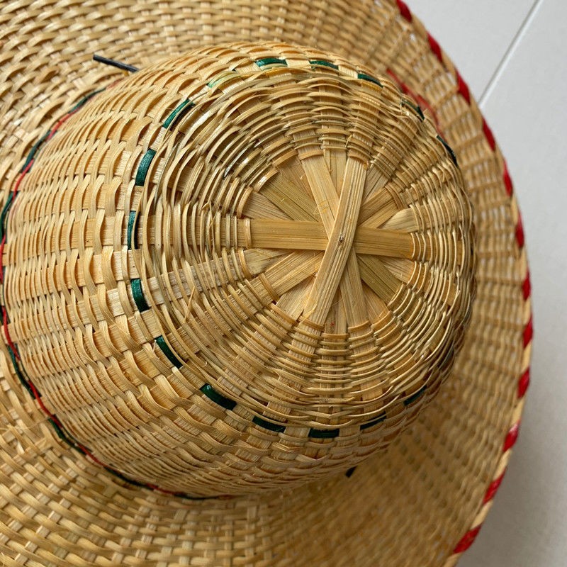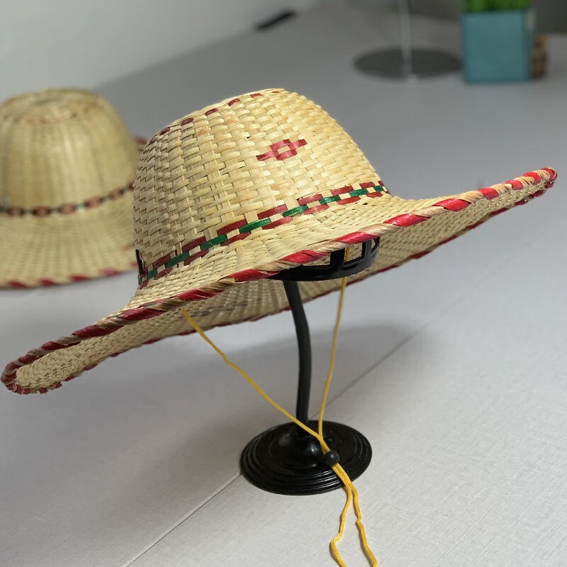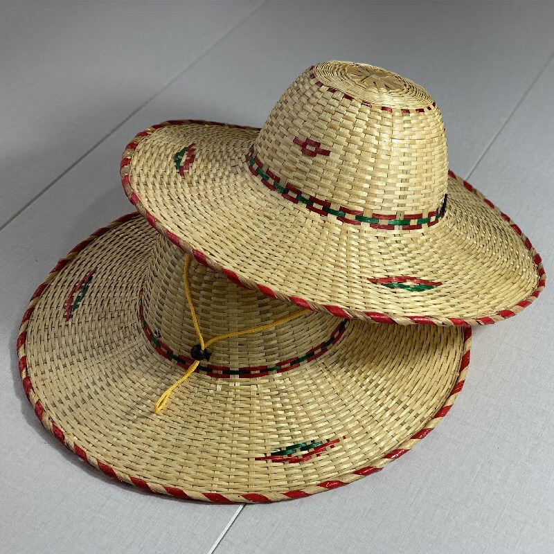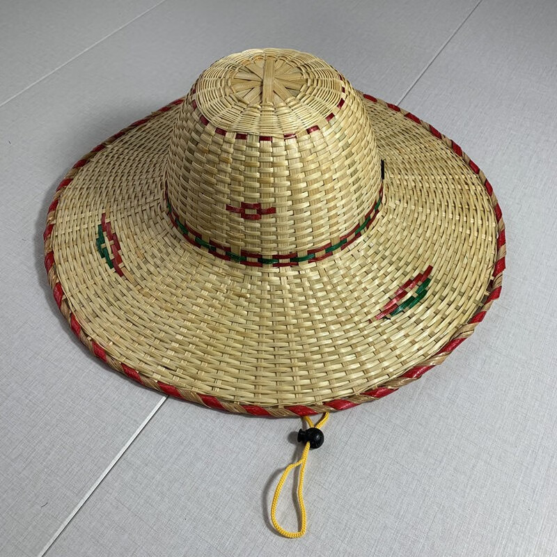 途尊(kingtrip) 手工竹编越南帽舞蹈表演道具收藏装饰斗笠帽男士户外大檐遮阳帽 (绿)红边随机发一【防风绳】 直径42CM 左右