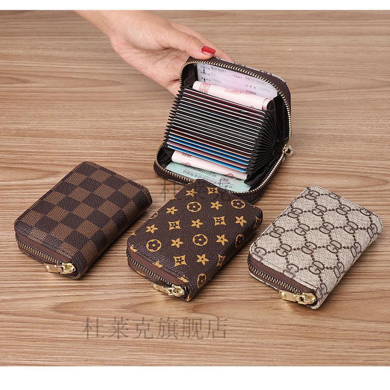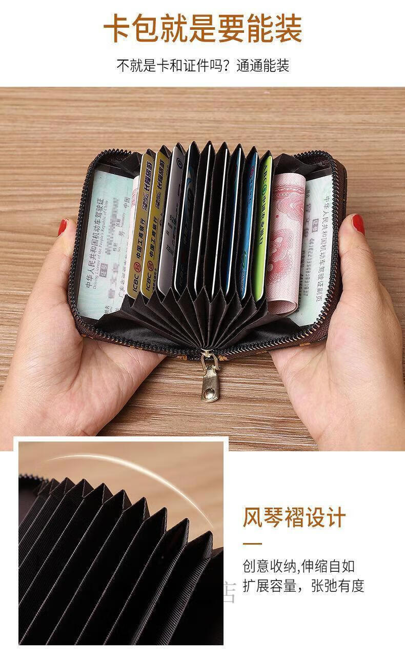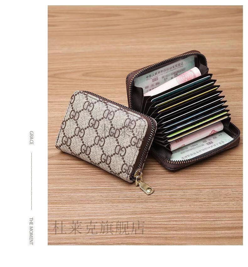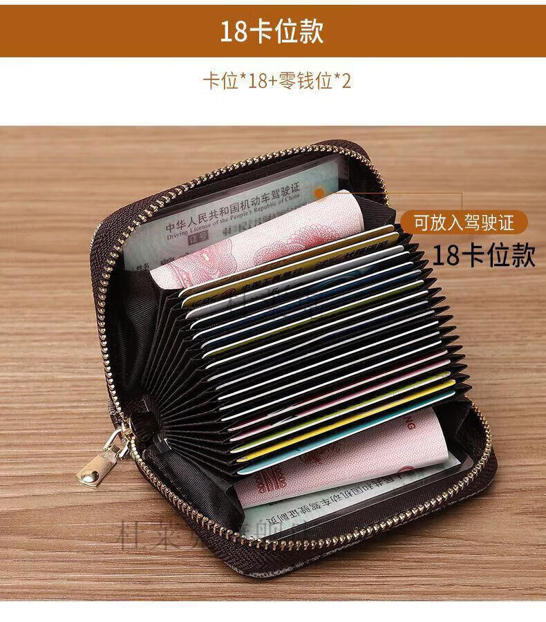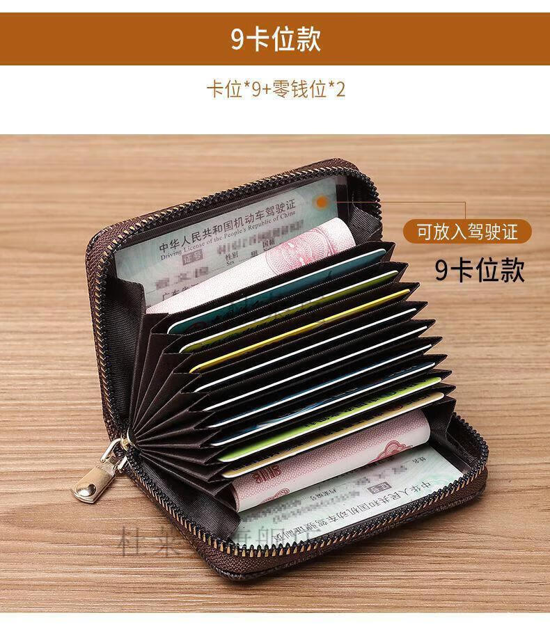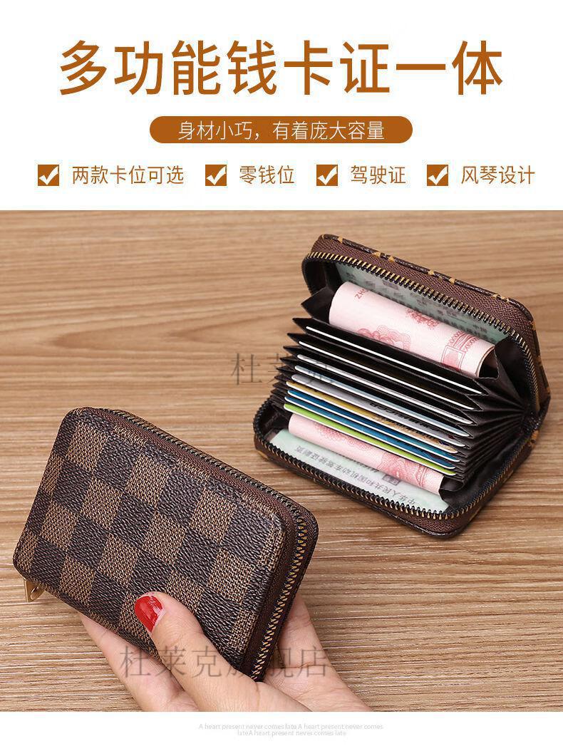 Nuanxun card holder, women's ID holder, anti-degaussing Chinese Valentine's Day card holder, men's multifunctional driver's license coin purse, trendy all-in-one bag (9 card slots + 2 change/document slots) coffee grid