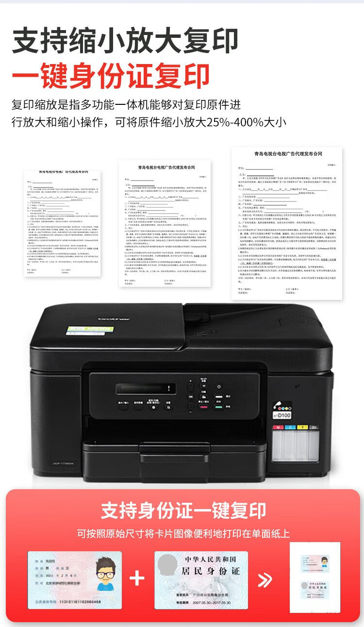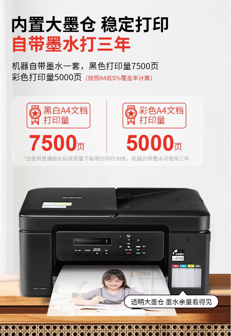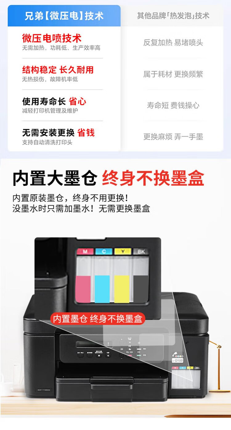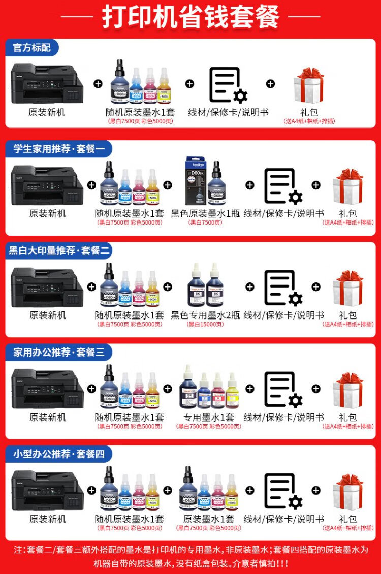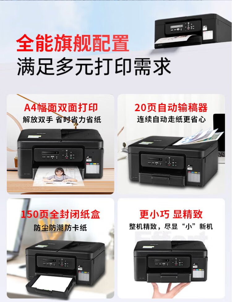 兄弟(brother)DCP-T735DW彩色打印机喷墨家用一体机自动双面无线远程办公室连供作业照片436W T735DW升级同款 【咨询优惠多】 官方标配:主机+随机原装墨水1套【4瓶墨水】
