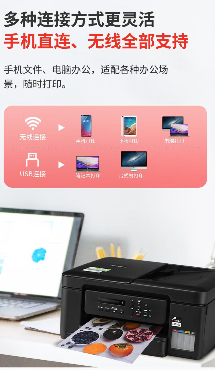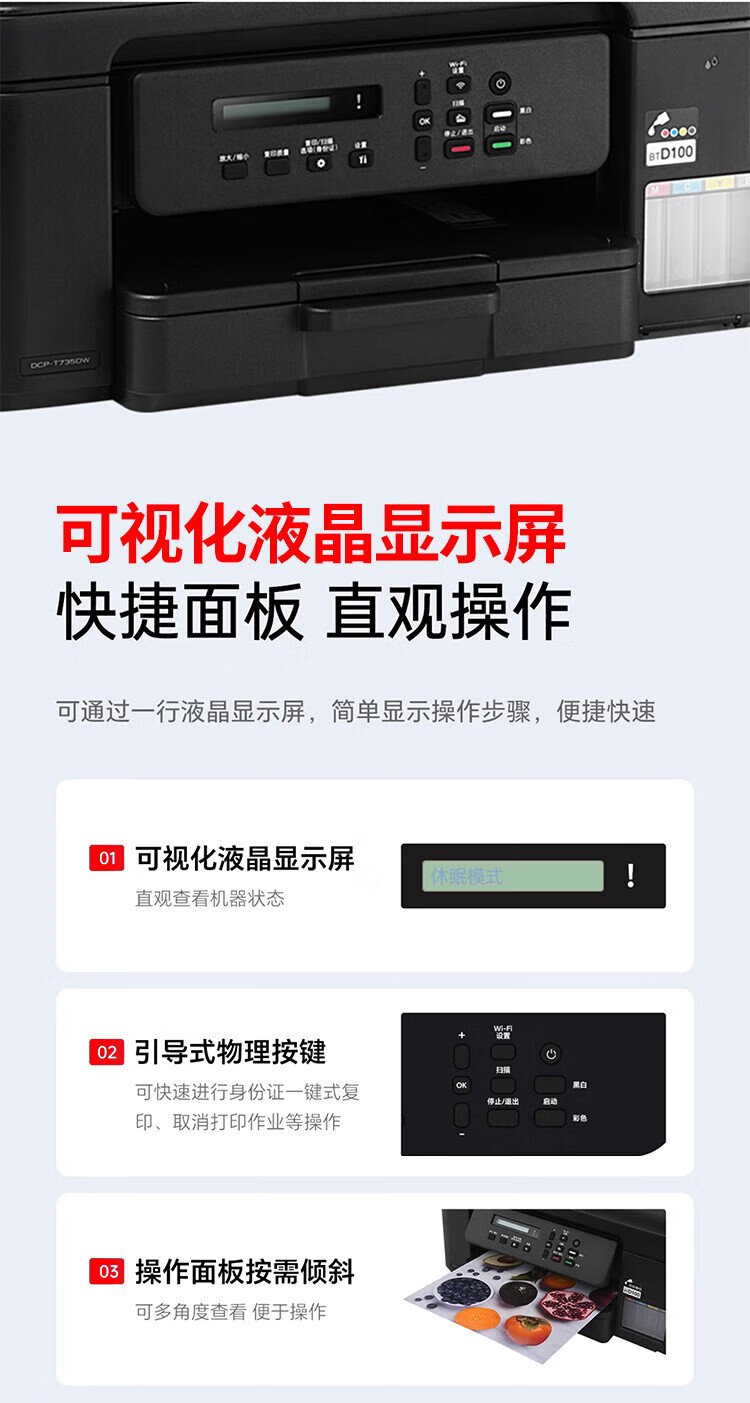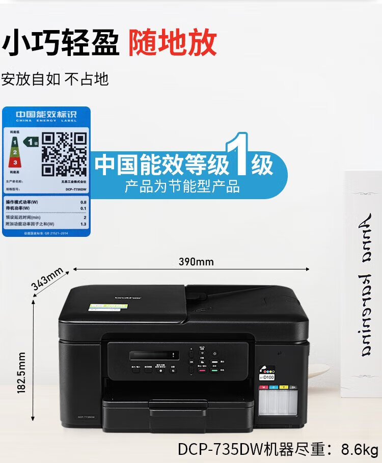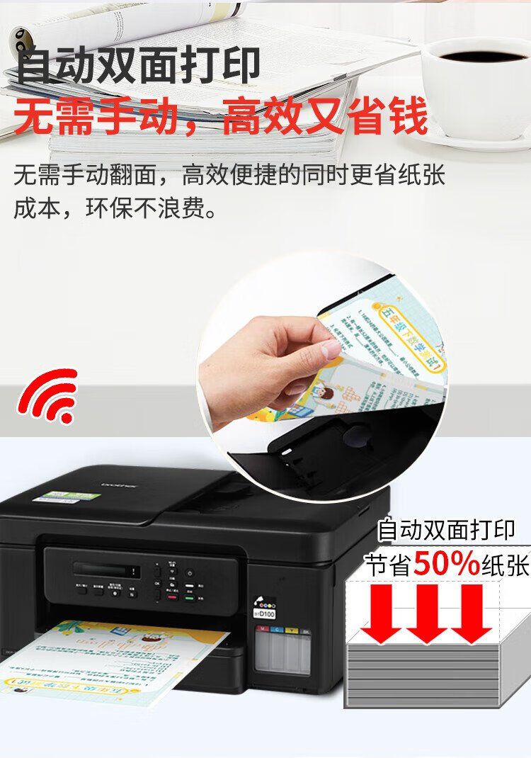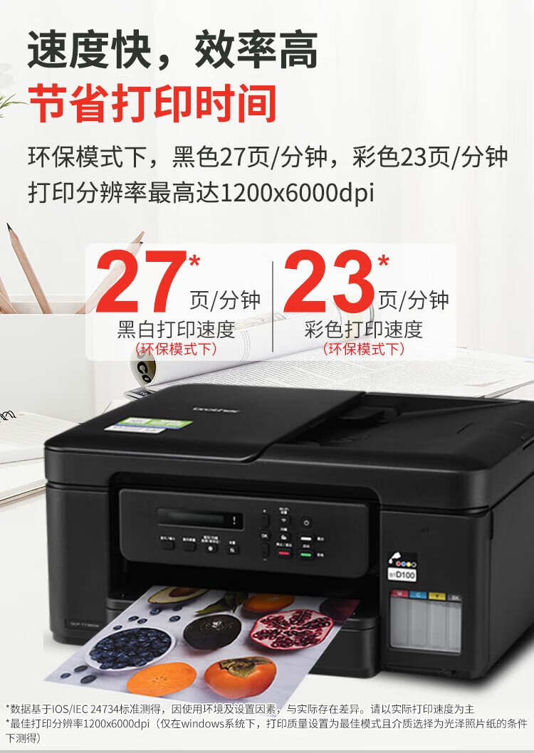 兄弟(brother)DCP-T735DW彩色打印机喷墨家用一体机自动双面无线远程办公室连供作业照片436W T735DW升级同款 【咨询优惠多】 官方标配:主机+随机原装墨水1套【4瓶墨水】