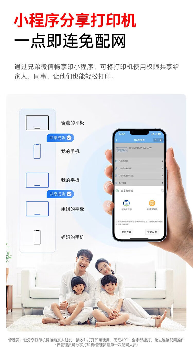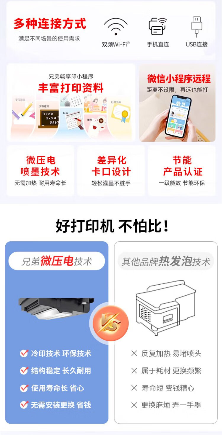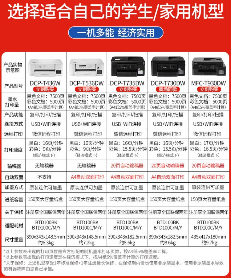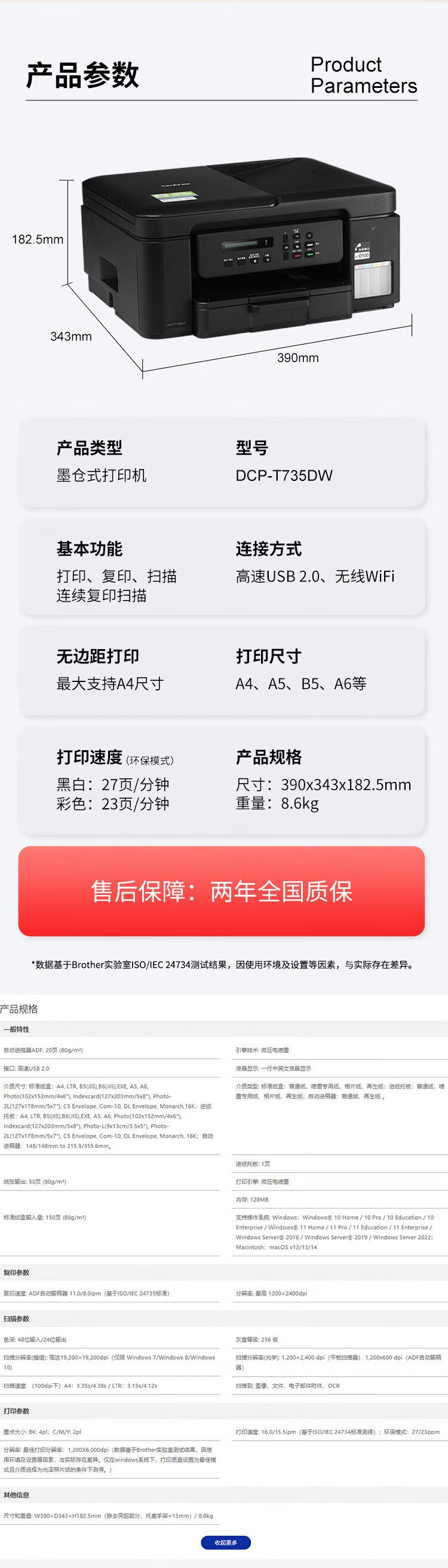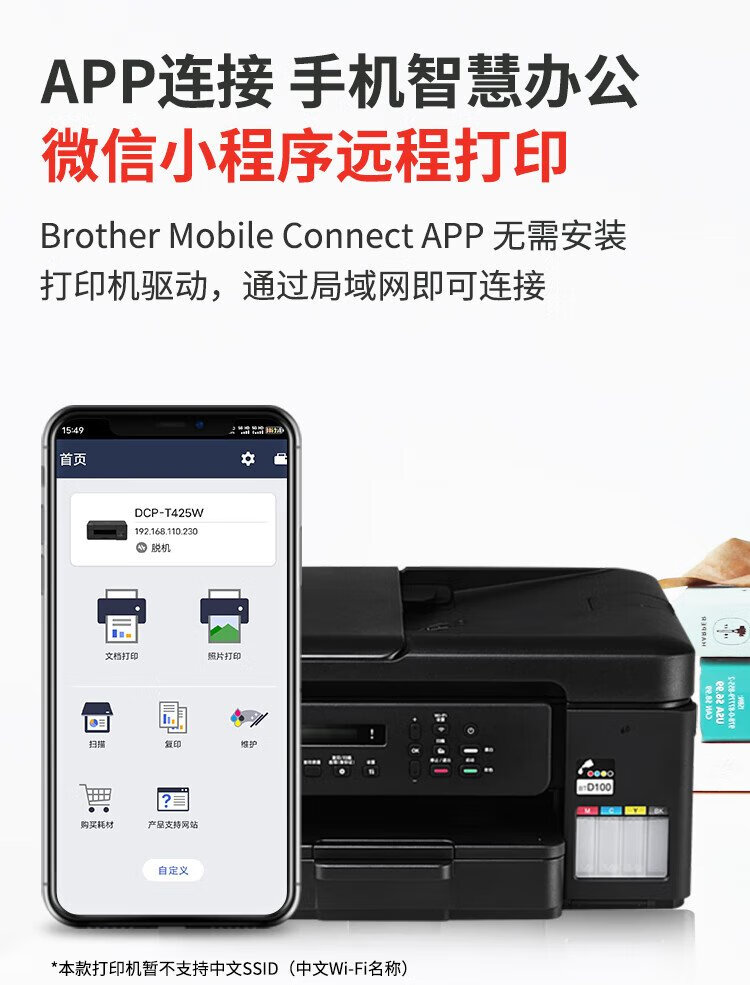 兄弟(brother)DCP-T735DW彩色打印机喷墨家用一体机自动双面无线远程办公室连供作业照片436W T735DW升级同款 【咨询优惠多】 官方标配:主机+随机原装墨水1套【4瓶墨水】