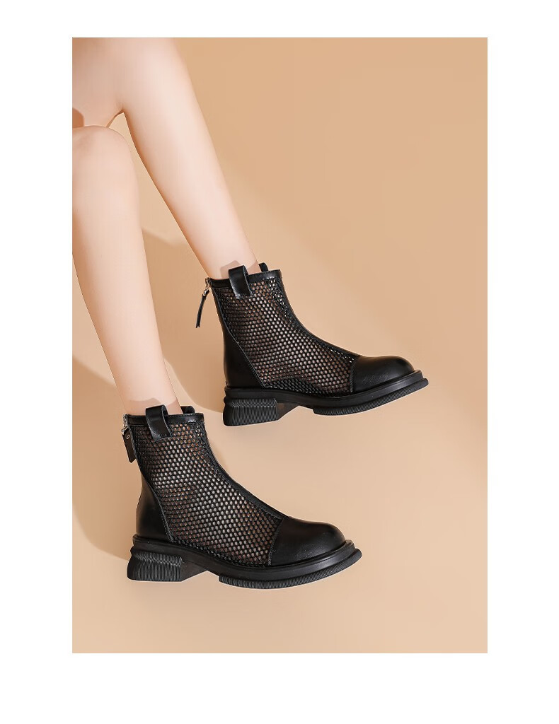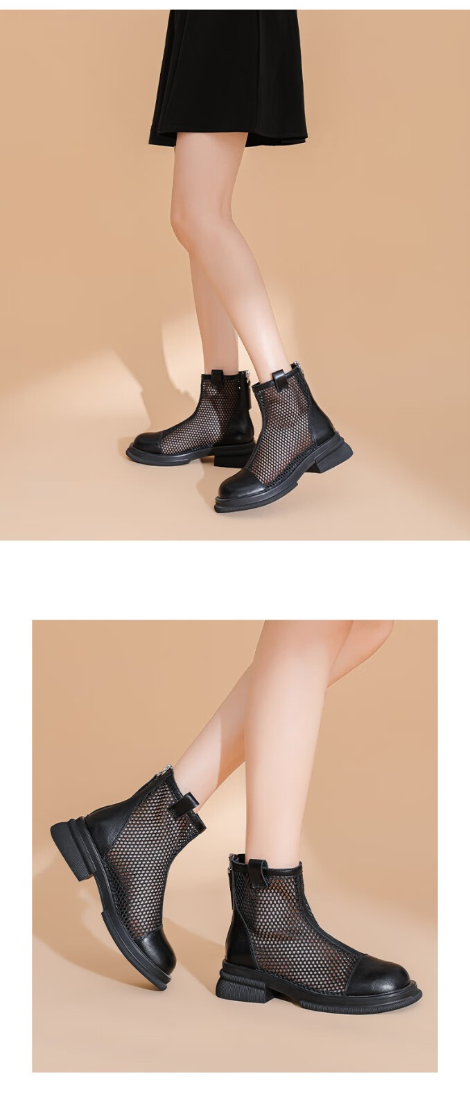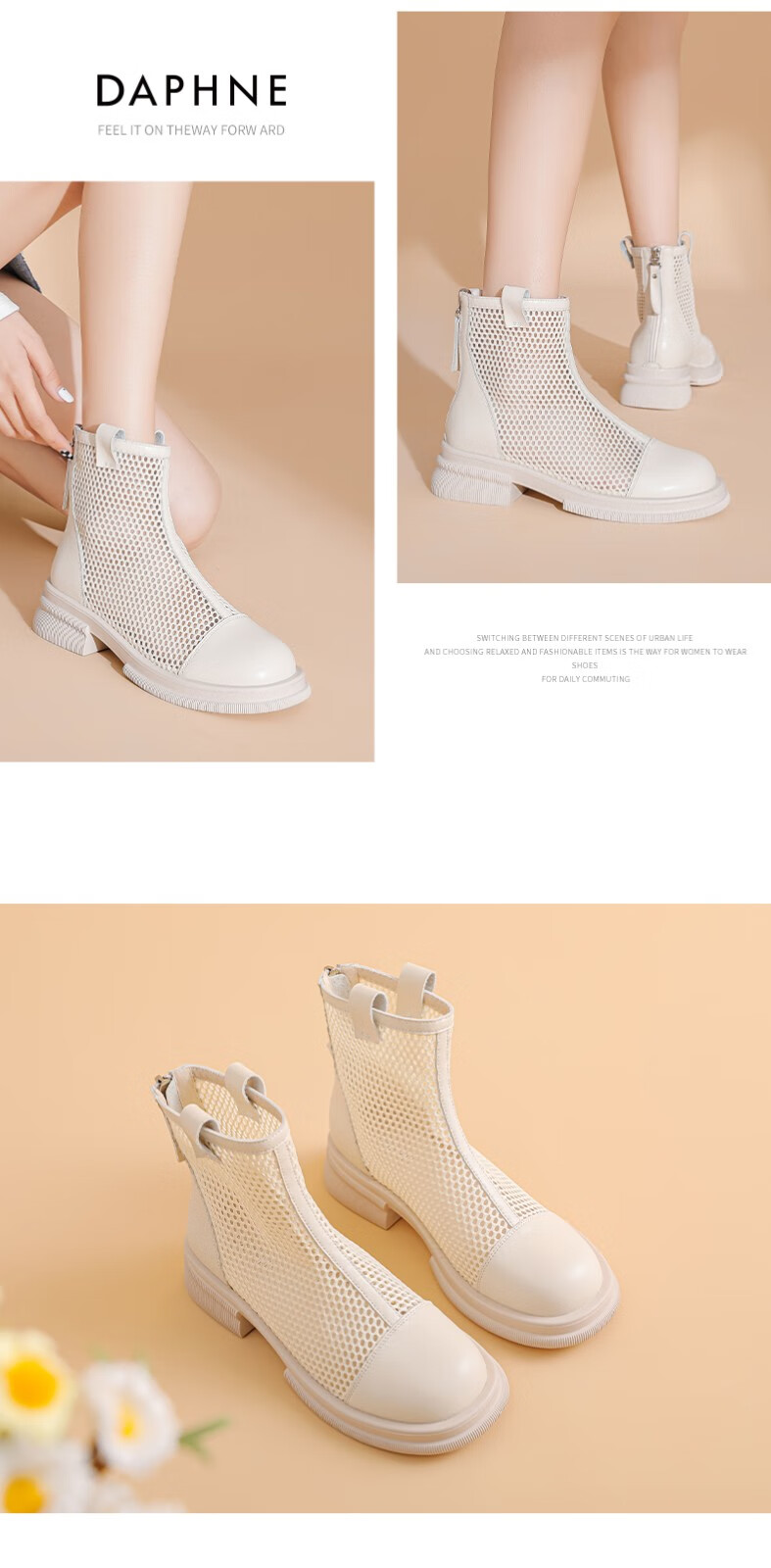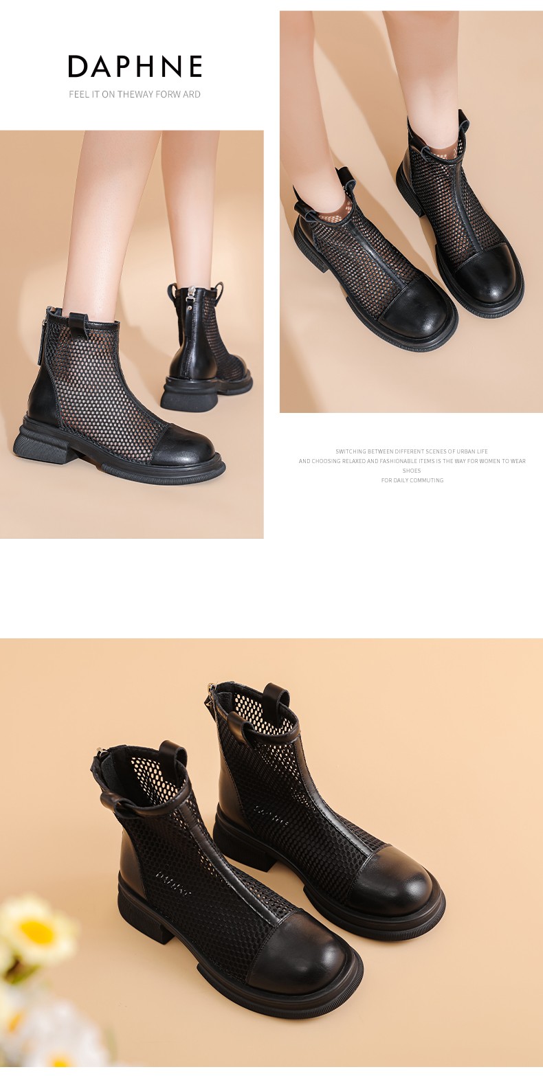 Daphne official Martin boots women's shoes summer thin short-tube British style cool boots women's breathable mesh boots women's hollow mesh sandals black-mesh style 35