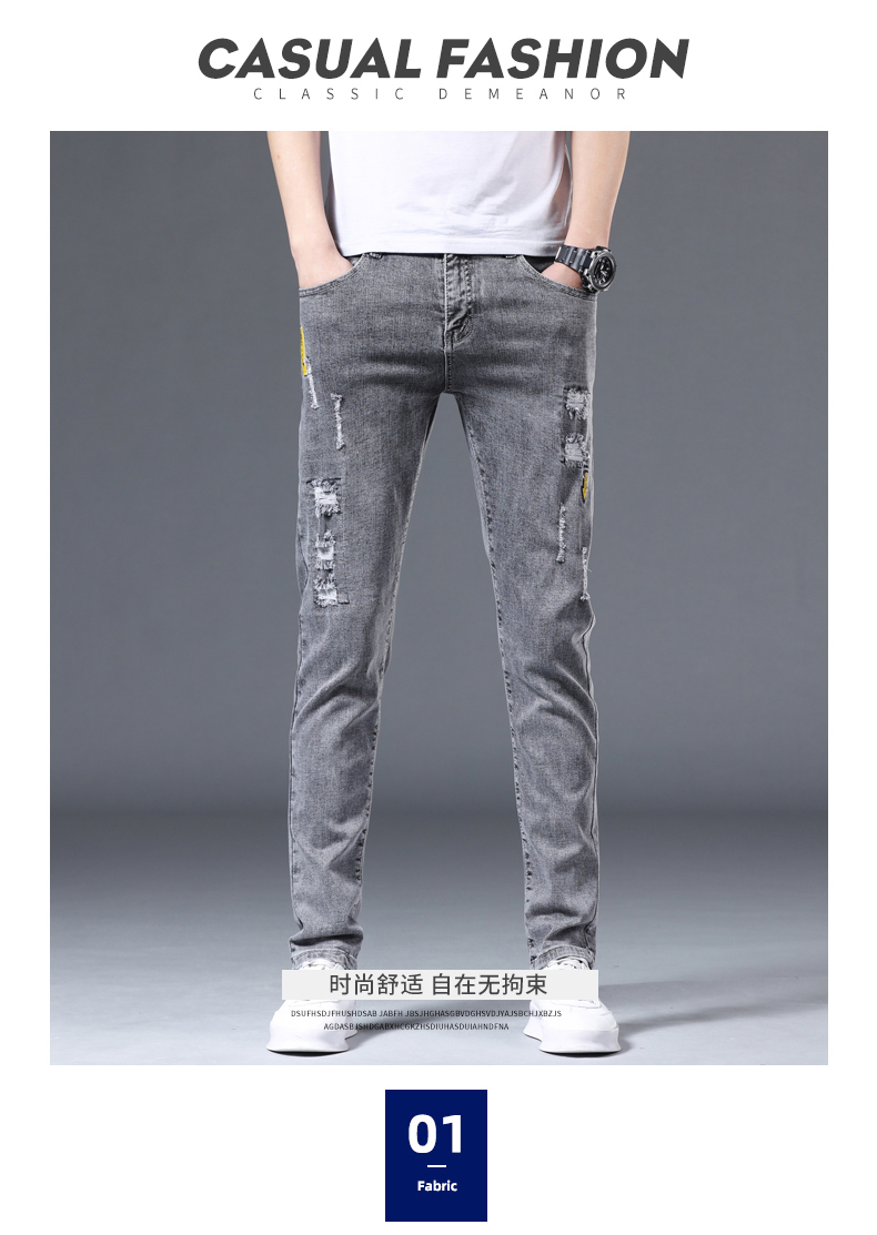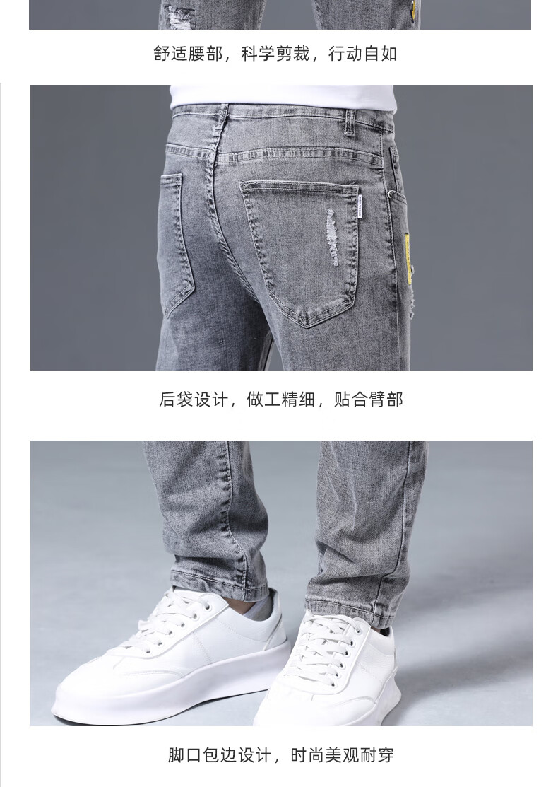 JEEP SPIRIT stretch jeans men's trendy spring and summer slim straight pants 2025 new casual versatile slim long pants men 6636 gray 28