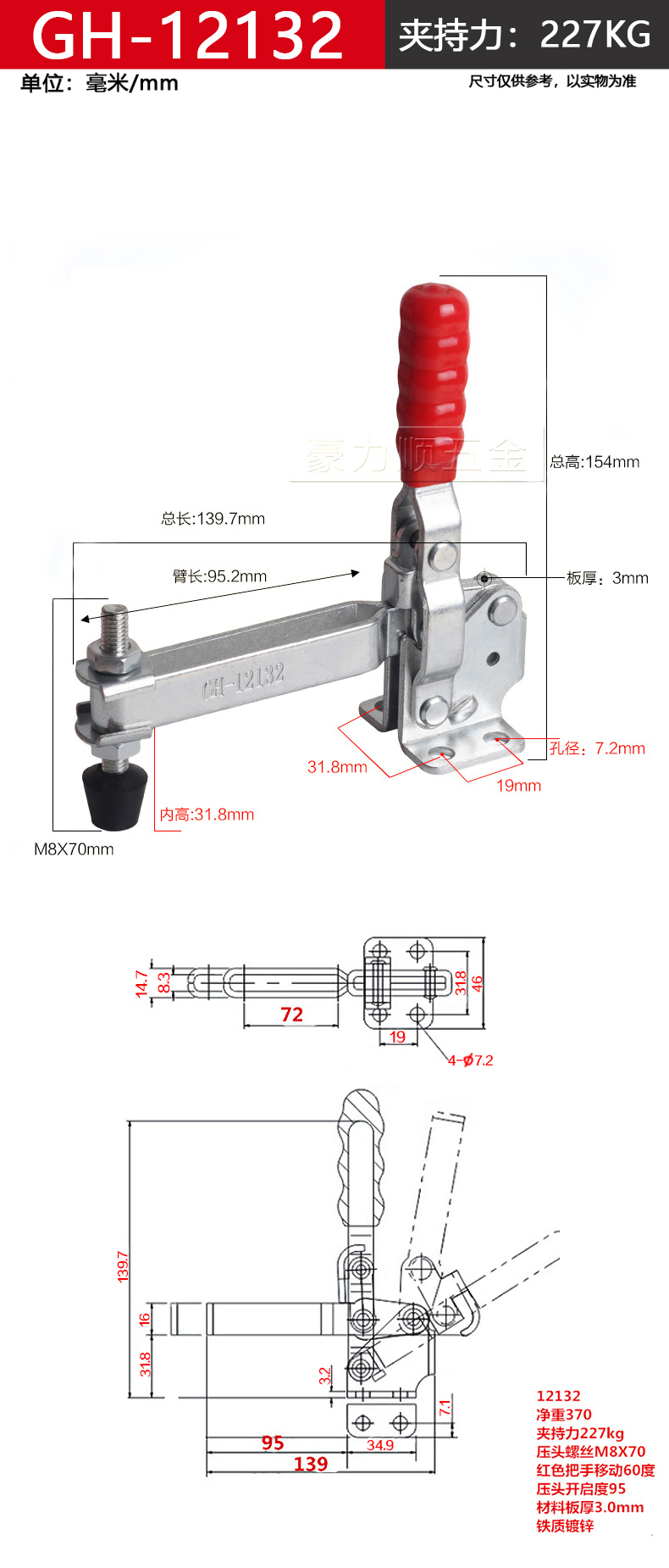 OZF Hardware Abrazadera rápida/abrazadera/abrazadera de pinza abrazadera de trabajo Vertical GH-12130 12132 GH-12131 (tipo T)