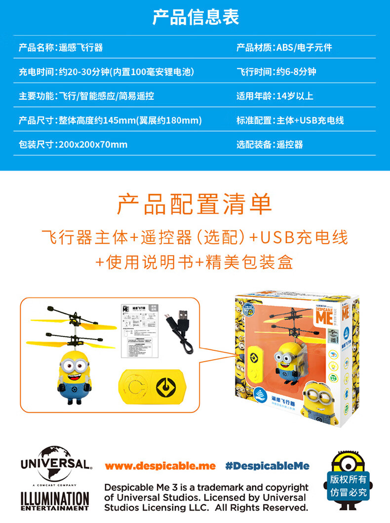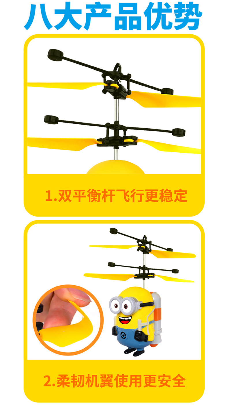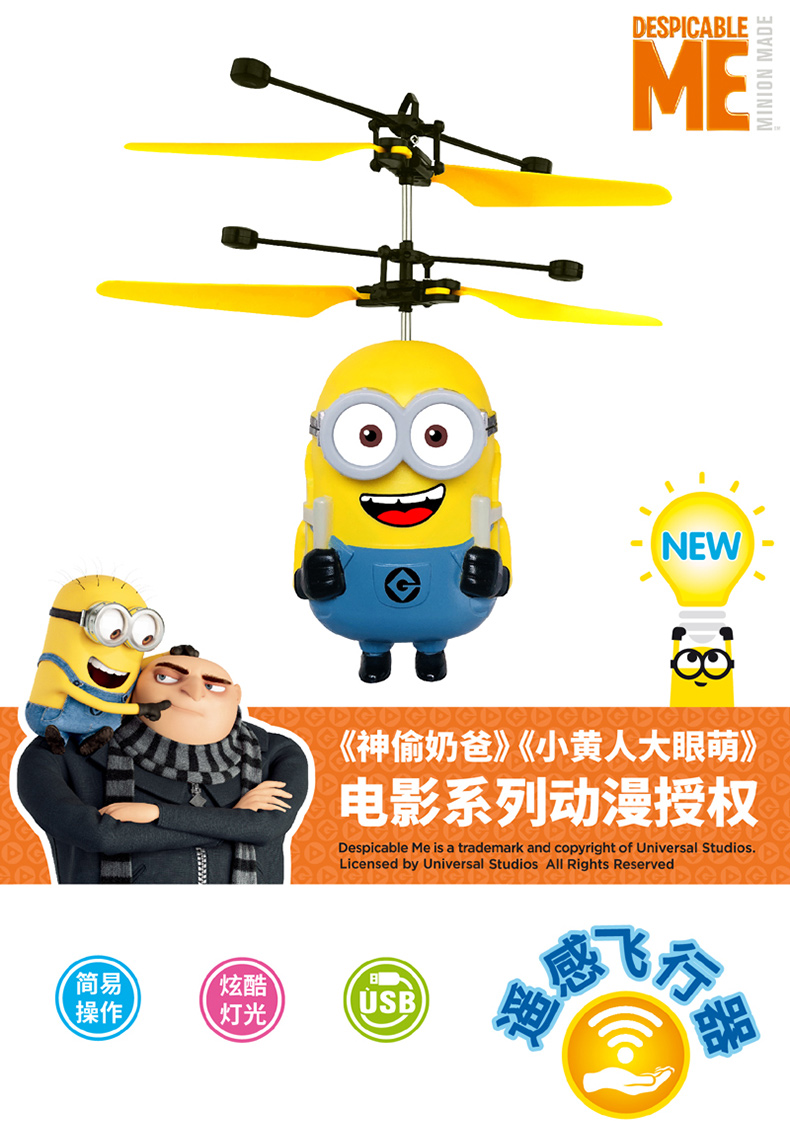 神偷奶爸小黄人遥控飞机玩具飞行器无人机感应迷你直升机耐摔悬浮生日礼物 遥控版