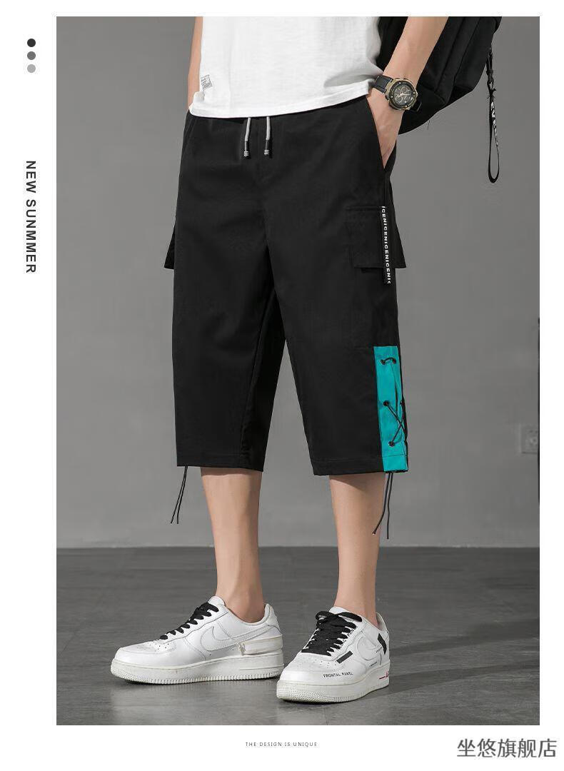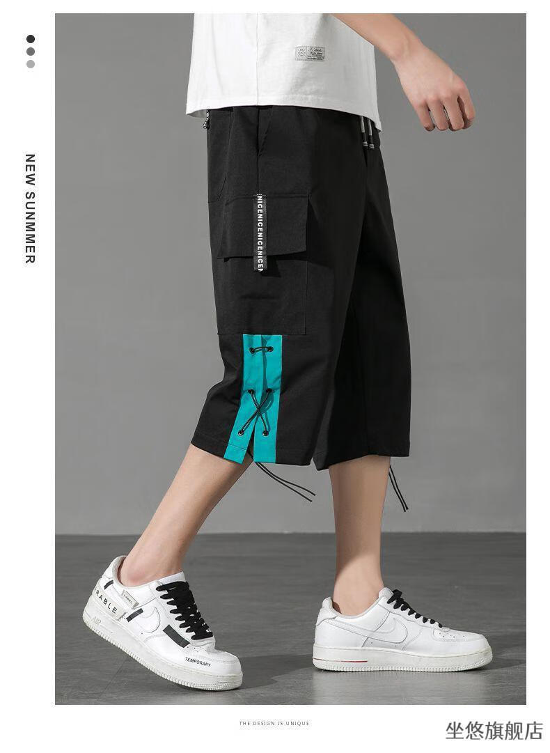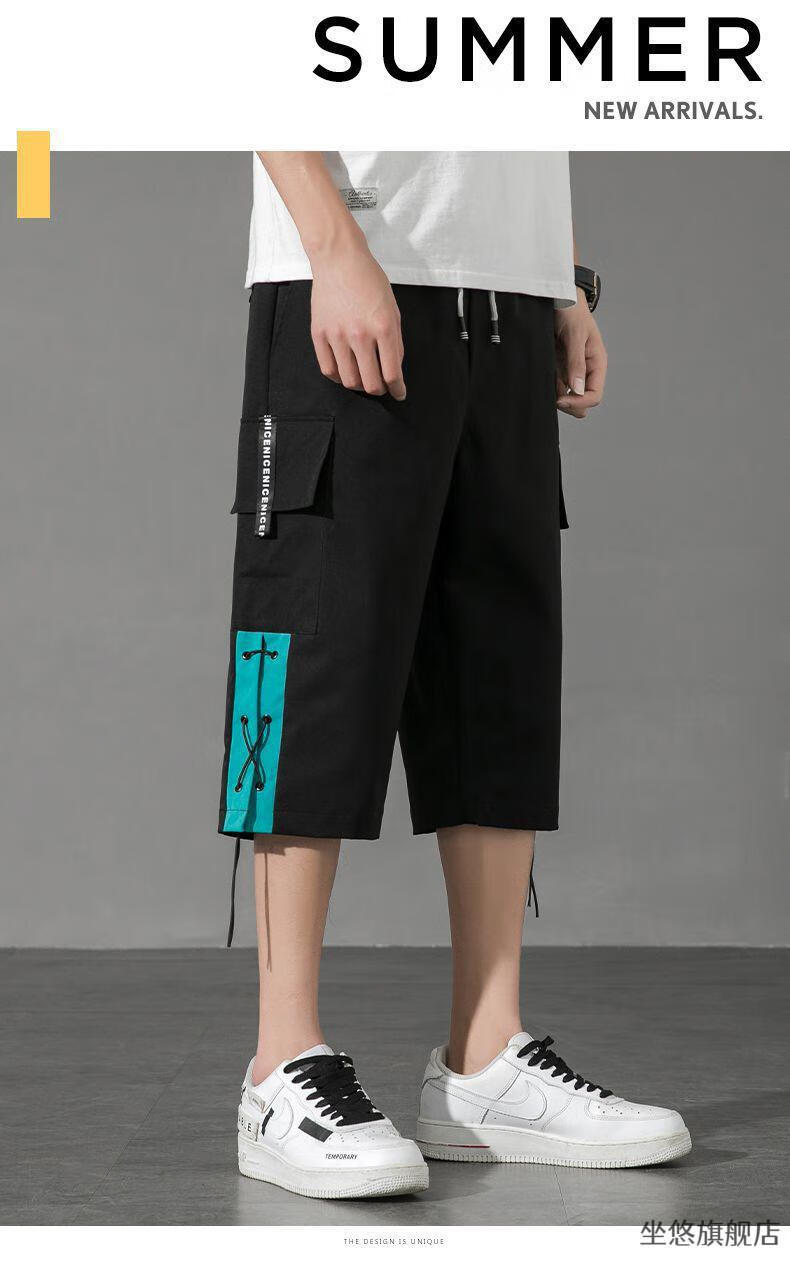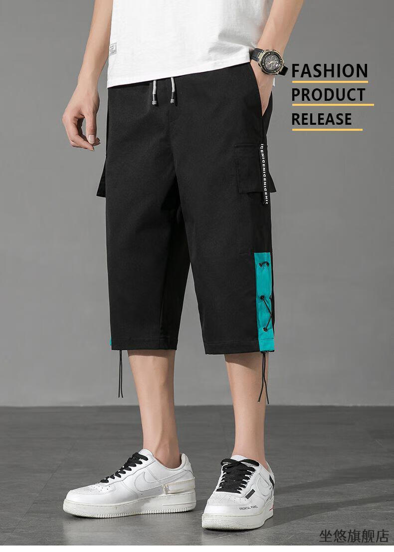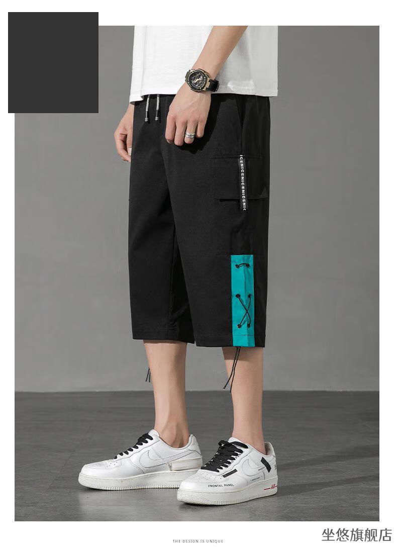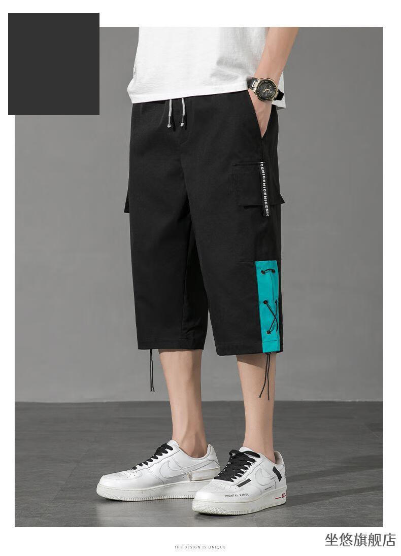 坐悠短裤男夏季十几岁初中高中生大学生穿薄款七分中男孩运动青少年胖 JM-9230黑色【品质版】 M
