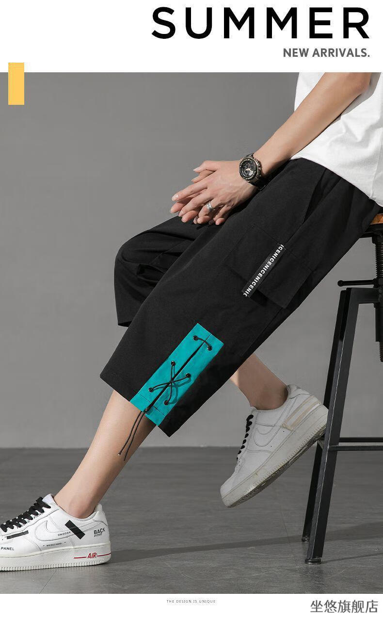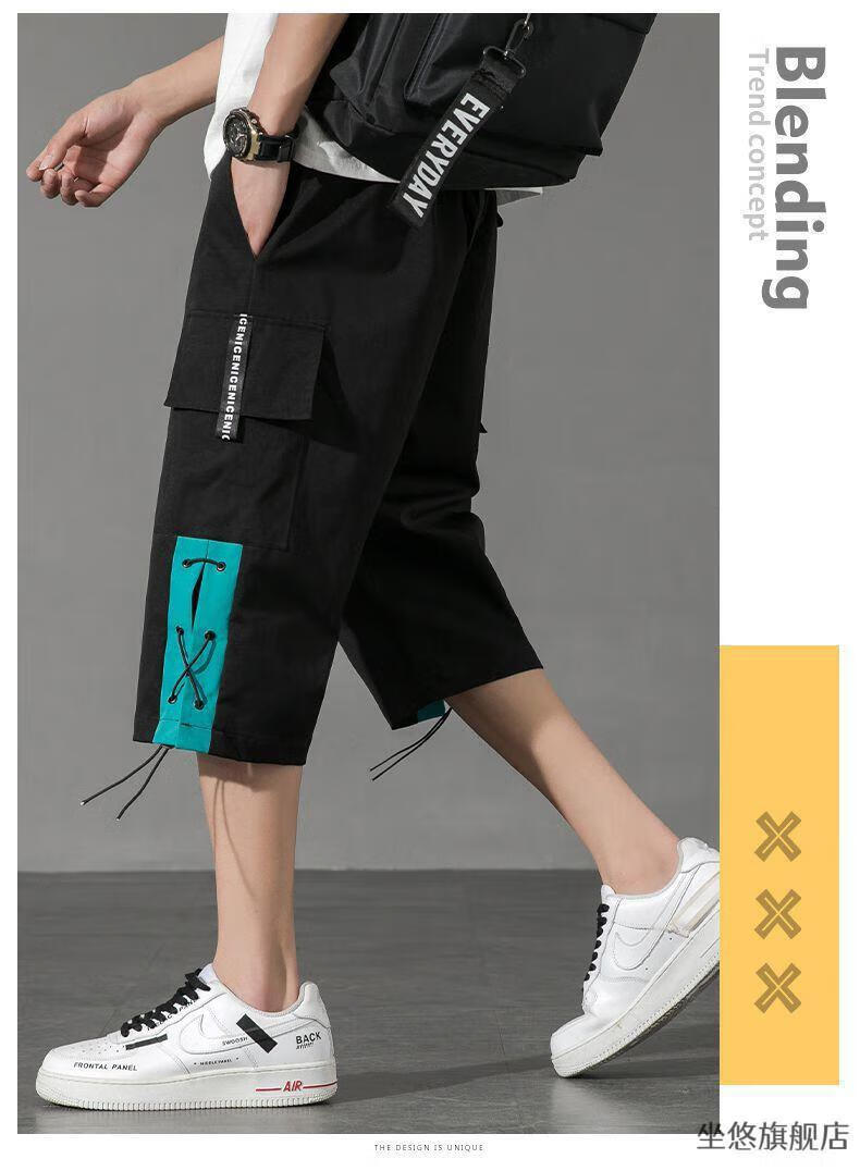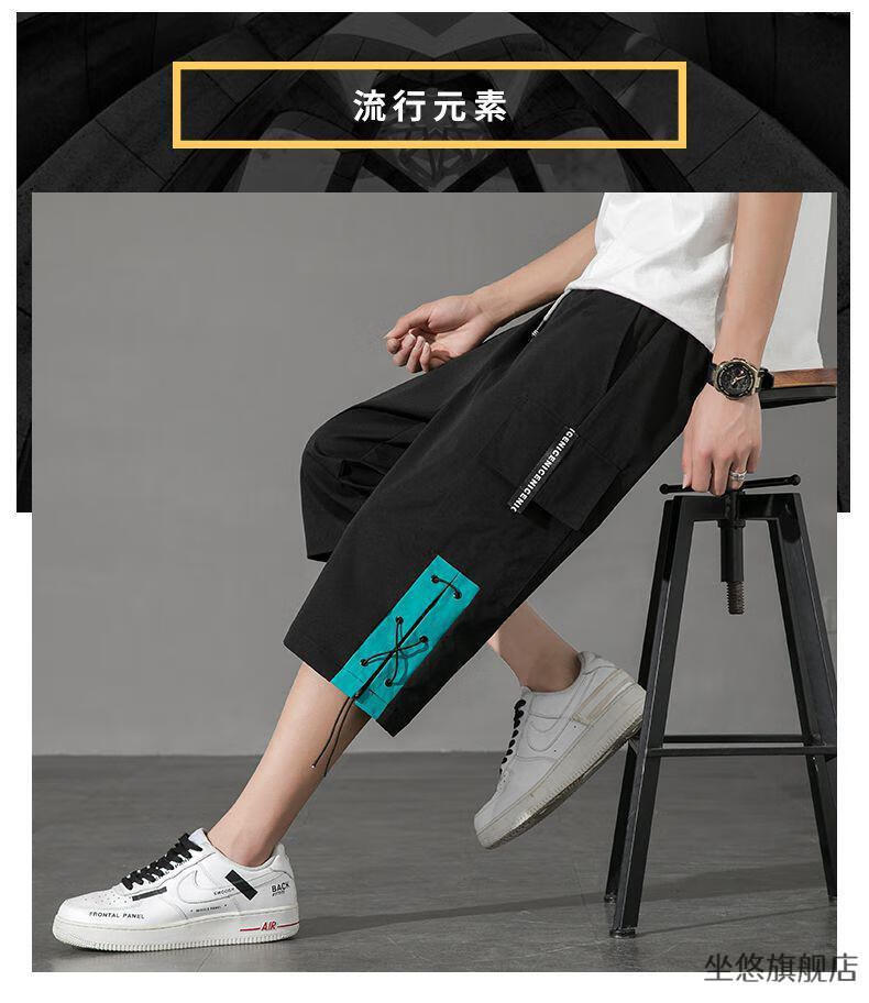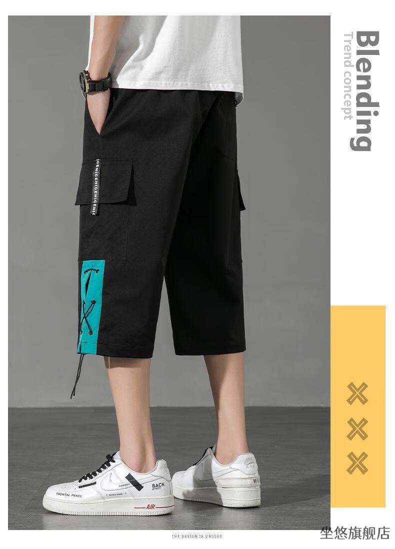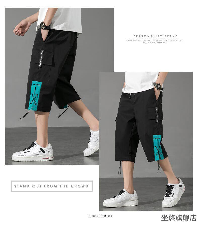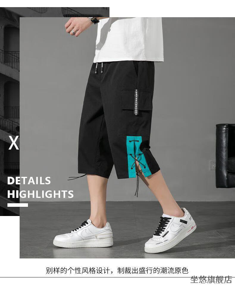 坐悠短裤男夏季十几岁初中高中生大学生穿薄款七分中男孩运动青少年胖 JM-9230黑色【品质版】 M