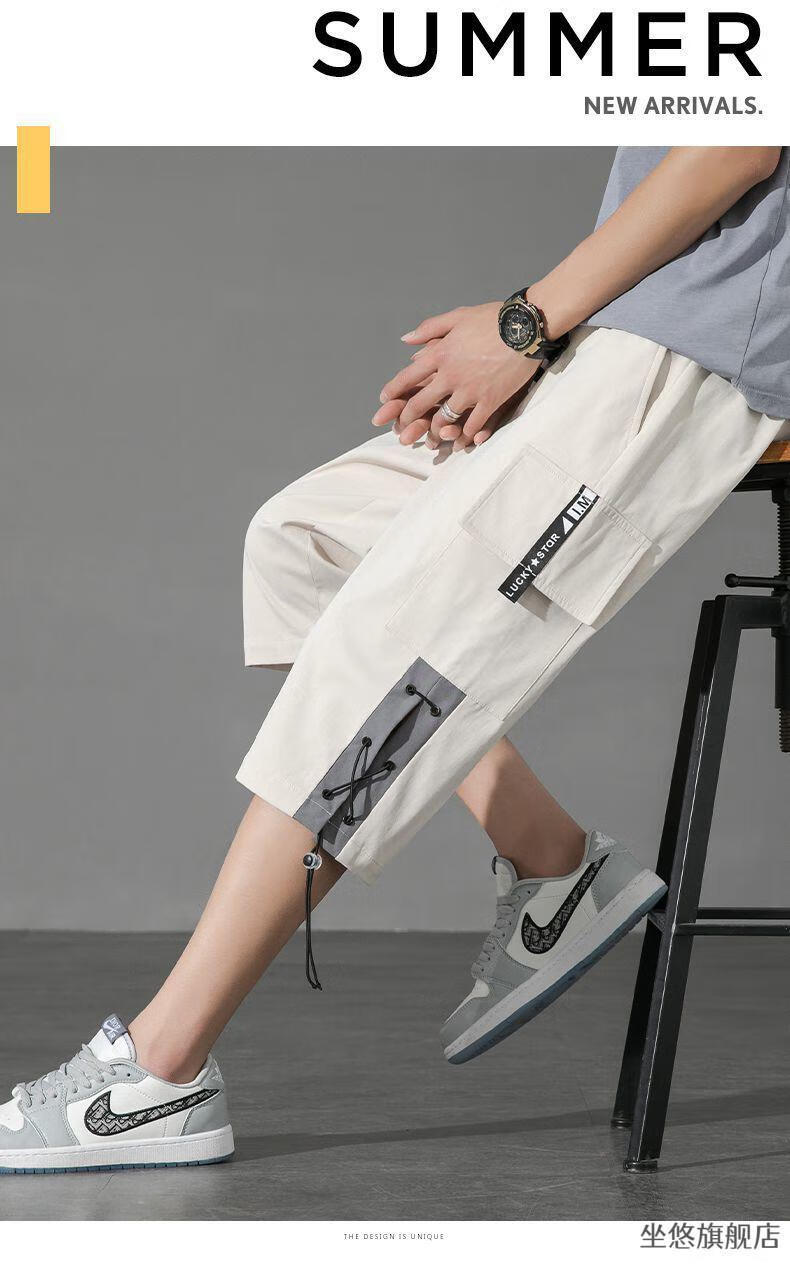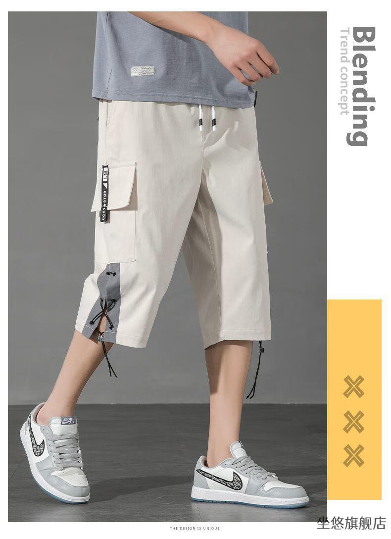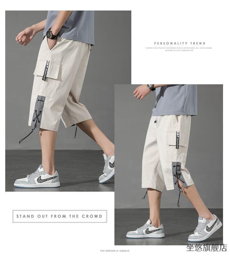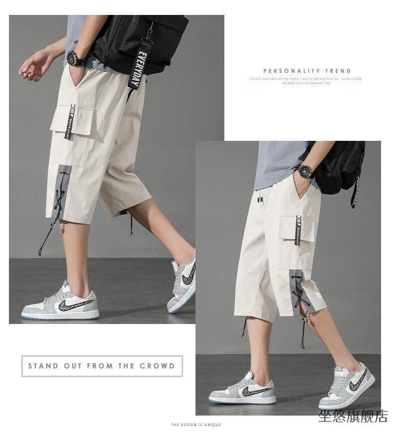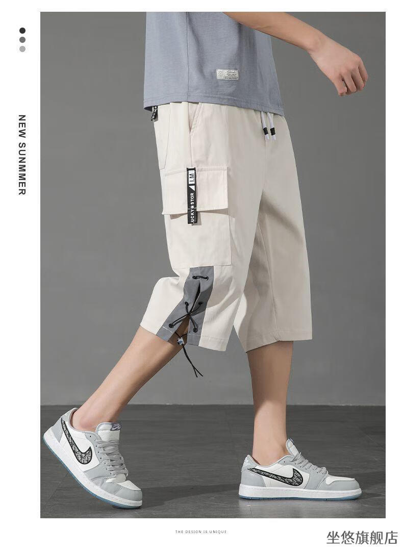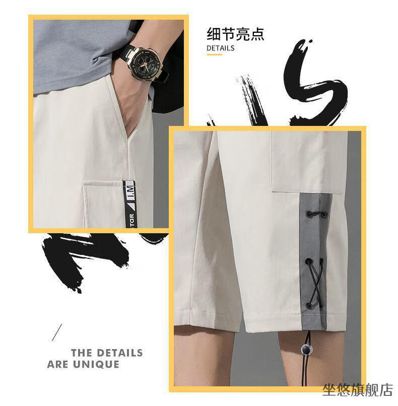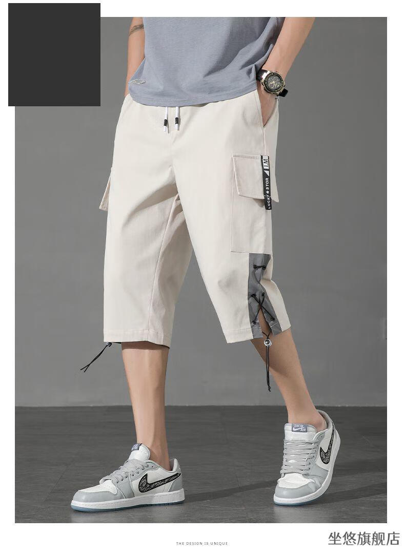 坐悠短裤男夏季十几岁初中高中生大学生穿薄款七分中男孩运动青少年胖 JM-9230黑色【品质版】 M