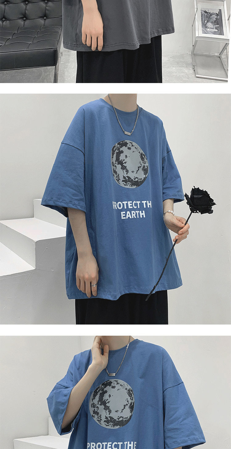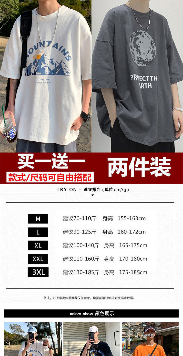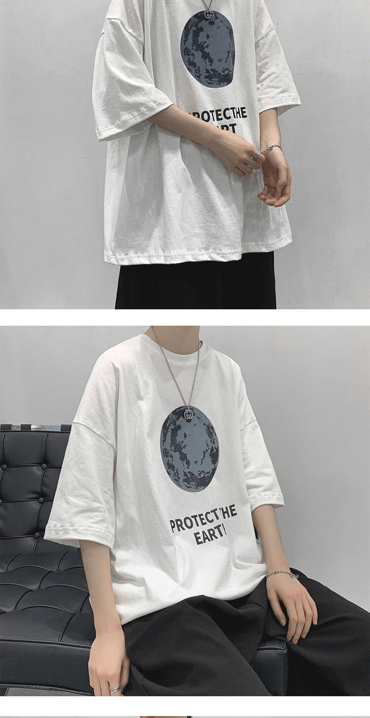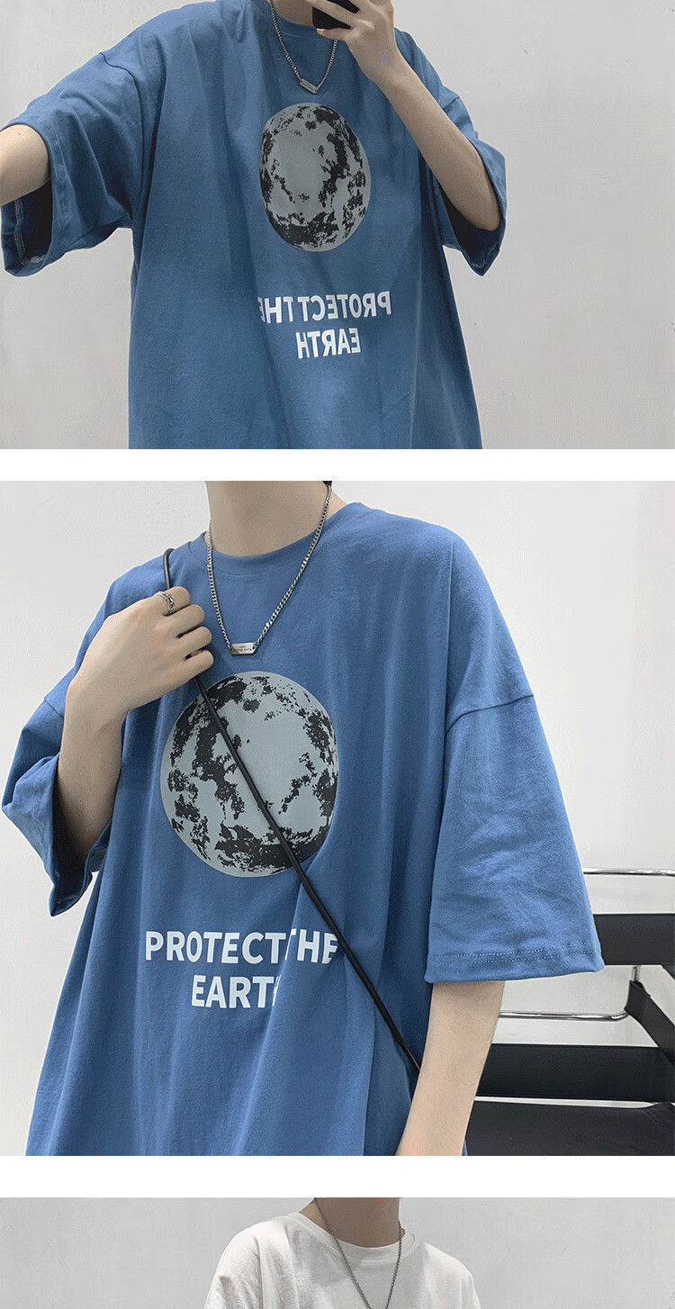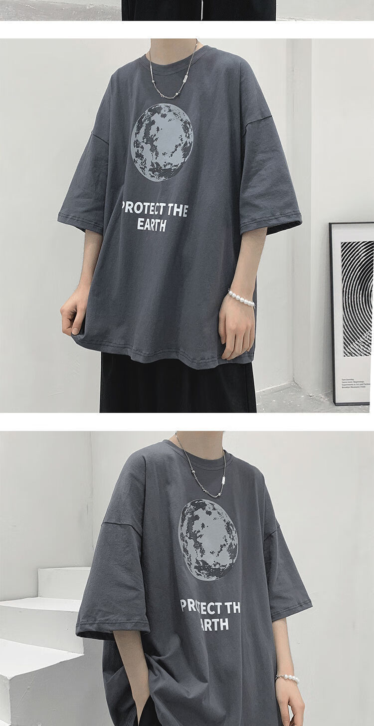 BAIQUETING Camiseta de manga corta de dos piezas para hombre, ropa holgada estampada de verano, manga de cinco cuartos, estilo Hong Kong, camiseta juvenil con cuello redondo, gris oscuro tierra + azul sonrisa XL recomendado 115-130 Jin Jin equivale a 0,5 kg