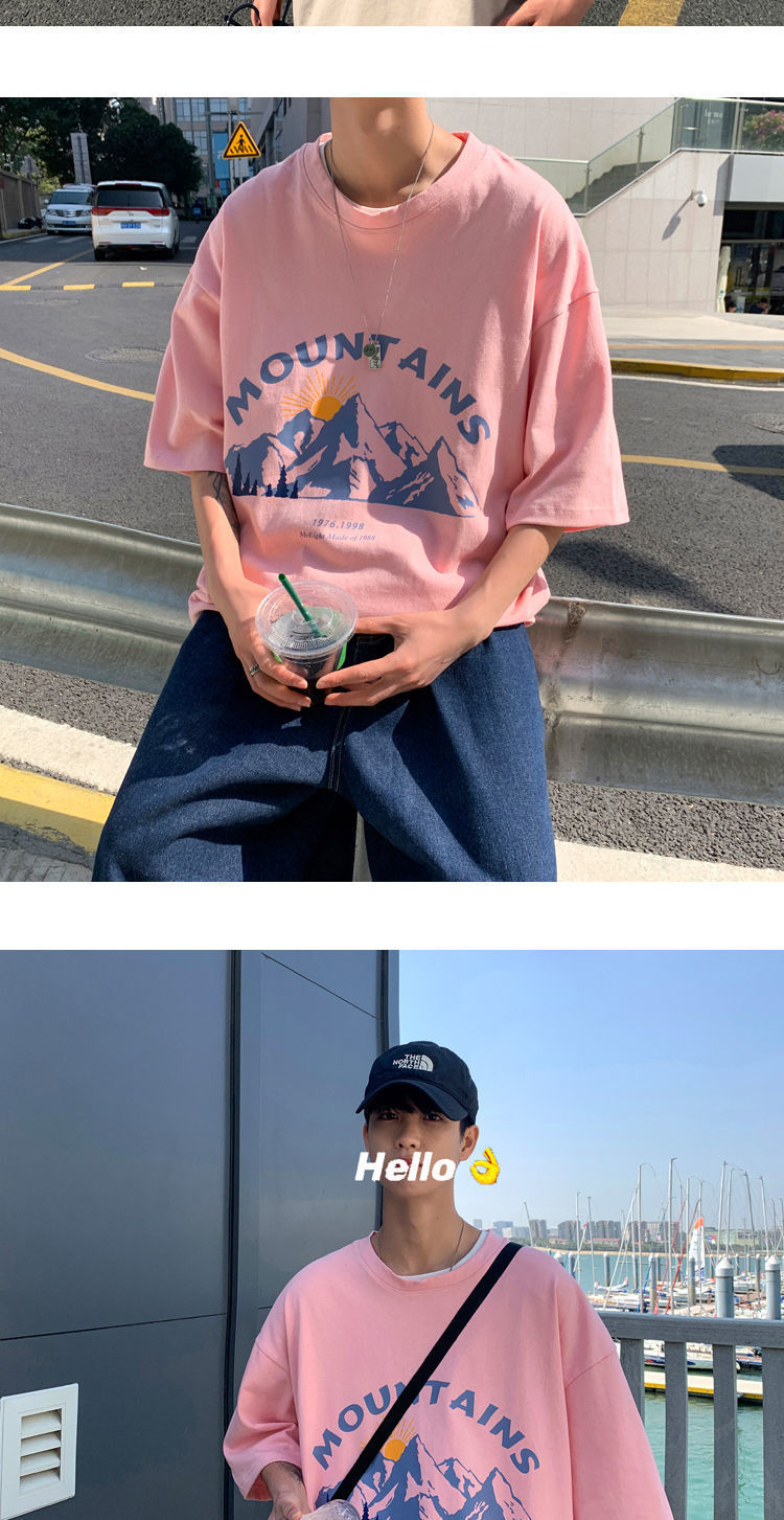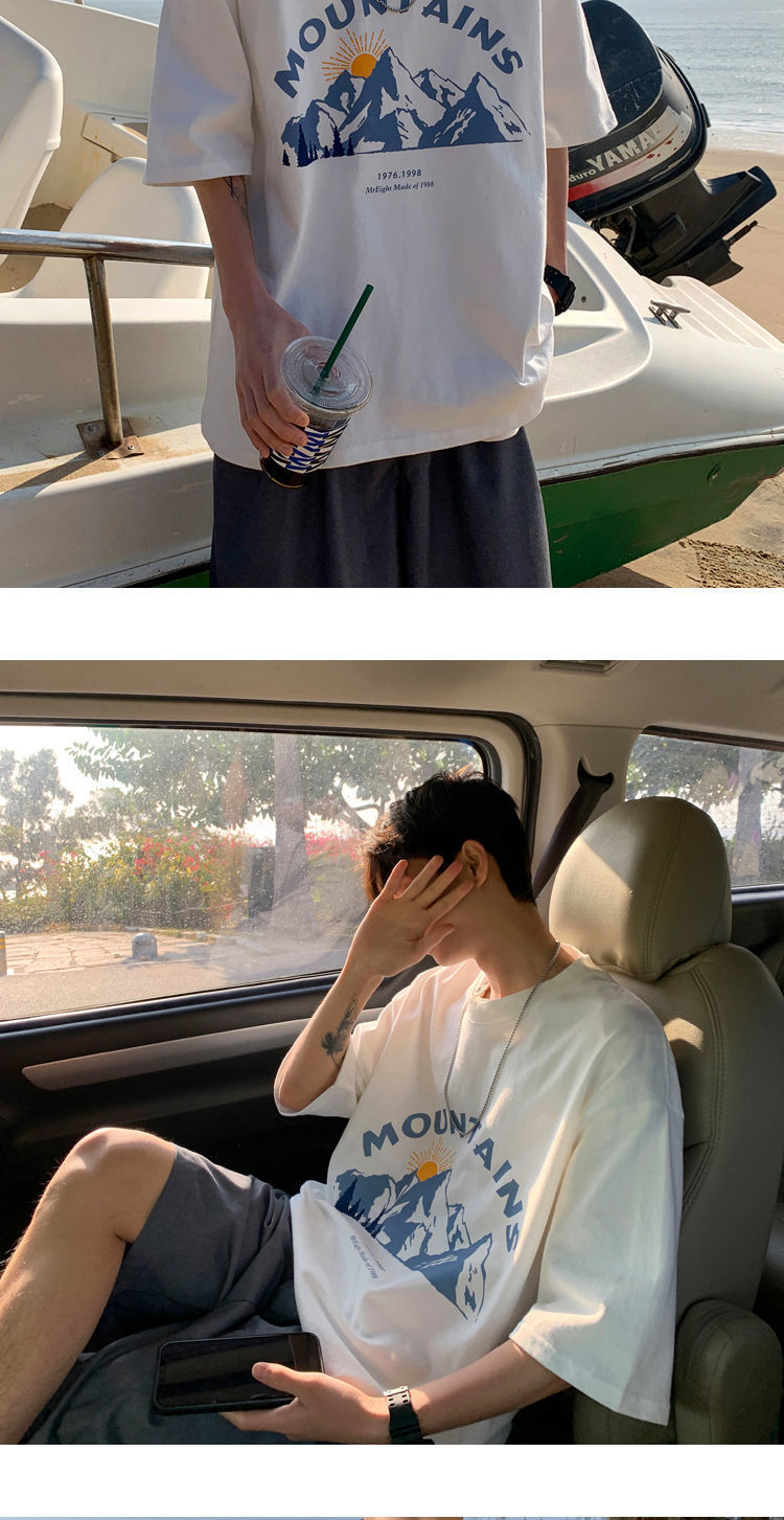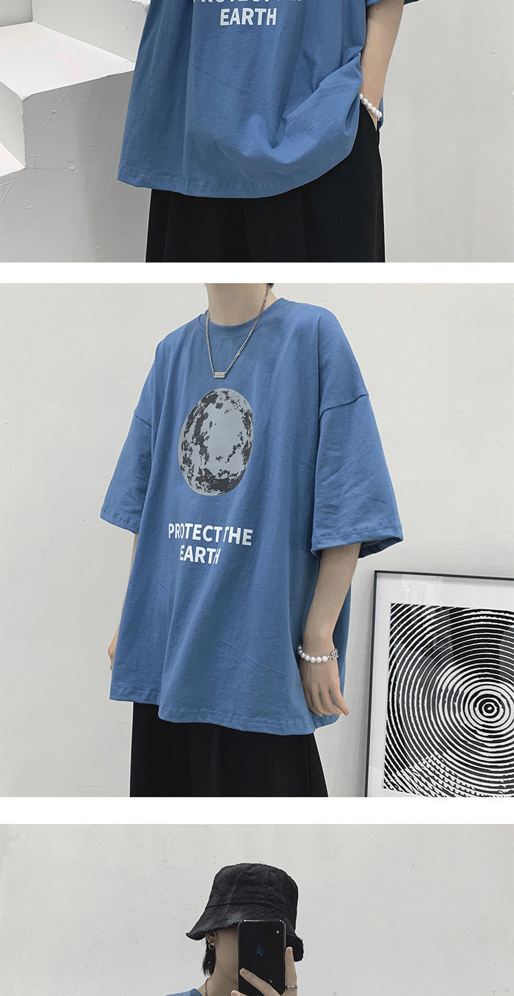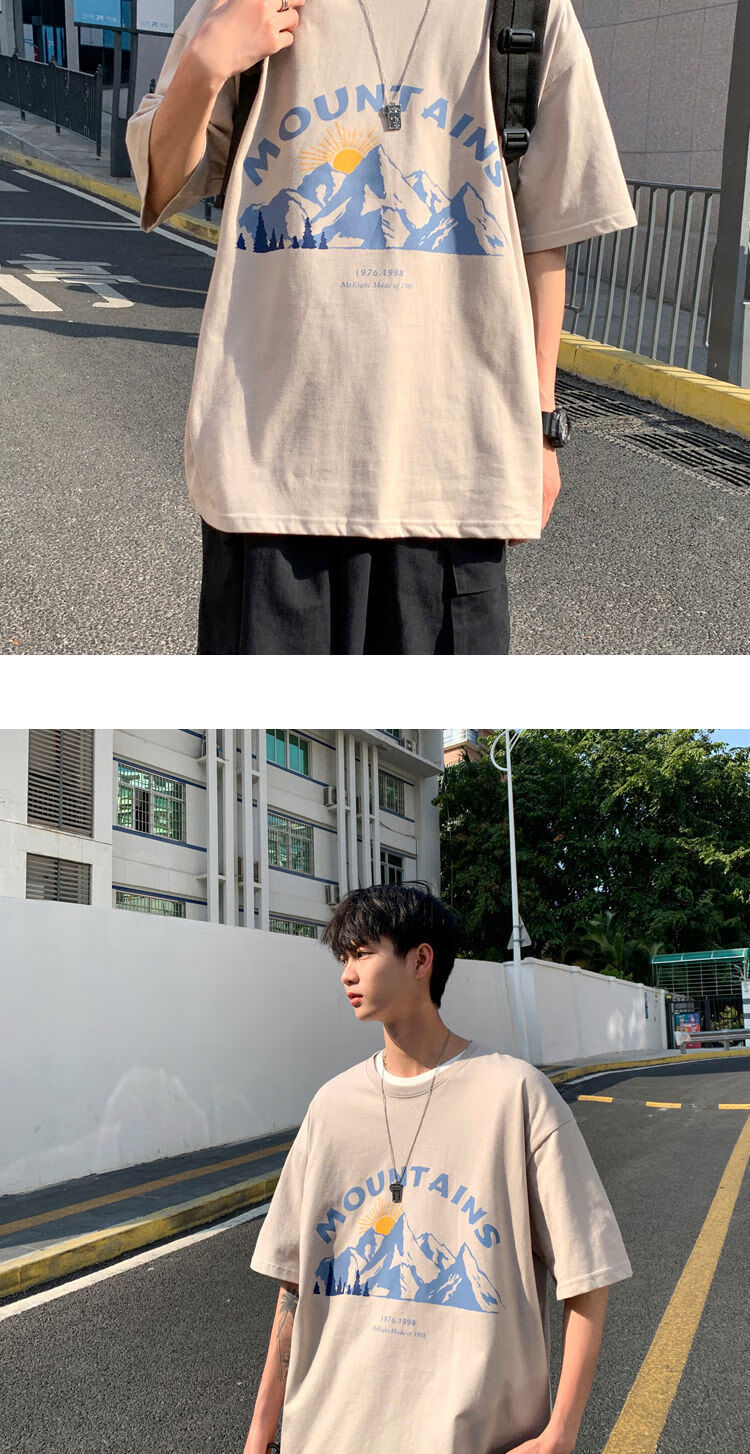 BAIQUETING Camiseta de manga corta de dos piezas para hombre, ropa holgada estampada de verano, manga de cinco cuartos, estilo Hong Kong, camiseta juvenil con cuello redondo, gris oscuro tierra + azul sonrisa XL recomendado 115-130 Jin Jin equivale a 0,5 kg