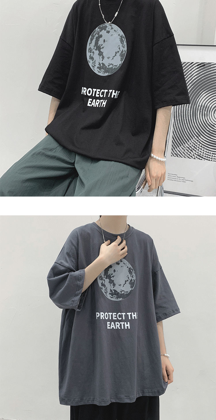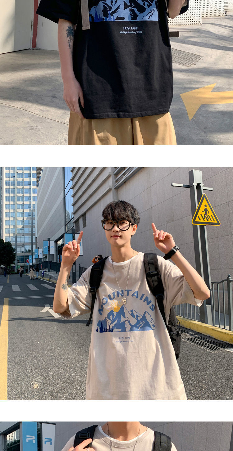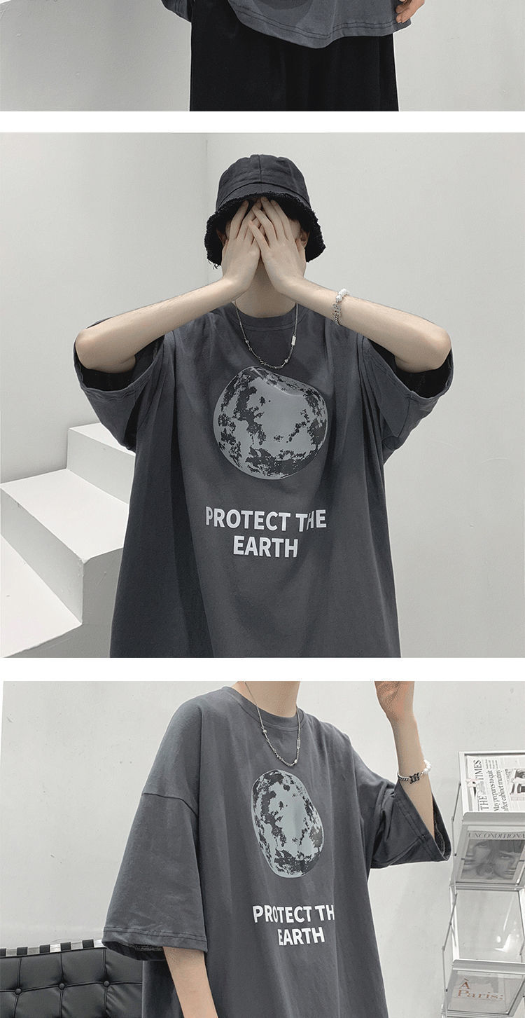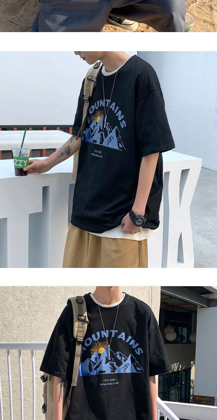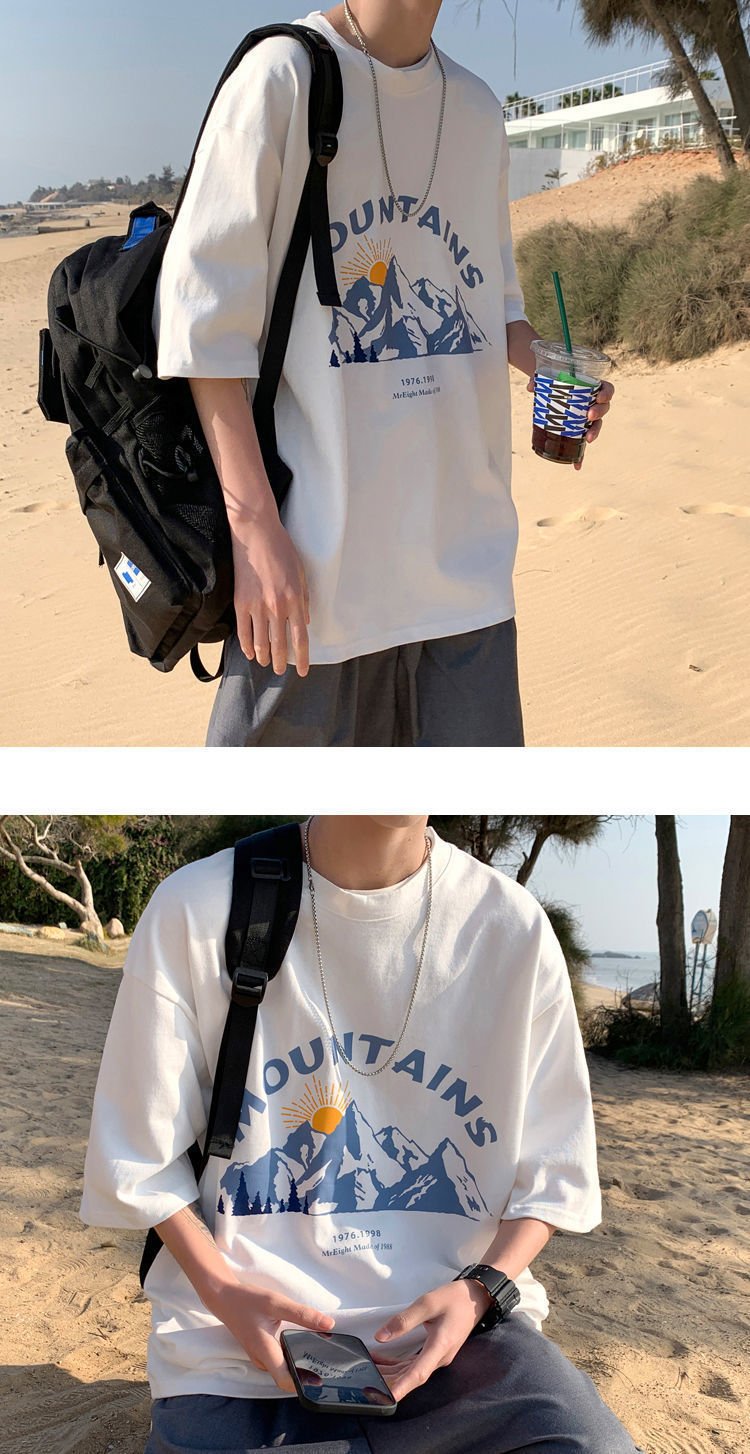 BAIQUETING Camiseta de manga corta de dos piezas para hombre, ropa holgada estampada de verano, manga de cinco cuartos, estilo Hong Kong, camiseta juvenil con cuello redondo, gris oscuro tierra + azul sonrisa XL recomendado 115-130 Jin Jin equivale a 0,5 kg