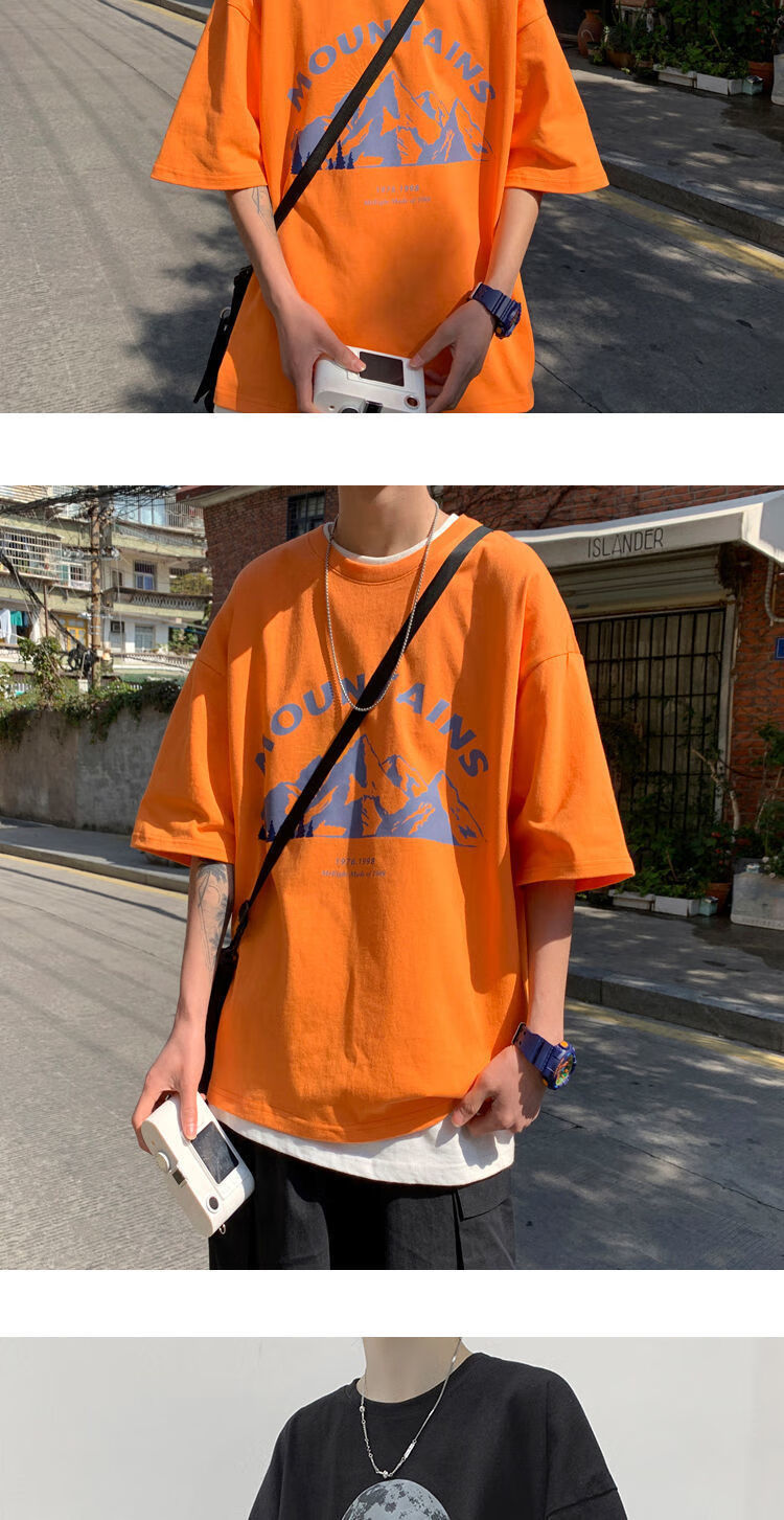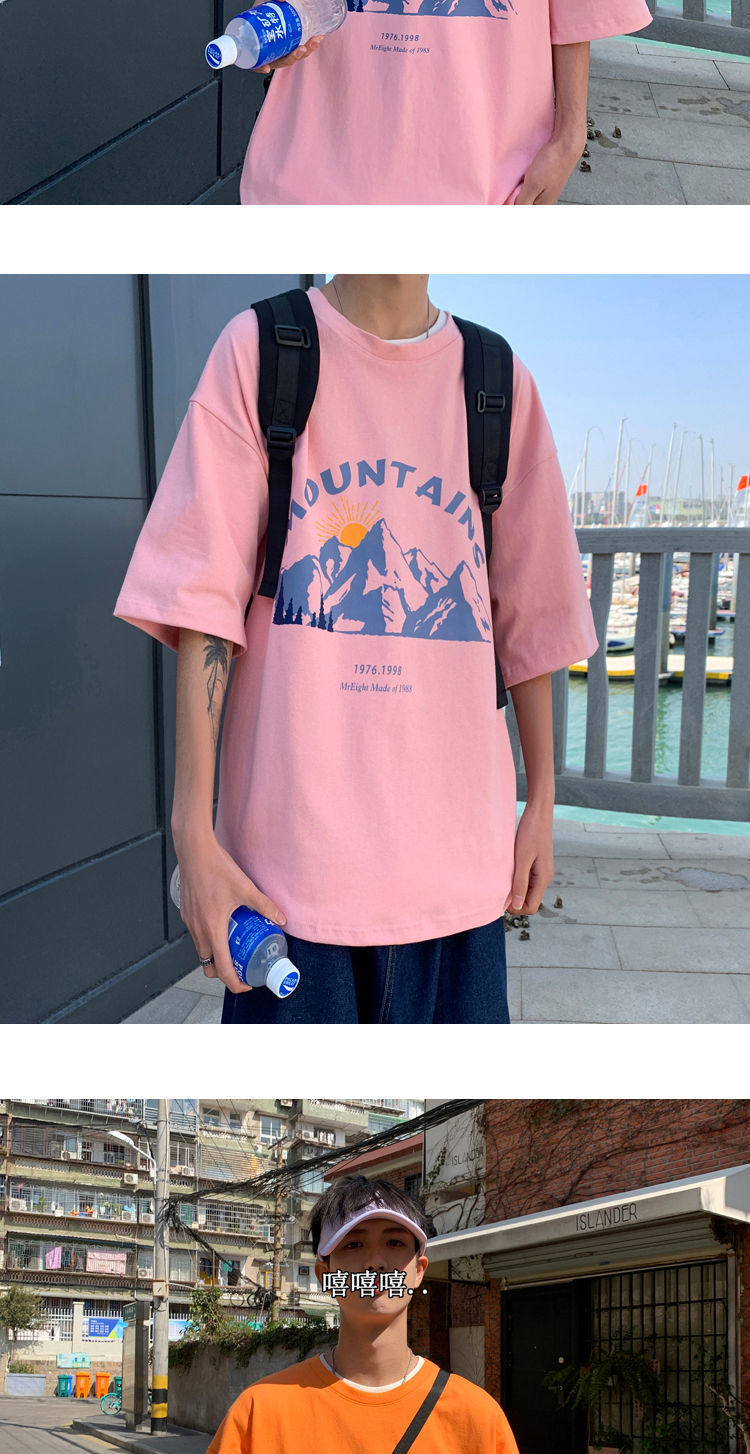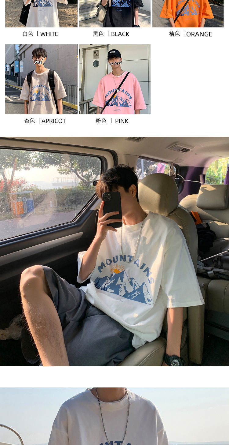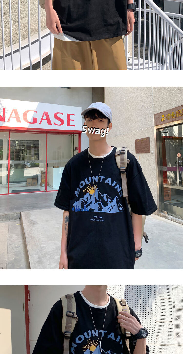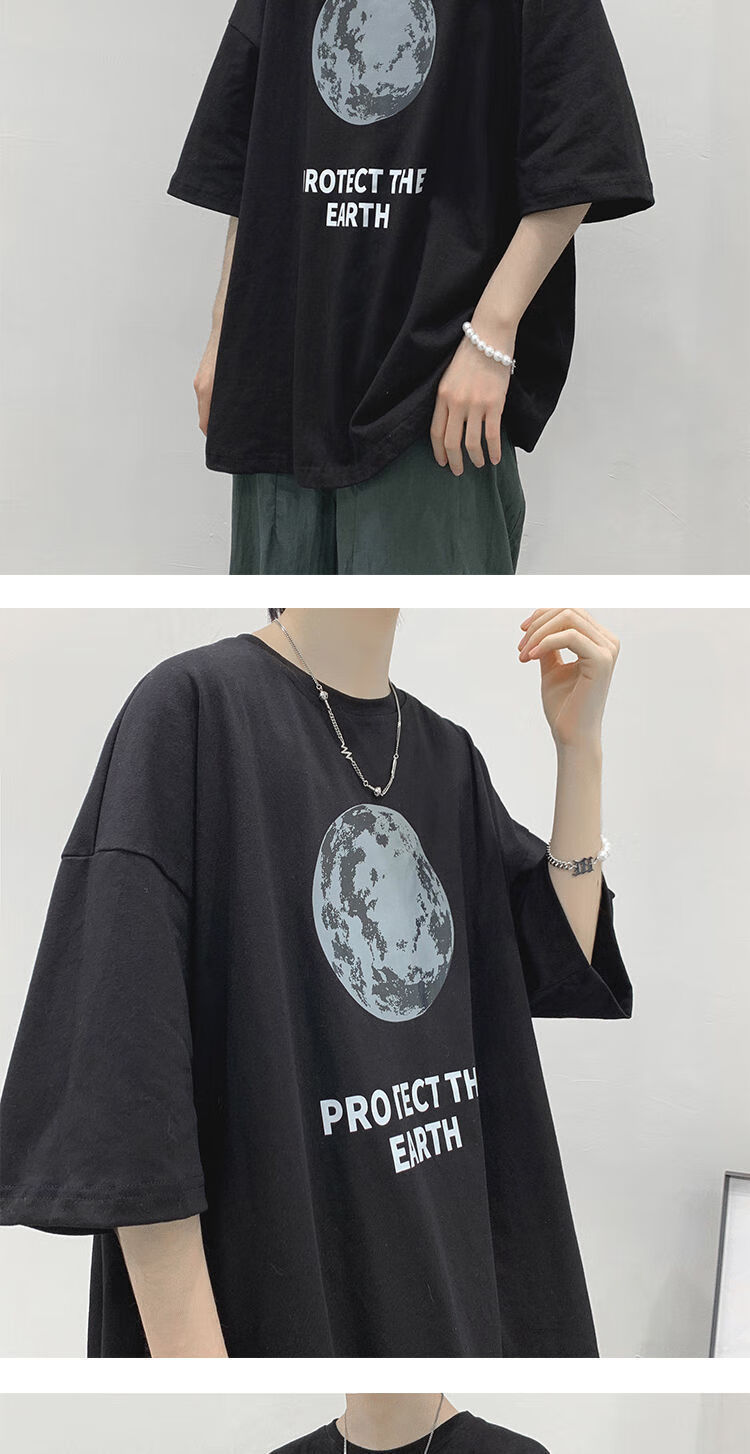 BAIQUETING Camiseta de manga corta de dos piezas para hombre, ropa holgada estampada de verano, manga de cinco cuartos, estilo Hong Kong, camiseta juvenil con cuello redondo, gris oscuro tierra + azul sonrisa XL recomendado 115-130 Jin Jin equivale a 0,5 kg