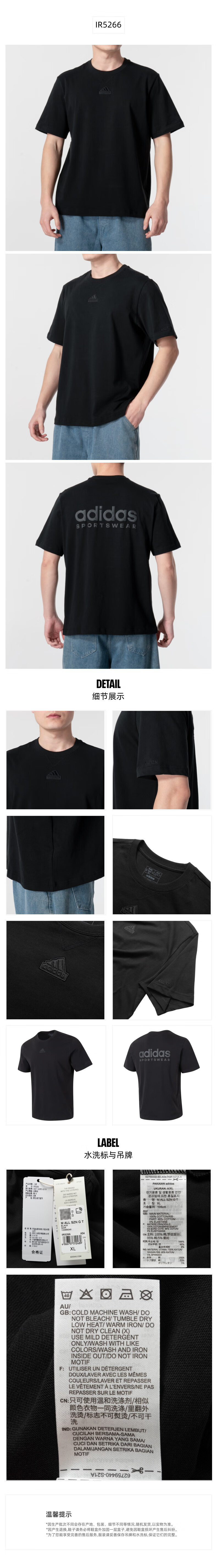 Adidas Camiseta de manga corta para hombre 2025 Ropa deportiva de verano Ropa casual holgada, cómoda y transpirable Top informal con cuello redondo IR5266 Negro S Recomendado 120-135 Jin Jin equivale a 0,5 kg